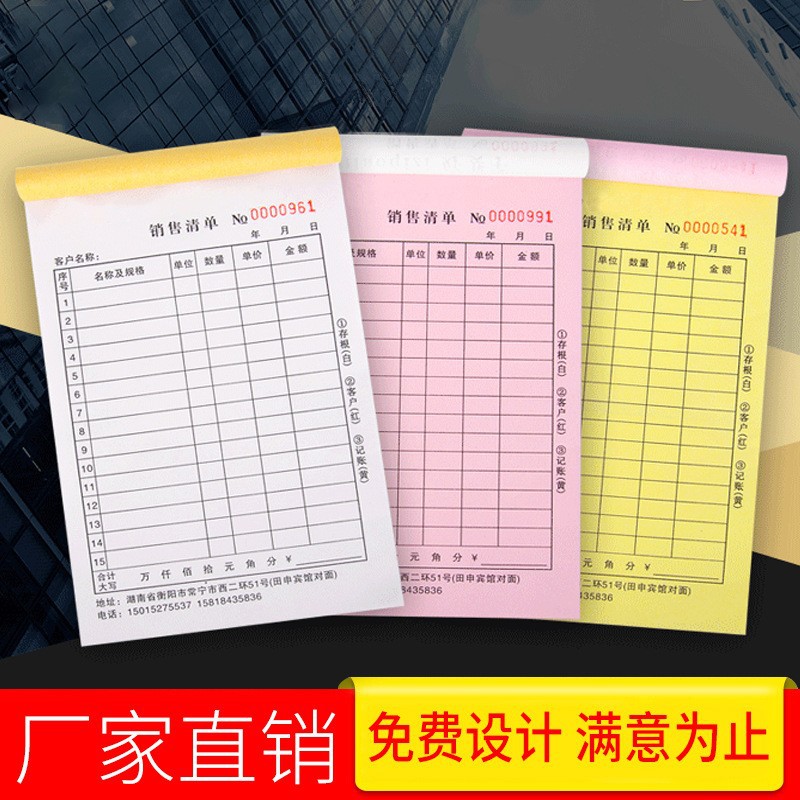 Список заказов на двух- или трехчастные накладные, изготовленные на заказ самокопирующиеся утолщенные накладные, печать на заказ в Тяньцзине