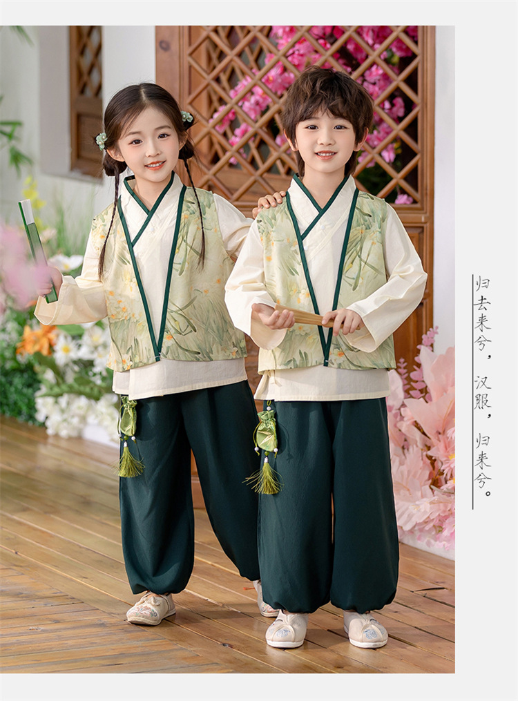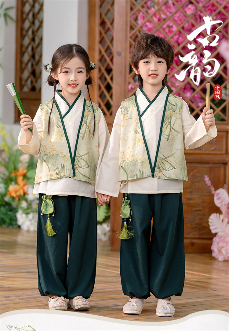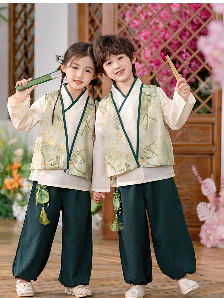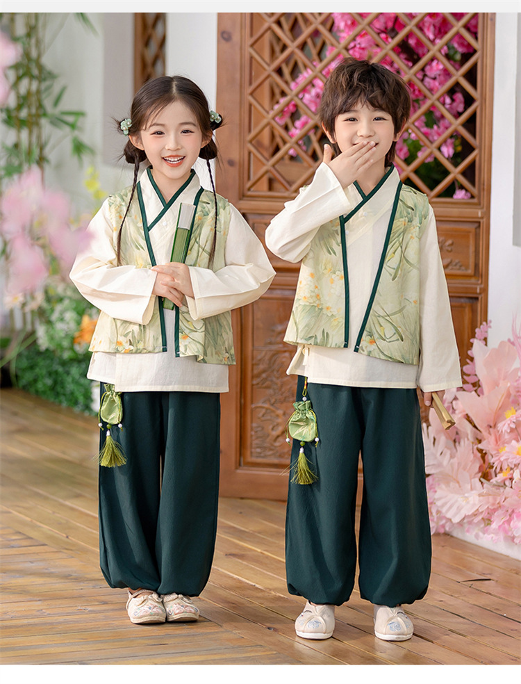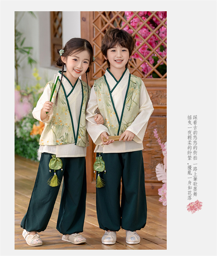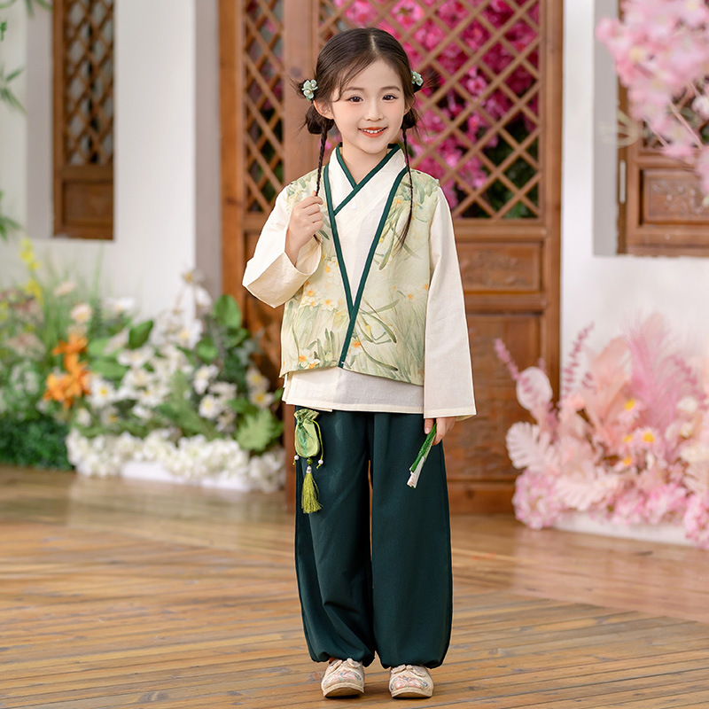Детский весенне-осенний весенний горный национальный стиль исполнения костюма костюма костюма Hanfu костюма детского сада танцевальная одежда