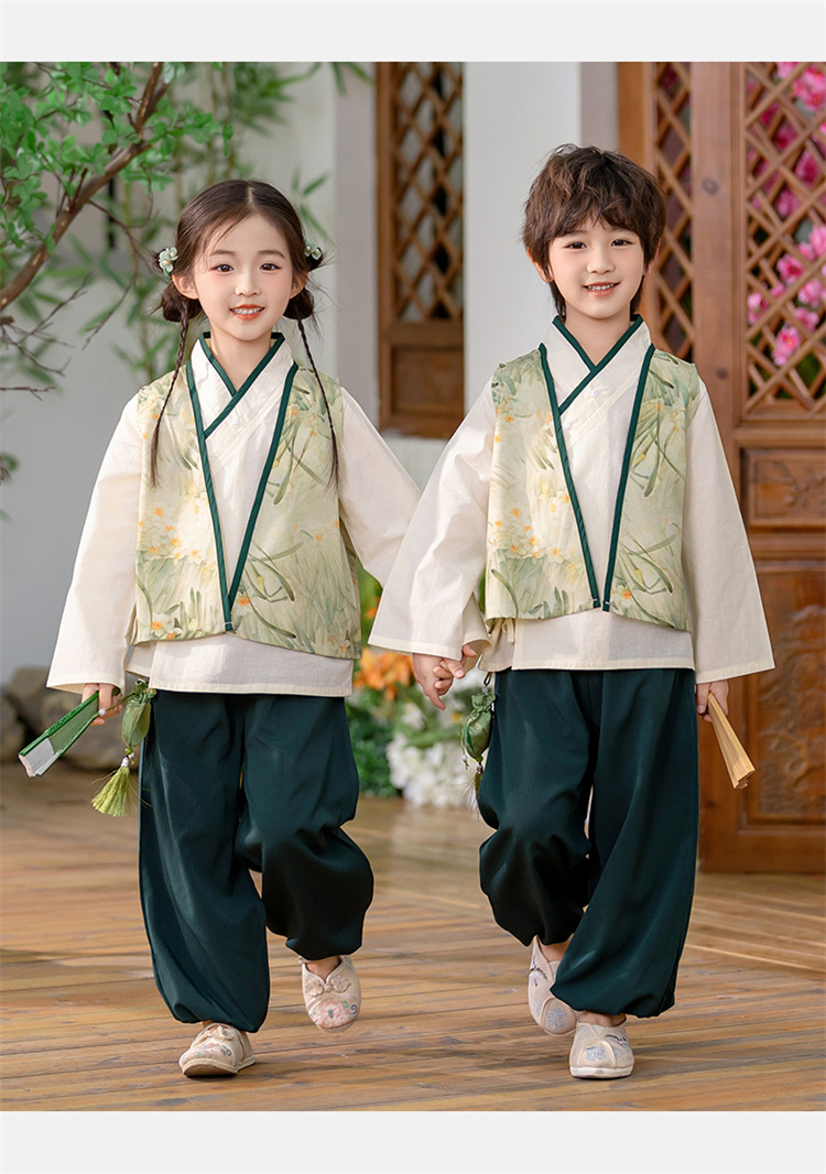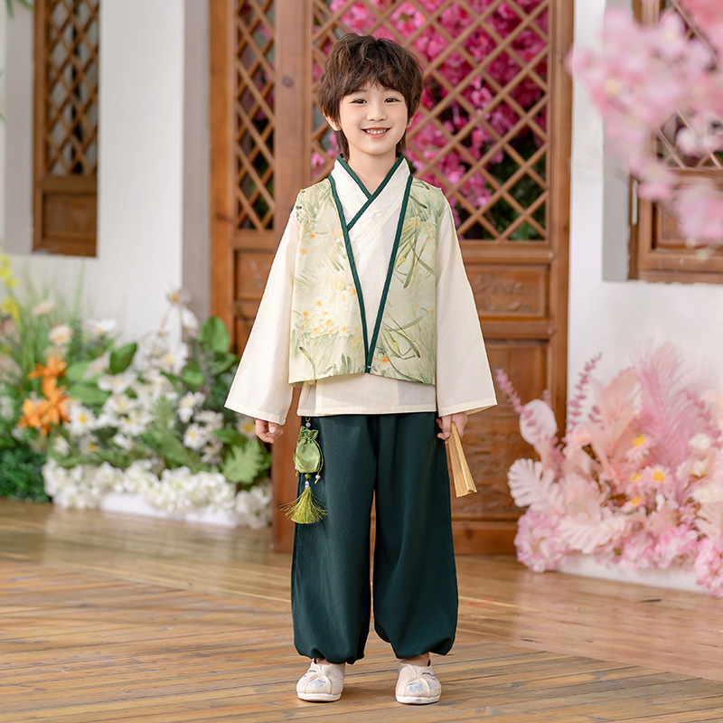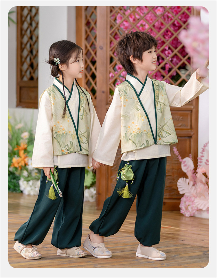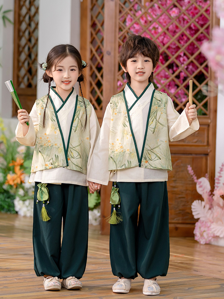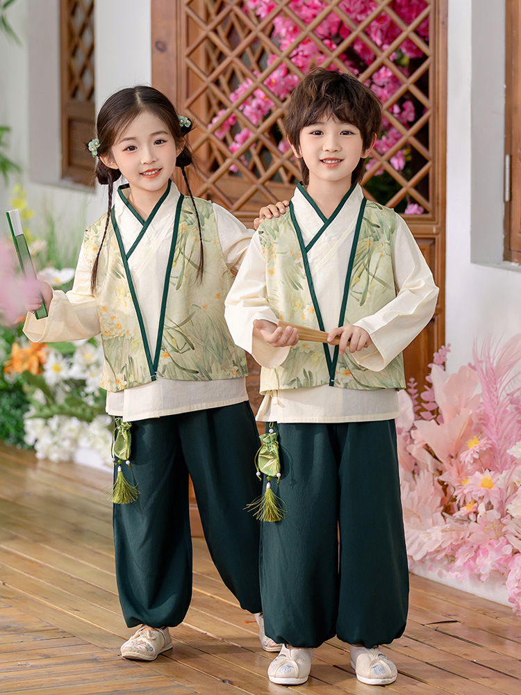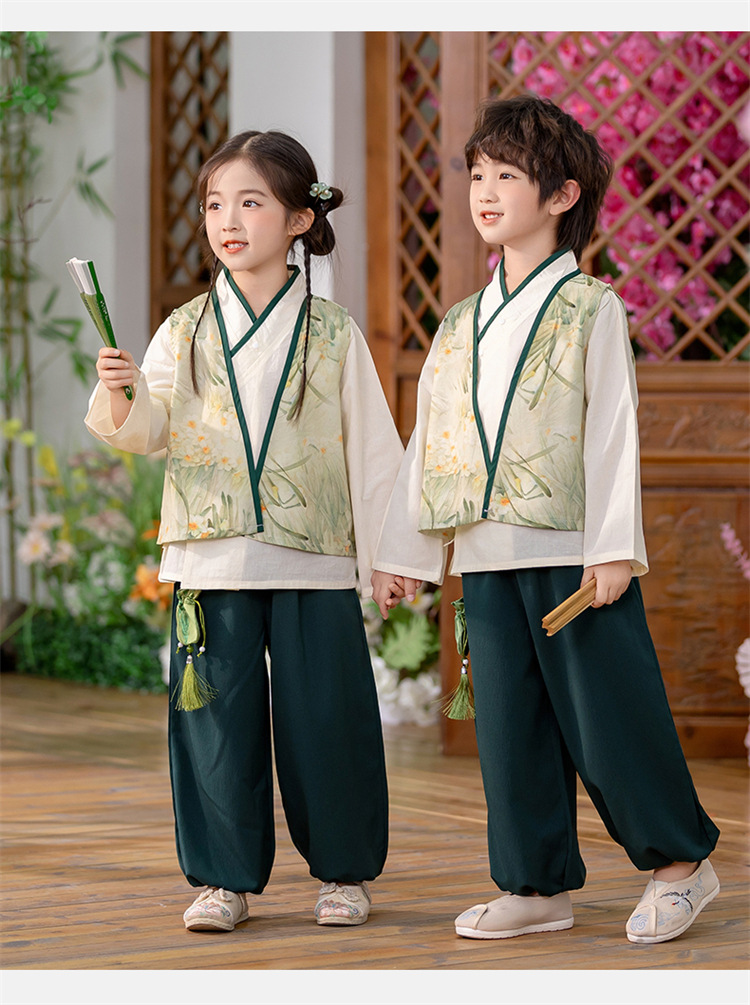 Детский весенне-осенний весенний горный национальный стиль исполнения костюма костюма костюма Hanfu костюма детского сада танцевальная одежда