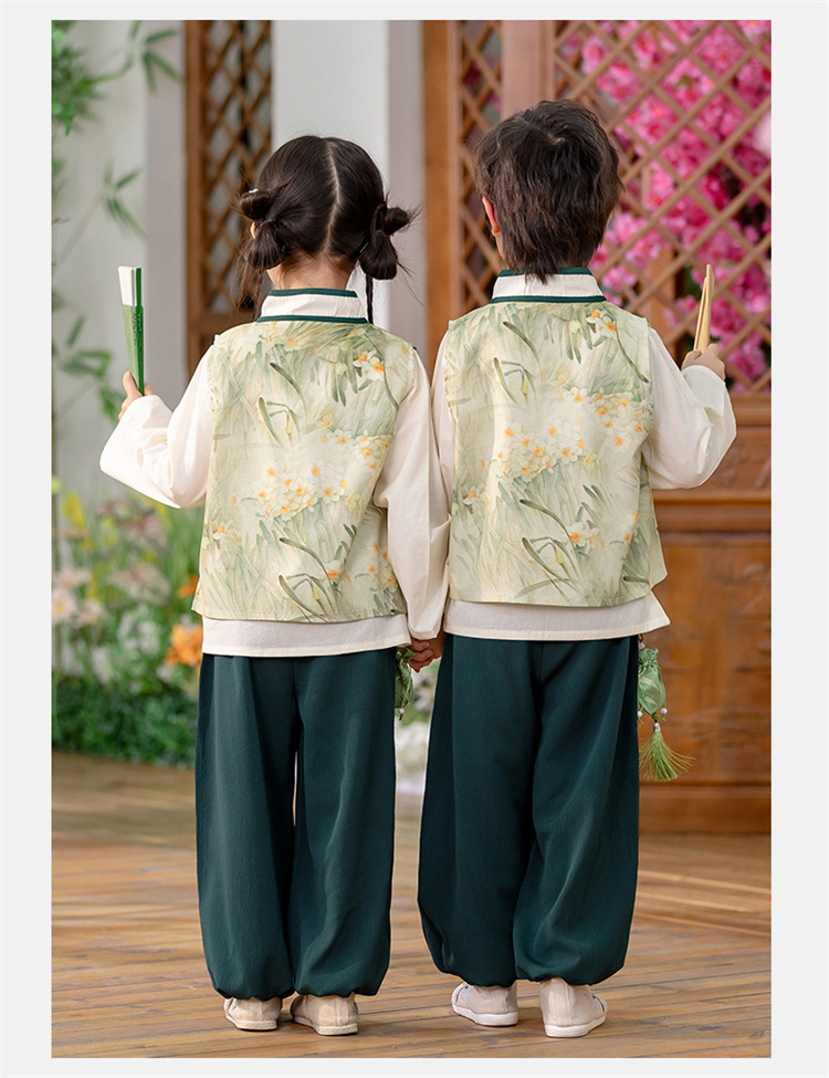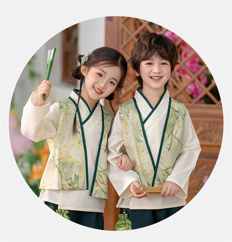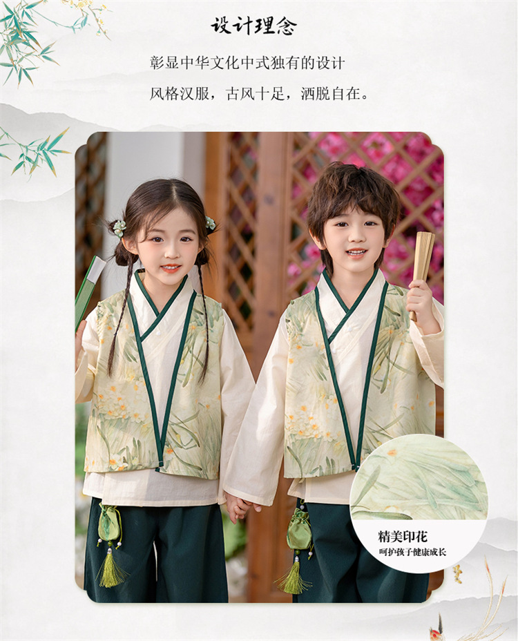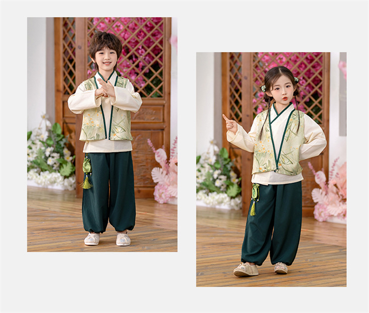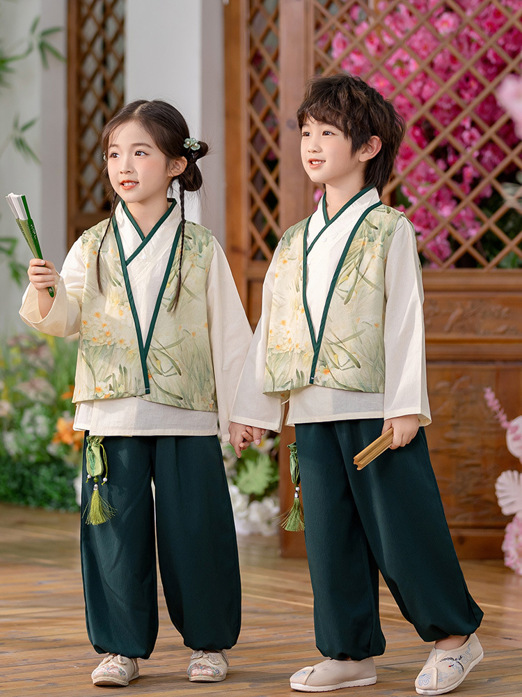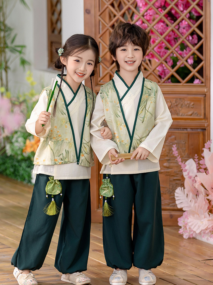 Детский весенне-осенний весенний горный национальный стиль исполнения костюма костюма костюма Hanfu костюма детского сада танцевальная одежда
