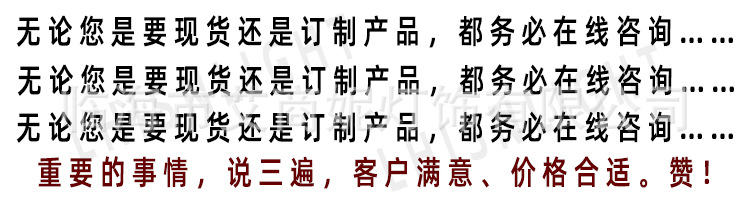 再次欢迎来到我厂的网站,网站分类现货样专区:在线交易产品,可直接拍。其余成品灯产品均为产品订做系列,根据客户提供的参数要求来生产,不同的灯数不同的长度不同的配件不同的电压不同的国家要求,只要产品有一点不同价格均不一样。真正的做到一分钱一分货,更多还是在线咨询,咨询不收费,只要是我们涉及的产品均能帮您专业解答,此次不合作,下次有机会,生意长期做,售后长期保障。