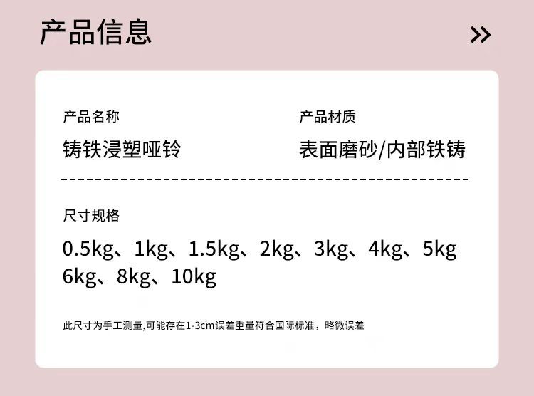 Порошок Сакура 0,5 кг в упаковке [рекомендуется детям и пожилым людям]; Аква-синий, 0,5 кг, одиночный [рекомендуется детям и пожилым людям]; Порошок Сакуры 1 кг одиночный [женские стройные руки]; Ярко-желтый, 1 кг, единичный; Черный, 1 кг, одинарный [женские тонкие руки]; Аква-синий, 1 кг, одинарный [женские тонкие руки]; Темно-синий, 1 кг, одинарный [женские тонкие руки]; Rock Grey, 1 кг, одинарный [женские тонкие руки]; Порошок Сакура 1,5 кг, одиночный [новички в фитнесе]; Rock Grey, 1,5 кг, одиночный [Фитнес для начинающих]; Аква-синий, 1,5 кг, одиночный [начинающие фитнес]; Ярко-желтый, 1,5 кг, одиночный [для начинающих фитнеса]; Порошок Сакуры 2 кг одиночный [силовые тренировки для начинающих]; Rock Grey 2 кг Single [Элементарная силовая тренировка]; Aqua Blue 2 кг Single [Элементарная силовая тренировка]; 2 кг нежно-желтый одиночный; Зеленый 2 кг одиночный [основная силовая тренировка]; Красный 3 кг одиночный; Порошок Сакуры 3 кг одиночный [тренировка средней силы]; Rock Grey 3 кг, одиночный [тренировка средней силы]; Аква-синий, 3 кг, одиночный [тренировка средней силы]; Темно-синий, 3 кг, одиночный [тренировка средней силы]; Порошок Сакура 4 кг, одиночный [формирование всего тела]; Rock Grey, 4 кг, одиночный [коррекция всего тела]; Порошок Сакуры, 5 кг, одиночный [продвинутая силовая тренировка]; Rock Grey 5 кг, одиночный [Расширенная силовая тренировка]; Черный, 5 кг, одиночный [продвинутая силовая тренировка]; Темно-фиолетовый 5 кг одиночный; Rock Grey 6 кг Single [Тренировка силы и силы]; Порошок сакуры, 6 кг, одиночный; Браун 6 кг одиночный [силовая тренировка]; Порошок сакуры, 8 кг, одиночный; Rock Grey 8 кг Single [Высокоинтенсивная силовая тренировка]; Rock Grey 10 кг Single [Высокоинтенсивная силовая тренировка]; Фиолетовый 10 кг одиночный (тренировка силы высокой интенсивности); 1/2/3 кг, три пары + пластиковая стойка для гантелей [набор для начинающих]; 2/3/4 кг, три пары + пластиковая стойка для гантелей [Введение в формирование фигуры]; Три пары по 3/4/5 кг + пластиковая стойка для гантелей [дополнительная рекомендация]