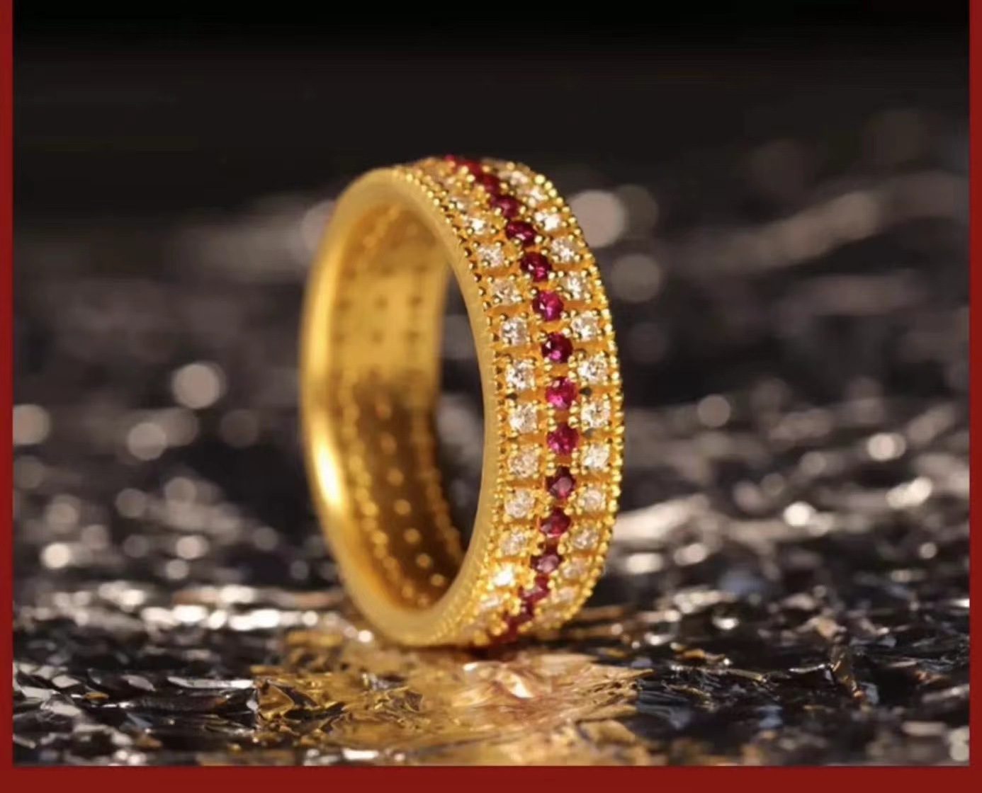 Кольцо со звездой из золота 18 карат au750, цветное золото, кольцо с полным бриллиантом голубиного кровавого рубина, нишевый дизайн, доступная роскошь, высококачественный