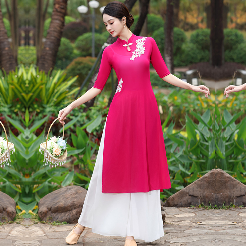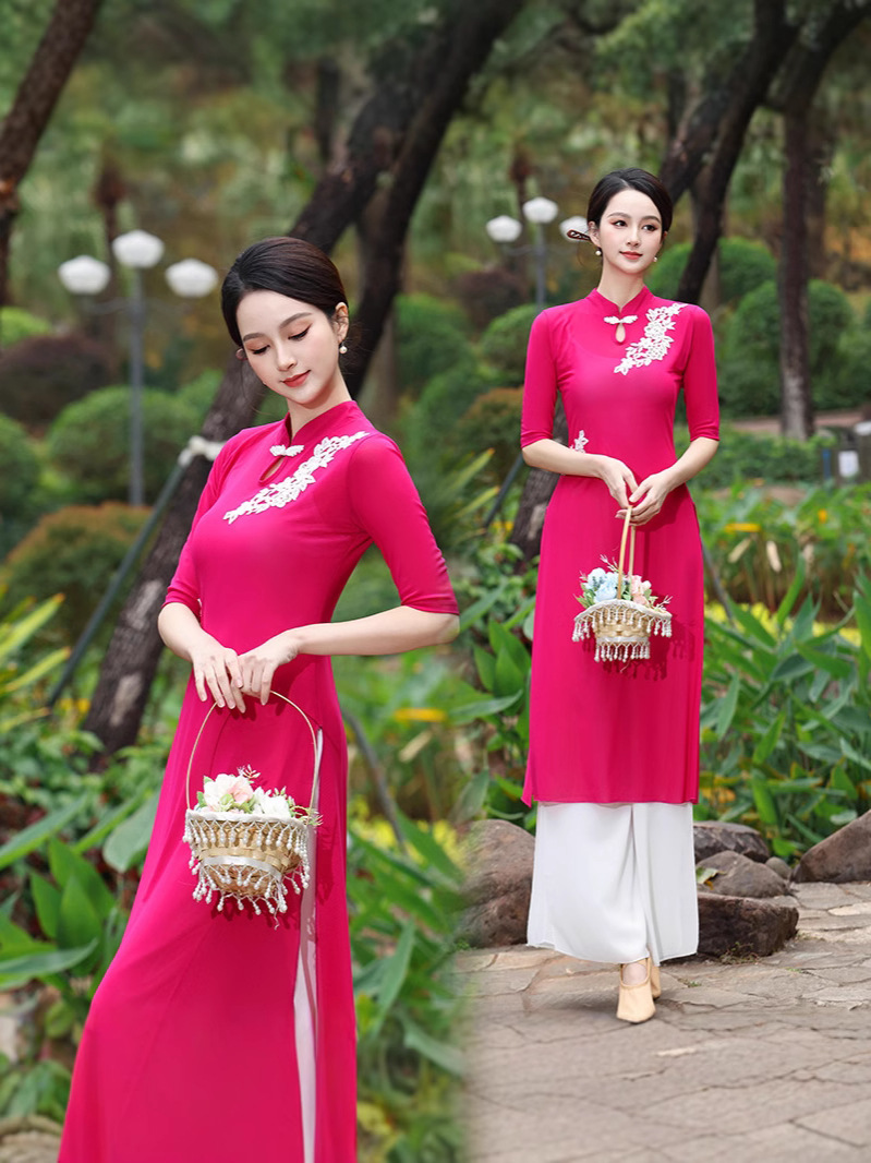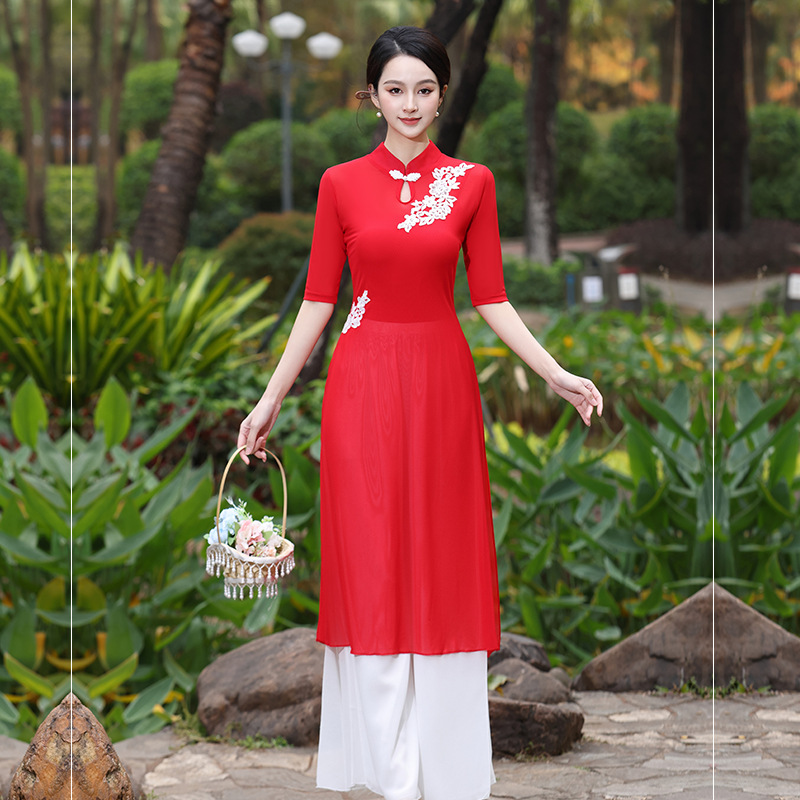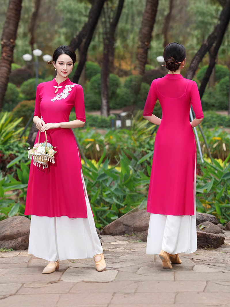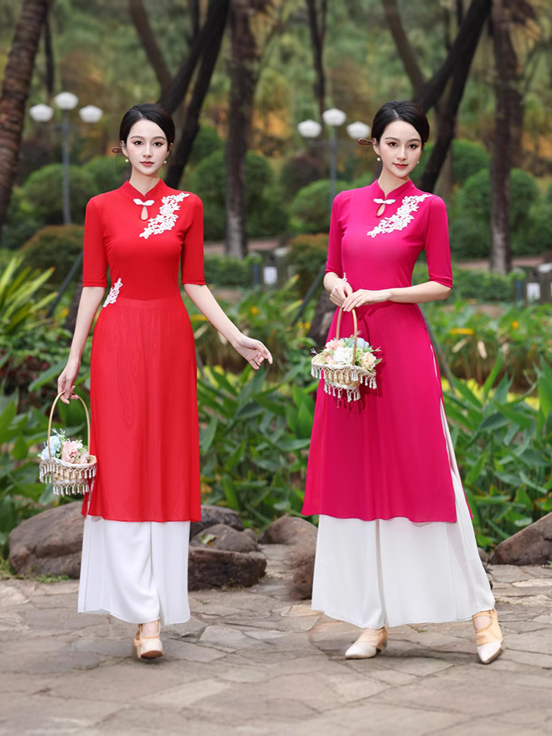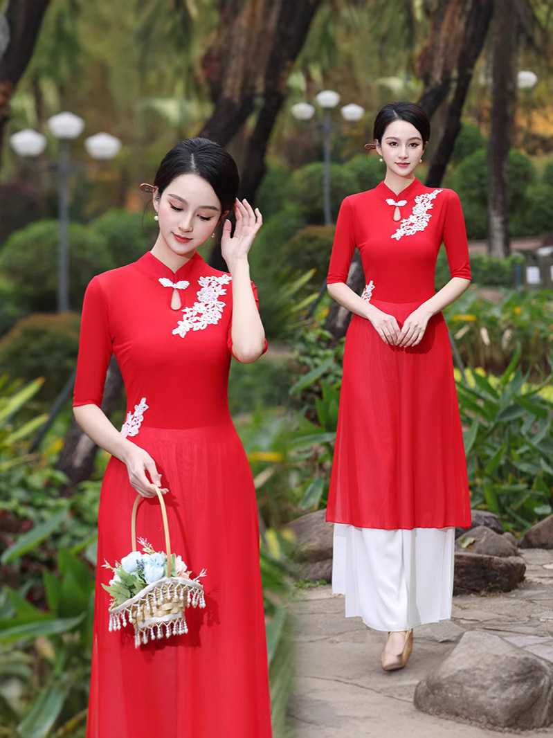 Костюм чонсам с вышивкой красного цвета; Костюм чонсам с вышивкой розово-красного цвета; Вышитая инфракрасная одежда + красные подтяжки.; Вышитое розово-красное пальто + белые подтяжки; Вышитая инфракрасная одежда; Вышитое розово-красное пальто; Двухслойные белые брюки.; красный слинг; белый слинг