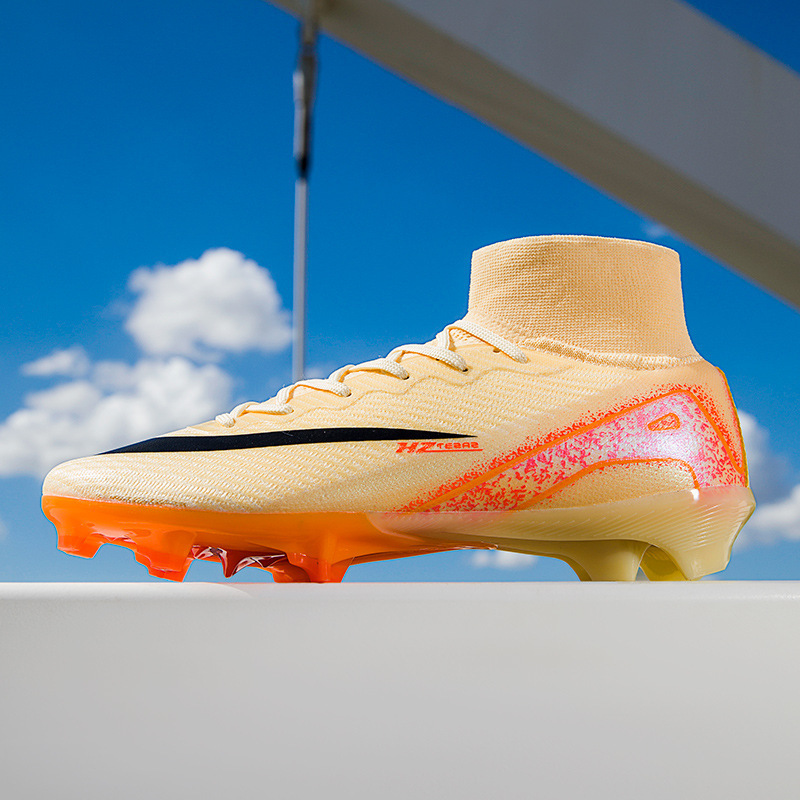 Трансграничные оптовые летающие бесшовные высокие футбольные ботинки для студентов мужского и женского пола AG длинные гвозди TF сломанные гвозди искусственные тренировки на траве