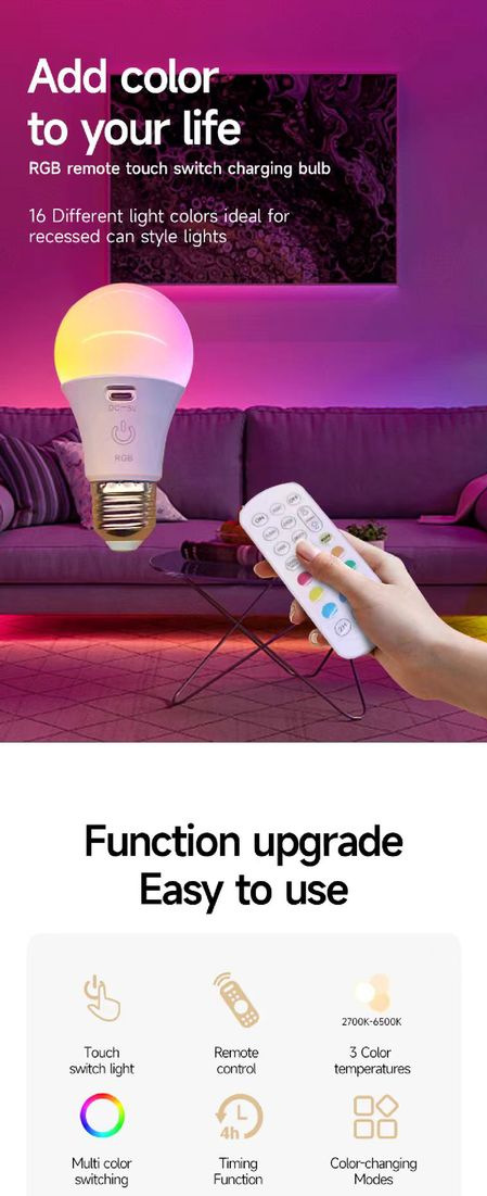 RGB пульт дистанционного управления сенсорный переключатель зарядная лампа