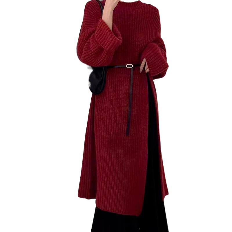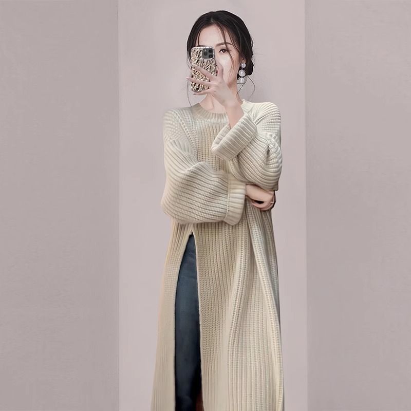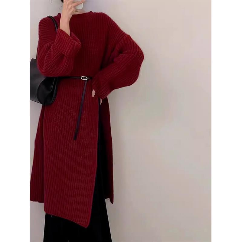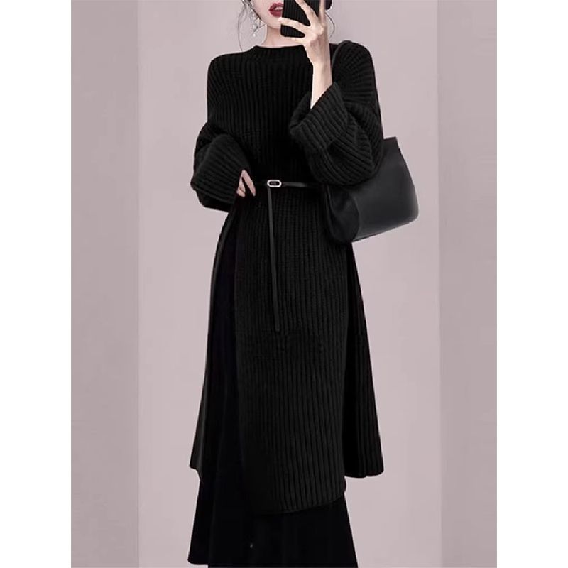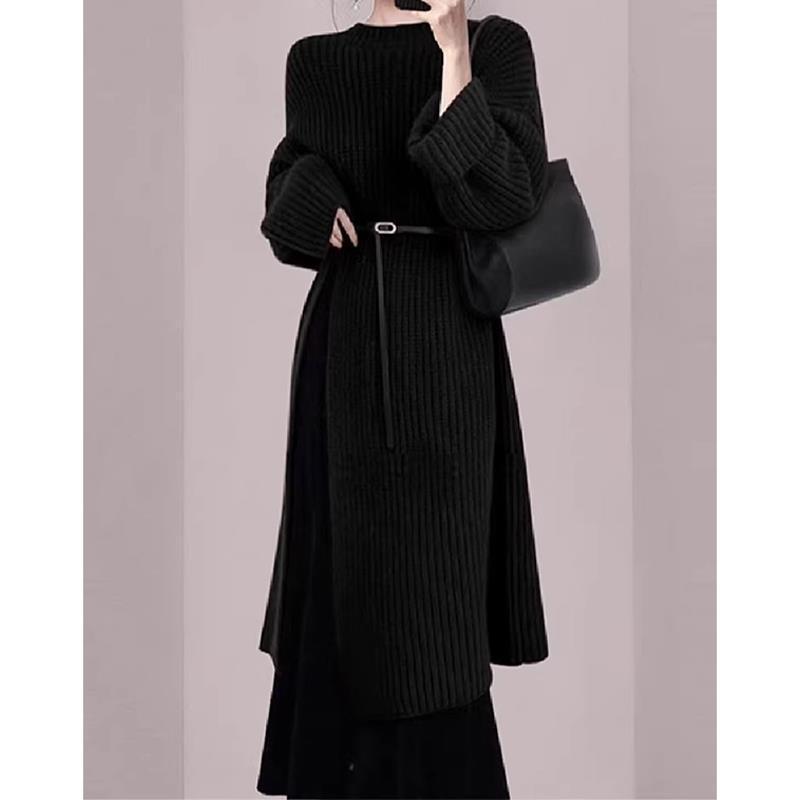 Корейский ленивый свободный свитер длинная юбка женская осень-зима 2025 новая толстое длинное платье с высокой раскрой