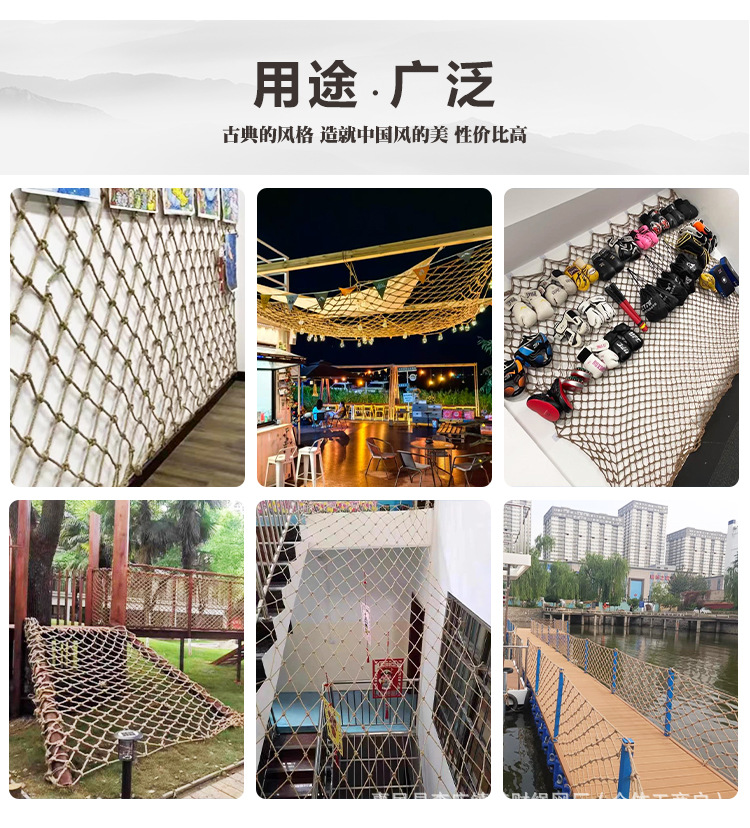 Защита забора живописной зоны, потолок в стиле ретро-бара, декоративная сетка из пеньковой веревки, сетка для наружного ограждения, защитная сетка для лестницы, защитная сетка для подвесного моста в живописной зоне, декоративная сетка для потолка
