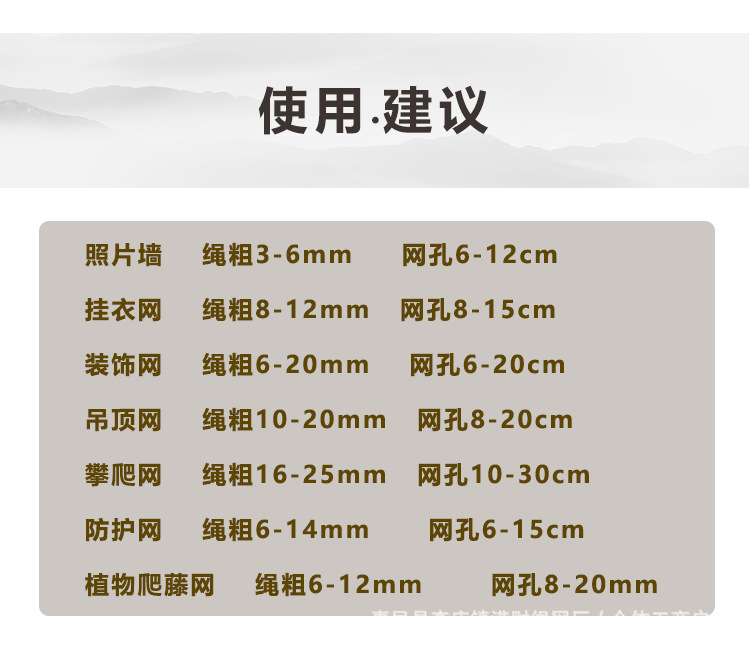 Толщина веревки 3 мм, диаметр 15cm отверстий; Толщина веревки 4 мм, диаметр 5cm отверстий; Толщина веревки 4 мм, диаметр 6cm отверстий; Толщина веревки 4 мм, диаметр 8cm отверстий; Толщина веревки 4 мм, диаметр 10cm отверстий; Толщина веревки 4 мм, диаметр 12cm отверстий; Толщина веревки 4 мм, диаметр 15cm отверстий; Толщина веревки 6 мм, диаметр 5cm отверстий; Толщина веревки 6 мм, диаметр 6cm отверстий; Толщина веревки 6 мм, диаметр 8cm отверстий; Толщина веревки 6 мм, диаметр 10cm отверстий; Толщина веревки 6 мм, диаметр 12cm отверстий; Толщина веревки 6 мм, диаметр 15cm отверстий; Толщина веревки 8 мм, диаметр 8cm отверстий; Толщина веревки 8 мм, диаметр 10cm отверстий; Толщина веревки 8 мм, диаметр 12cm отверстий; Толщина веревки 8 мм, диаметр 15cm отверстий; Толщина веревки 8 мм, диаметр 20cm отверстий; Толщина веревки 10 мм, диаметр 8cm отверстий; Толщина веревки 10 мм, диаметр 10cm отверстий; Толщина веревки 10 мм, диаметр 12cm отверстий; Толщина веревки 10 мм, диаметр 15cm отверстий; Толщина веревки 10 мм, диаметр 20cm отверстий; Толщина веревки 12 мм, диаметр 10cm отверстий; Толщина веревки 12 мм, диаметр 12cm отверстий; Толщина веревки 12 мм, диаметр 15cm отверстий; Толщина веревки 12 мм, диаметр 20cm отверстий; Толщина веревки 14 мм, диаметр 10cm отверстий; Толщина веревки 14 мм, диаметр 12cm отверстий; Толщина веревки 14 мм, диаметр 15cm отверстий; Толщина веревки 16 мм, диаметр 12cm отверстий; Толщина веревки 16 мм, диаметр 15cm отверстия; Толщина веревки 20 мм, диаметр 15cm отверстий; Грубая настройка сетки