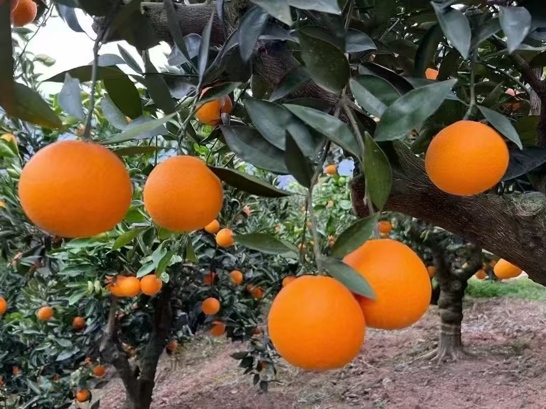 我们自家有2000棵橙子树,有夏橙,爱媛,九月红,长红,园红,血橙,伦晚这些橙子品种。