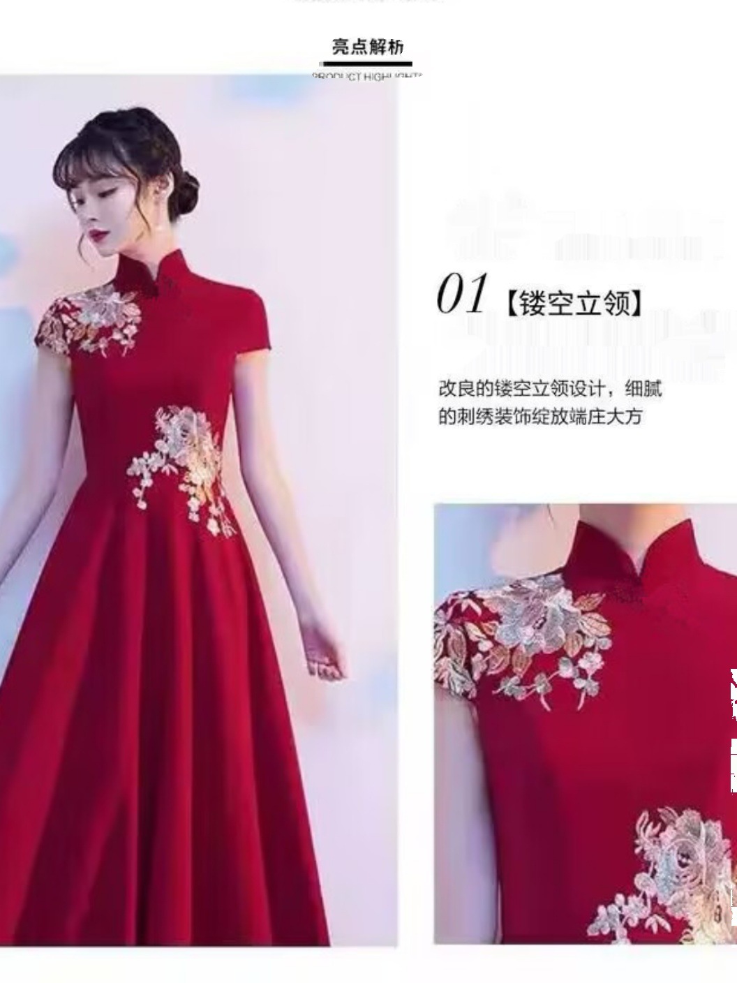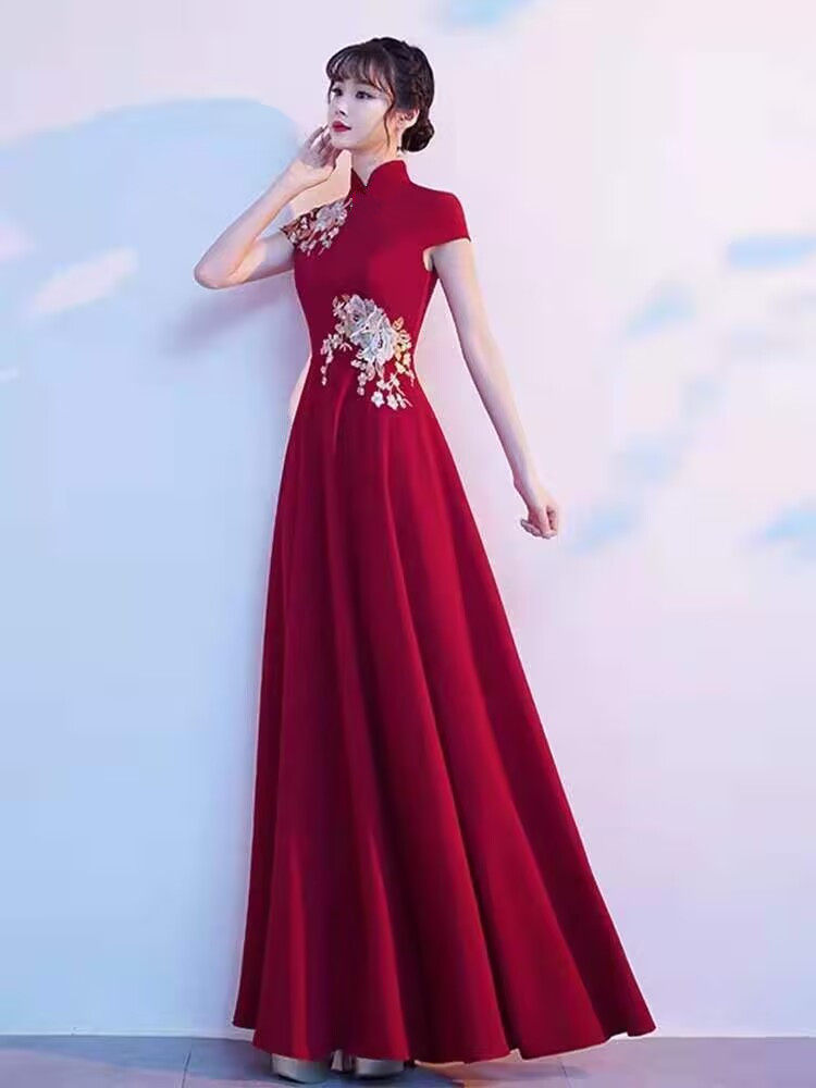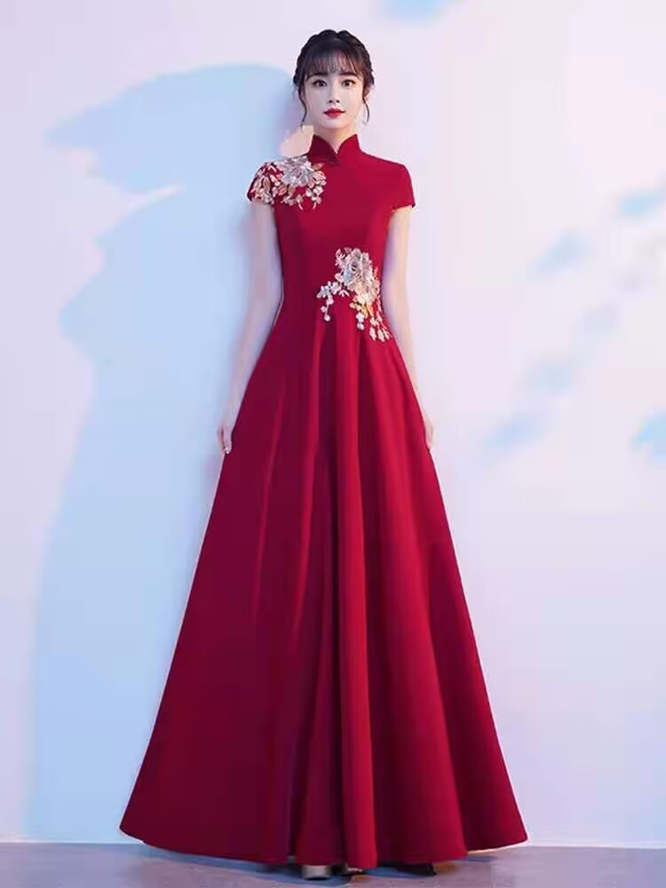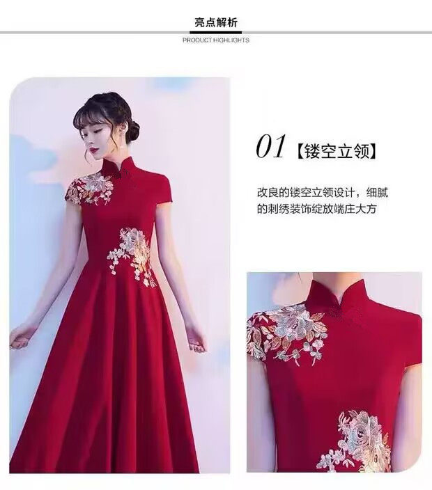 2024 Новый вышитый чонсам этикет приветствует студенческую награду отеля Red длинное вечернее платье платье женское представление