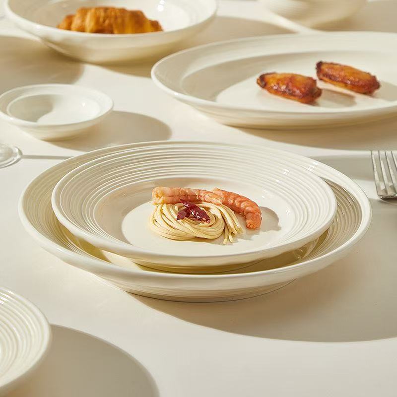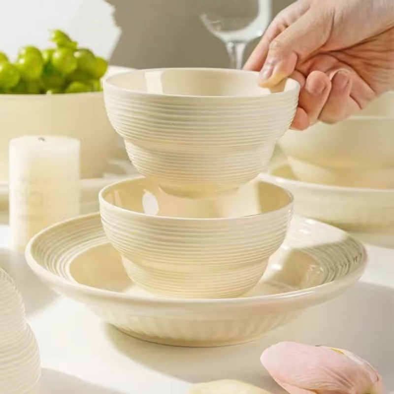 Минималистская кремовая посуда из рисовой посуды с высокой стоимостью резьбы подглазурная подглазурная подглазурная чаша керамическая чаша рисовая чаша керамическая тарелка