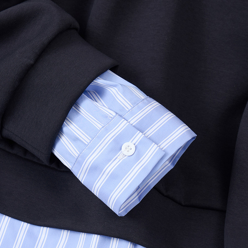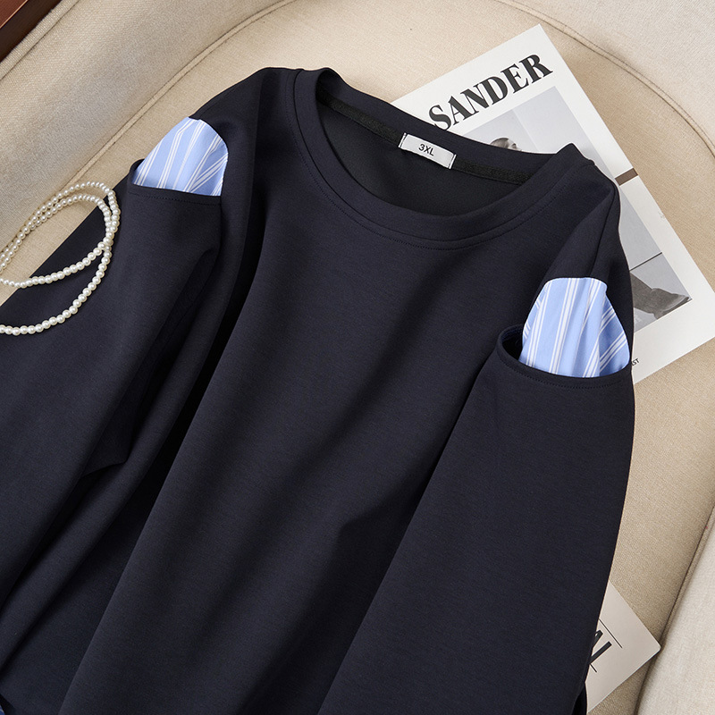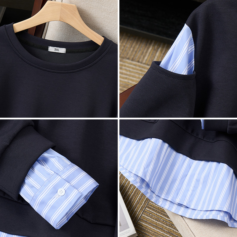 Весенний и осенний новый продукт 250 фунтов толстый MM большой размер женская корейская версия полосатого сшивания поддельные две тонкие топы очень большой S5592