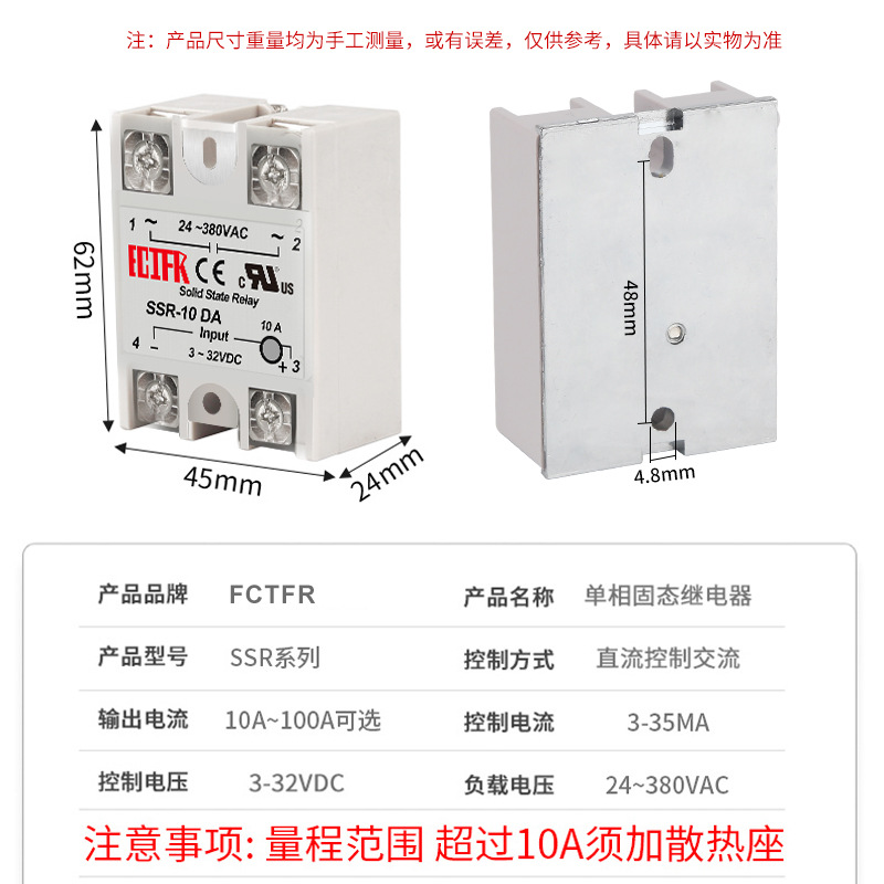 Однофазное твердотельное реле SSR-40DA10A25A60A100A постоянного тока DDAA реле 24V220V