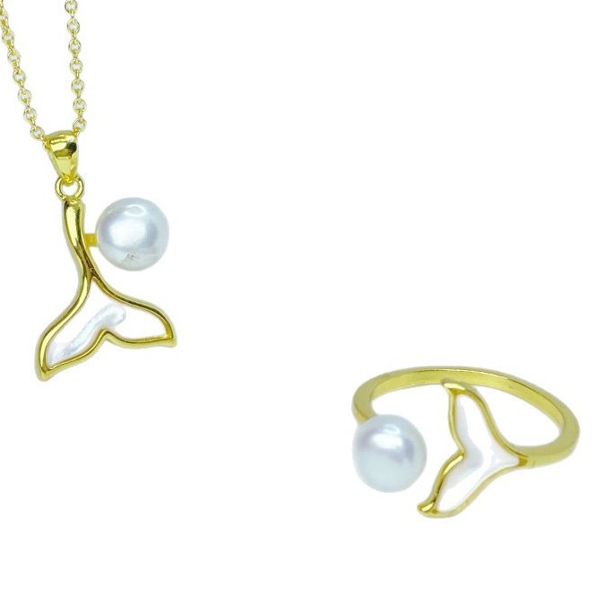 Спот жемчужные украшения оптом ракушки рыбий хвост кулон кольцо ожерелье пресноводный жемчуг набор из двух частей ювелирные изделия женский