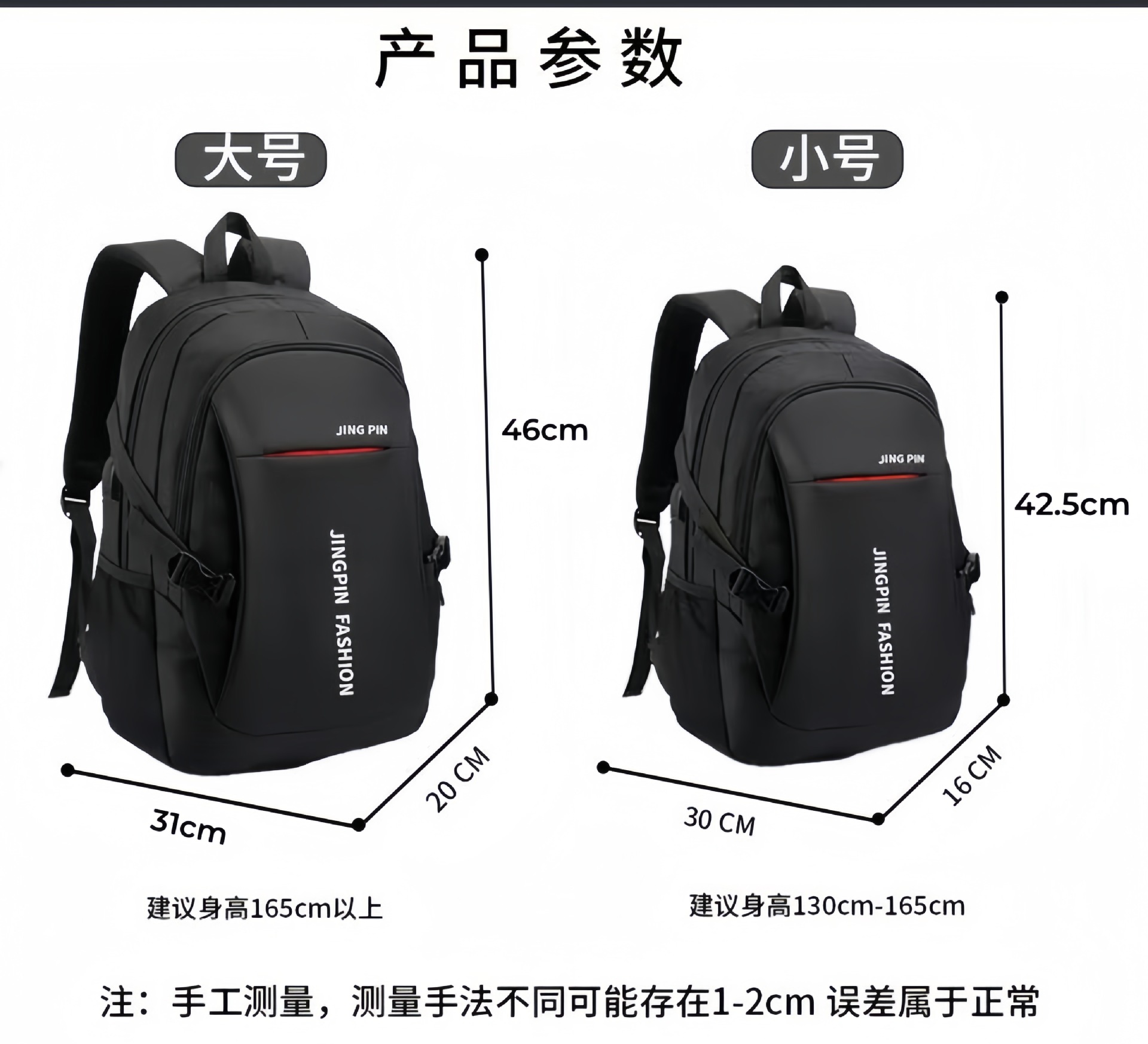 Черный большой размер 46*31*20; Черный маленький размер 42*30*16