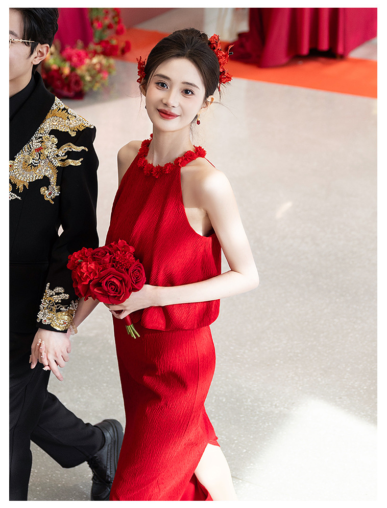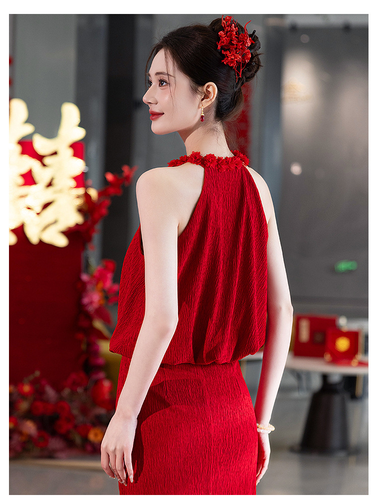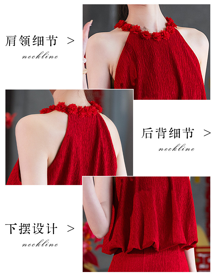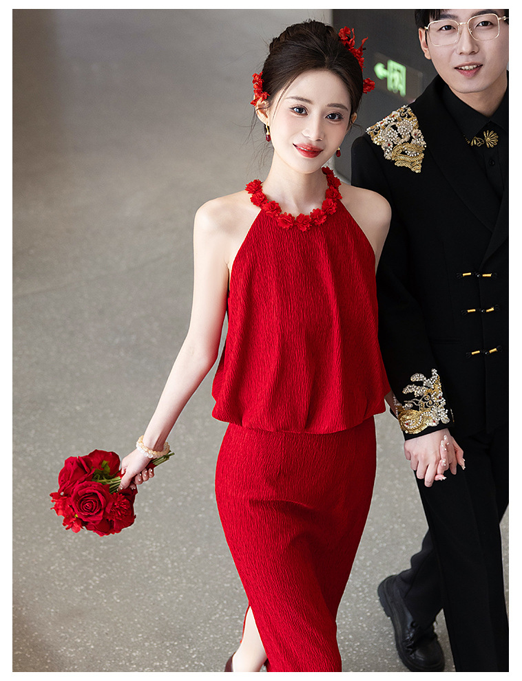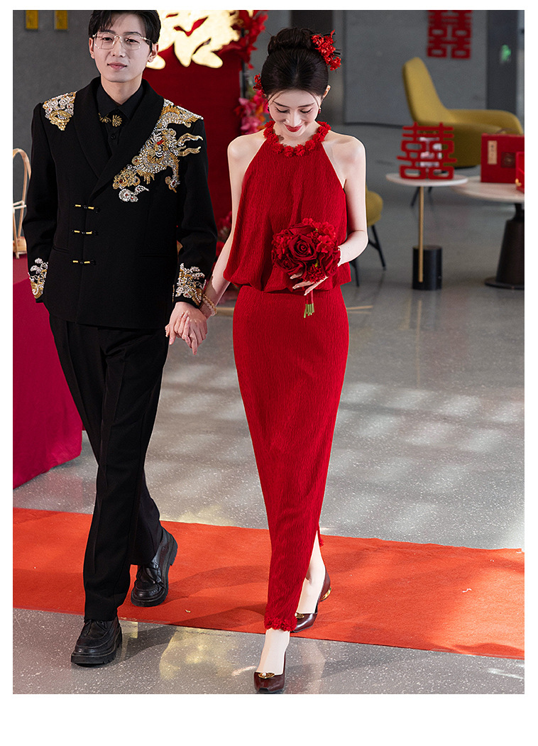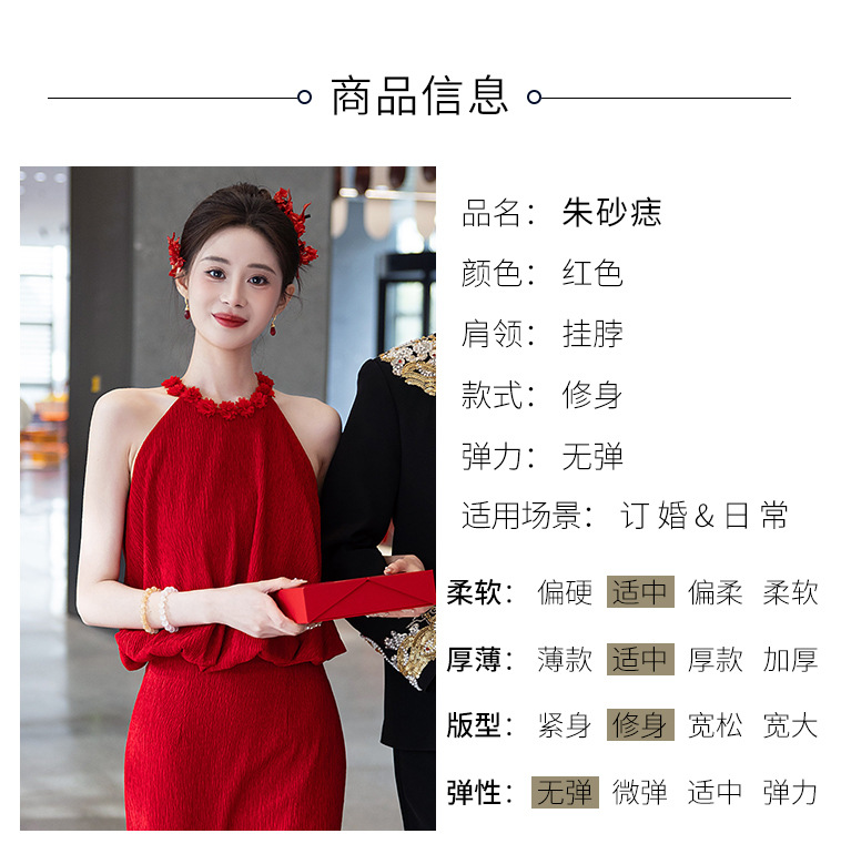 Новое китайское свадебное платье с воротником-халтер, модель 2026 года, с ощущением роскоши, элегантное и стройнящее красное платье для свадебной церемонии.