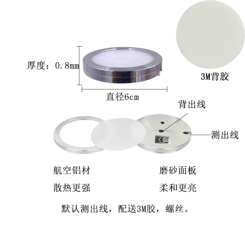 Трансграничный Специально для USB тонкий 5V яркий светодиодный прожектор 3D шкаф винный шкаф 60 мм круглый шкаф RV свет