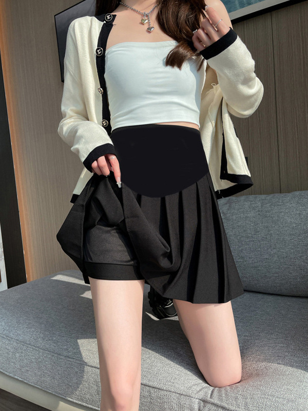 Юбка А-силуэта для беременных на весну и осень с поддержкой живота, защитные шорты для беременных, юбка-шорты с защитой от просвечивания, модная короткая юбка для беременных, стройнящая фигуру.