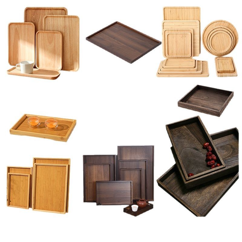 Индивидуальный деревянный поднос из орехового дерева для коммерческого использования, прямоугольный поднос для закусок и суши из массива дерева.