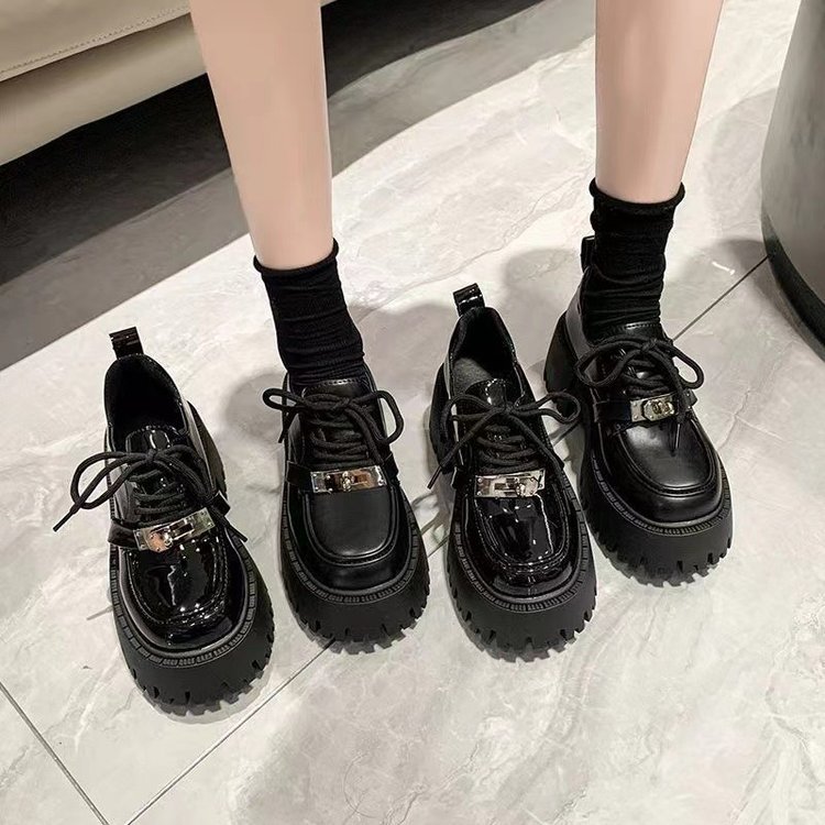 Черные маленькие кожаные туфли на толстой подошве для женщин, весна-осень 2025, новые туфли на плоской подошве в британском стиле в стиле ретро, на толстом высоком каблуке, однотонные туфли Мэри Джейн