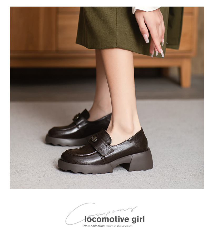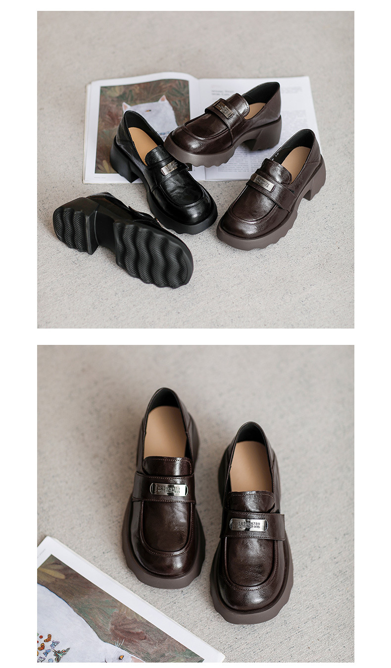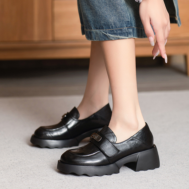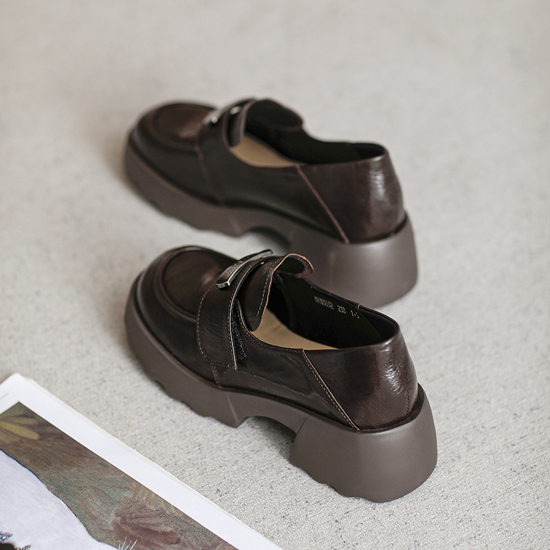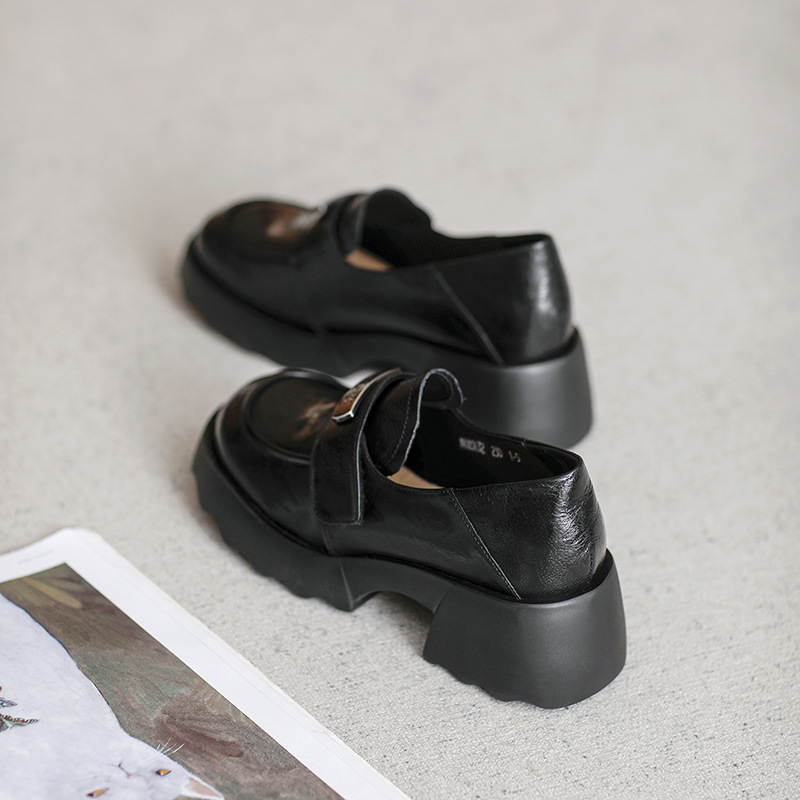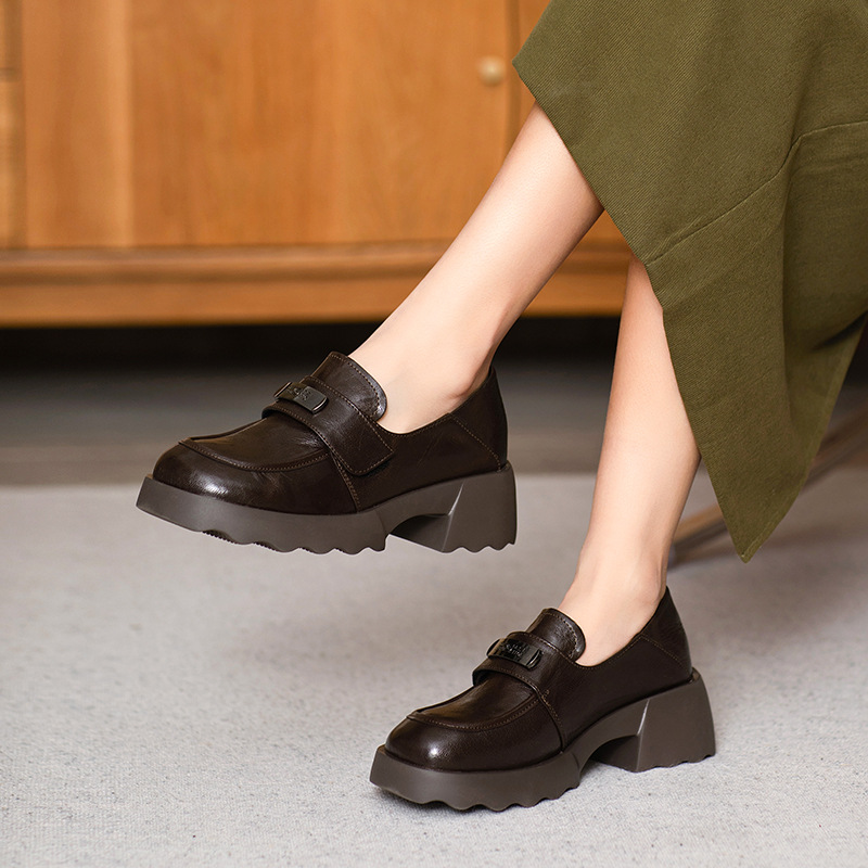 2025 весна и осень новые туфли из овчины Lefu, сосновые кексы с толстым дном, пригородные дикие повседневные кожаные туфли в британском стиле