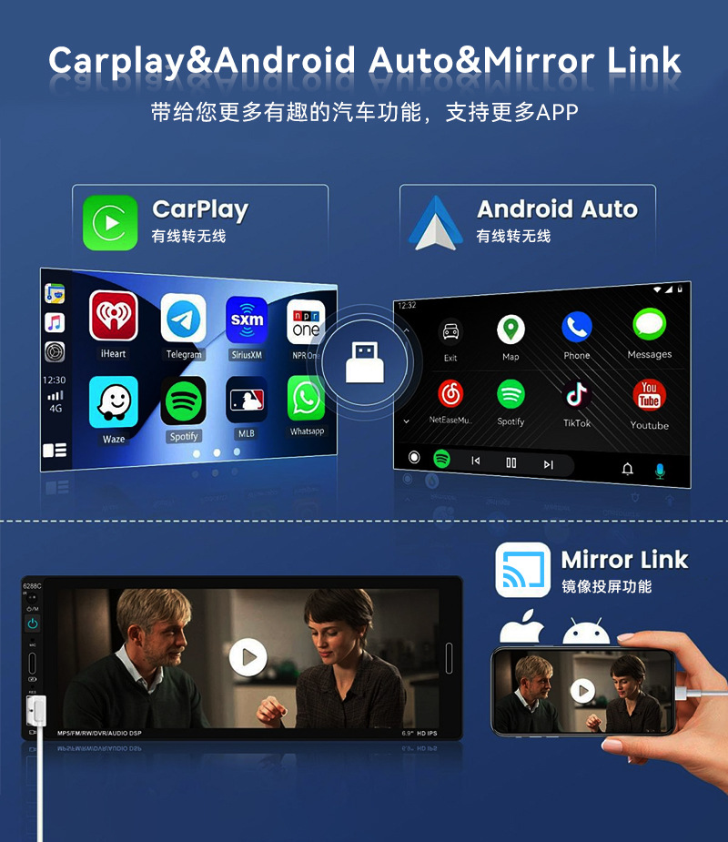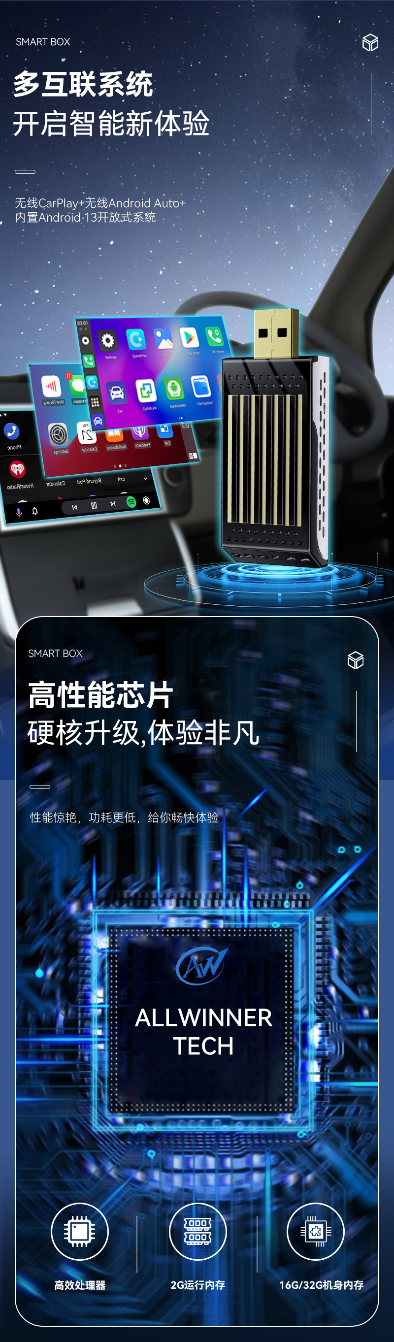 Популярный автомобильный Android-бокс 3-в-1 с модулем CarPlay, проекцией экрана и функцией Smart CarPlay