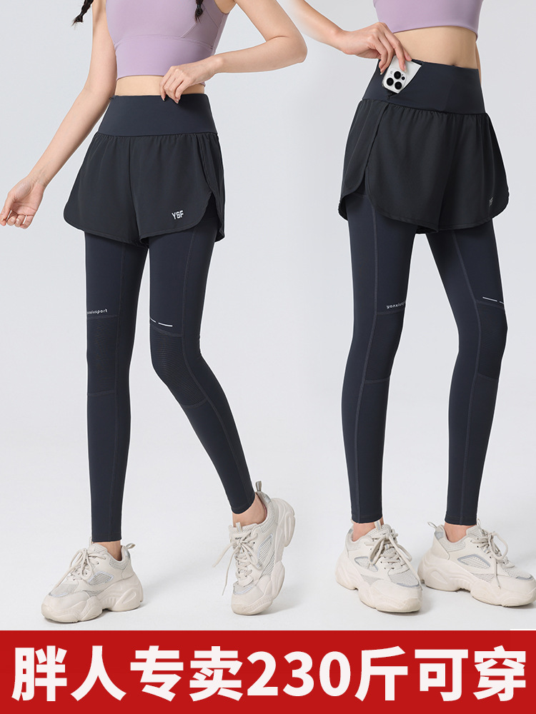 Новый стиль с высокой талией и толстым MM поддельные две спортивные штаны для детей фитнес-брюки