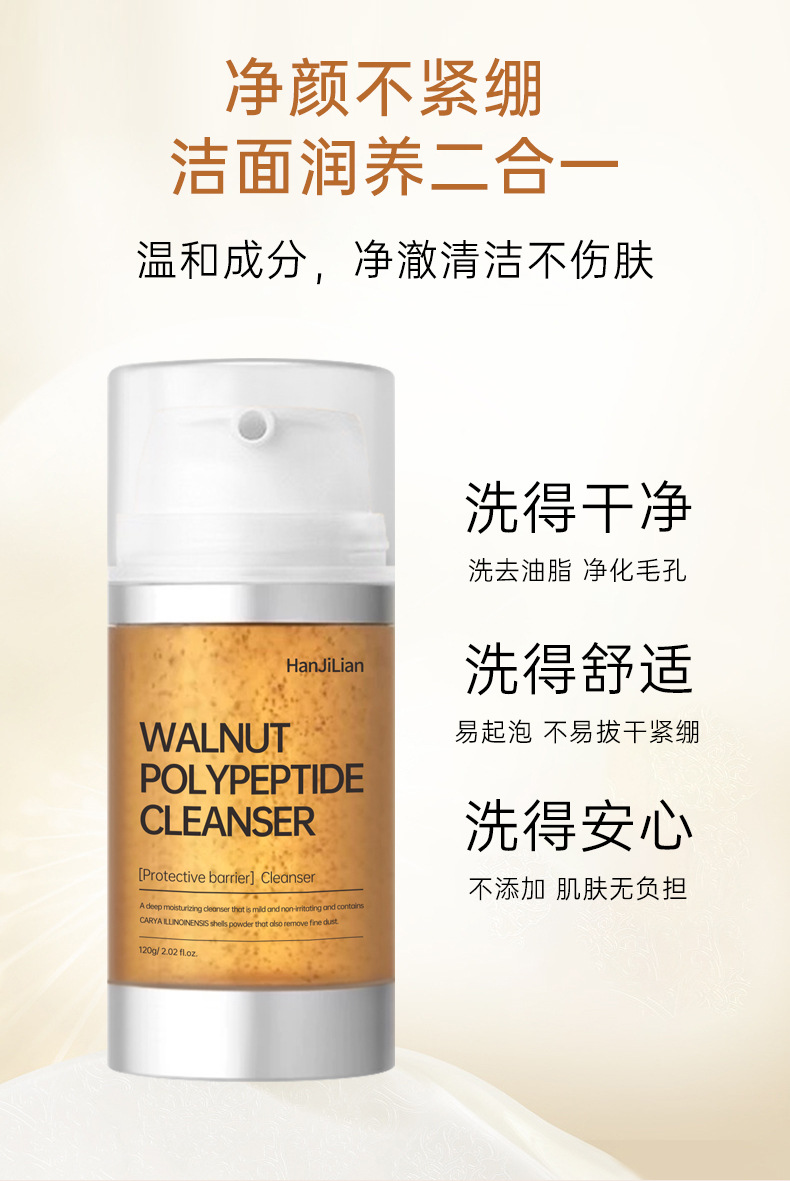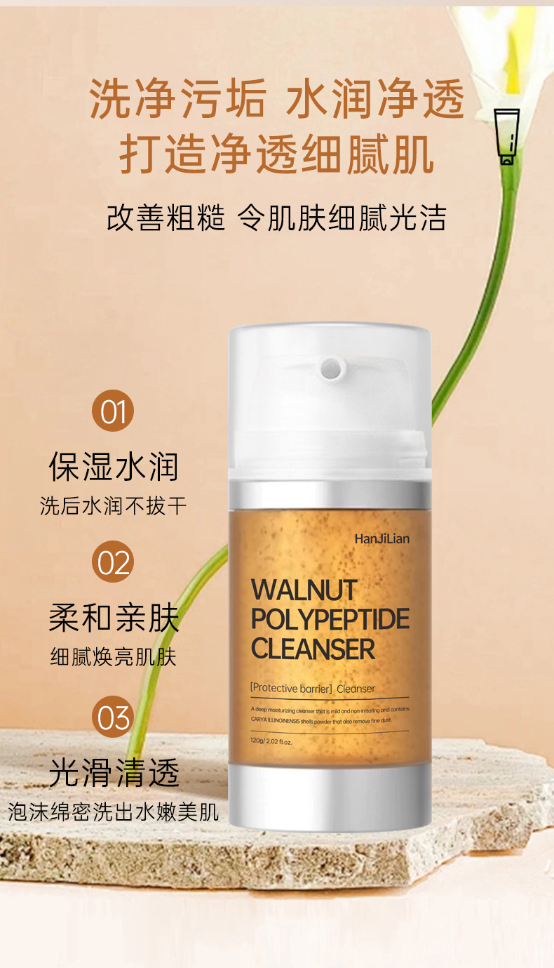 Очищающее средство для лица с галантерейным полипептидом и грецким орехом Han Jilian 947