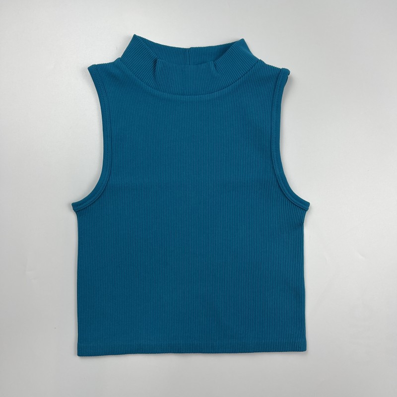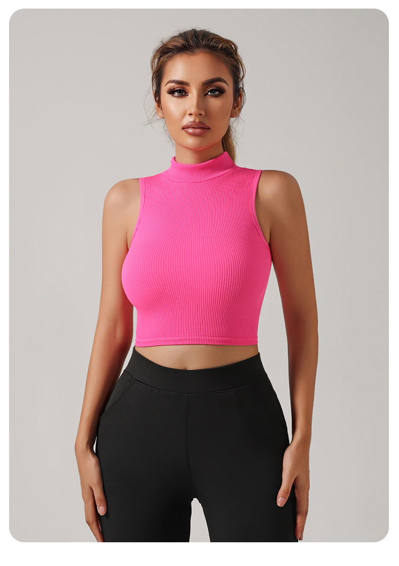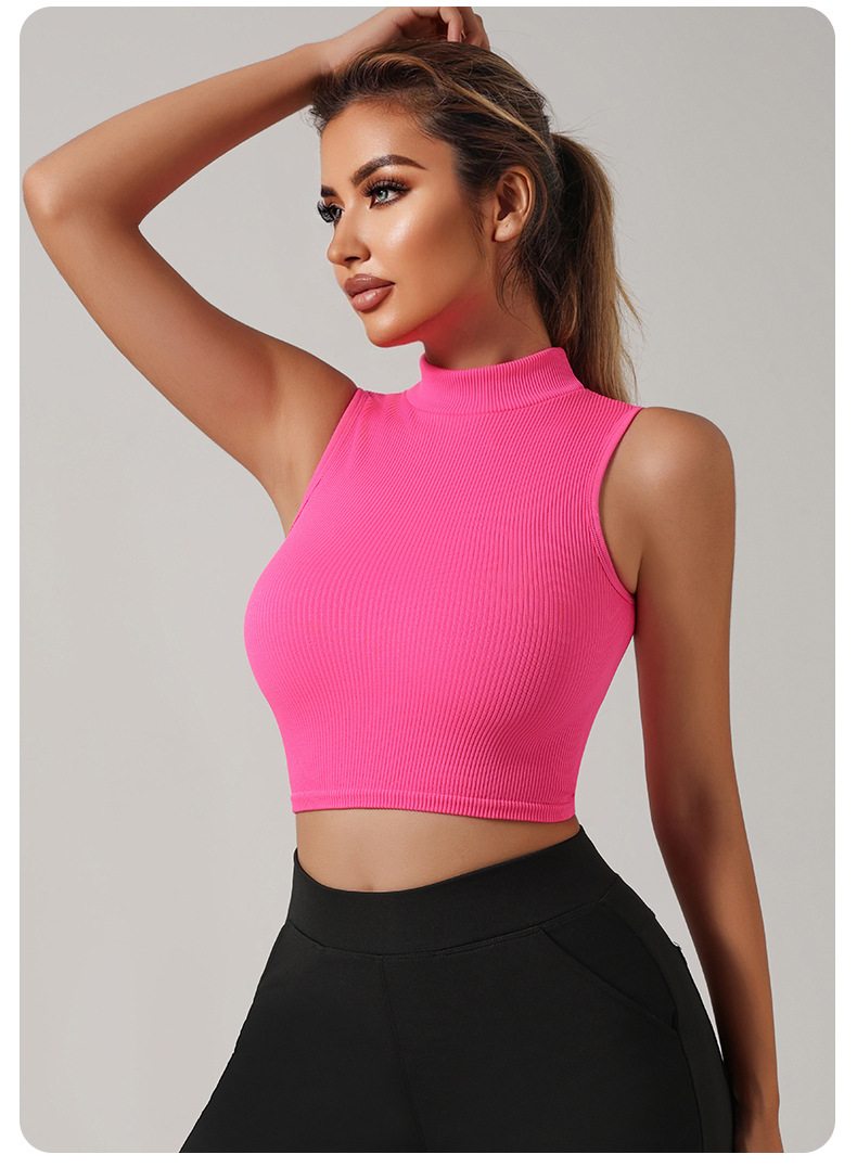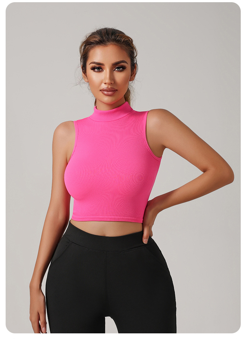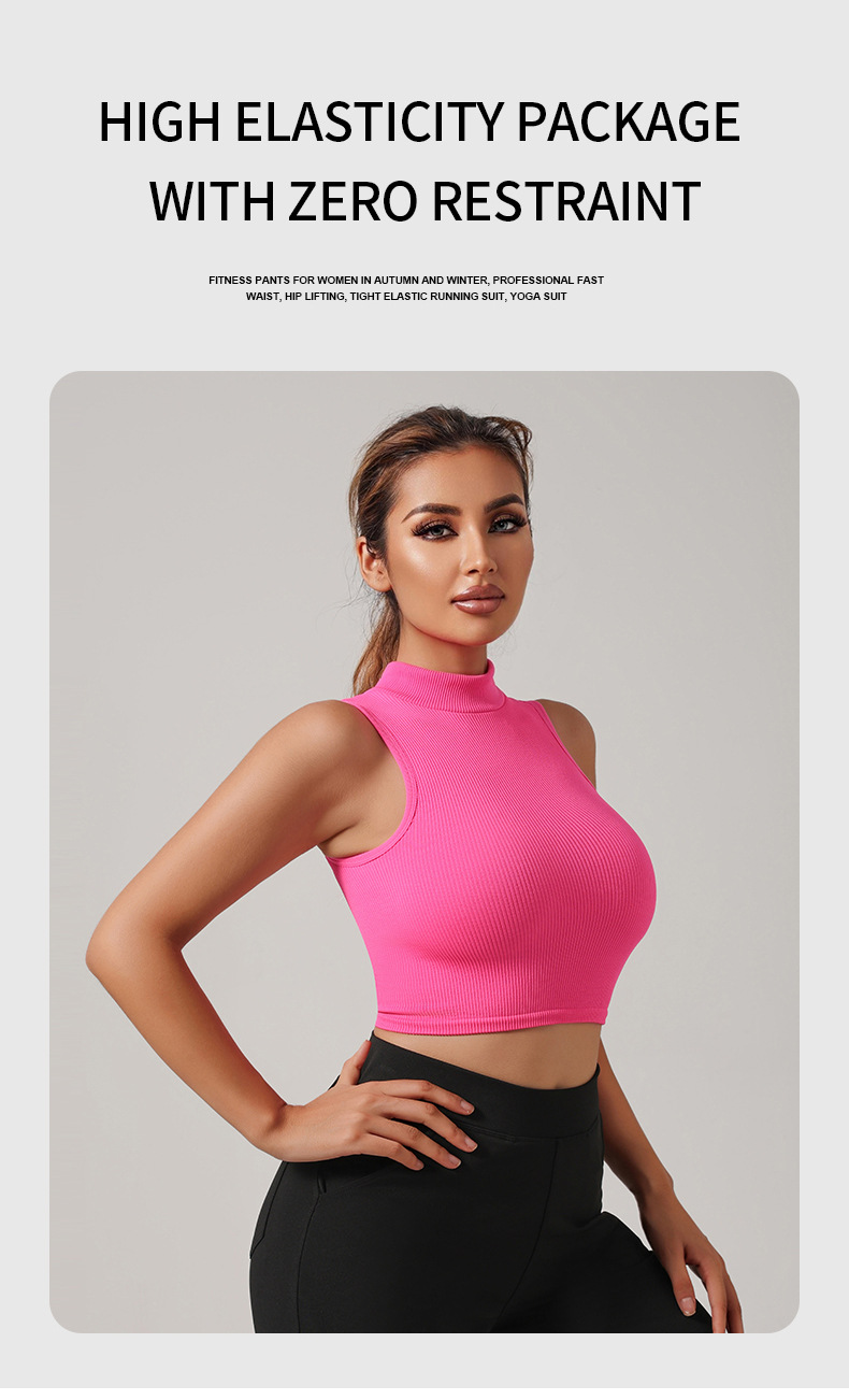 Европейский и американский трансграничный бесшовный речатый спортивный жилет с высоким вырезом