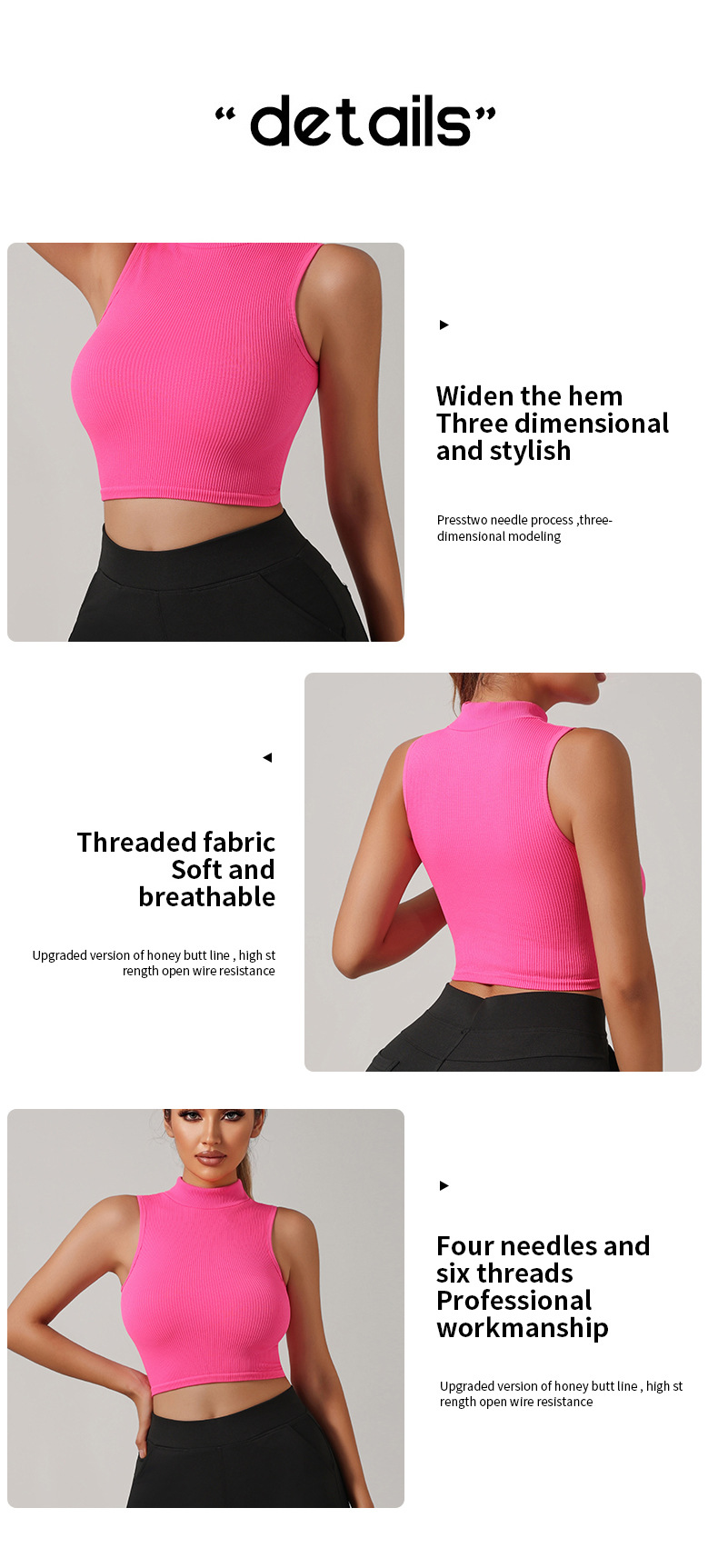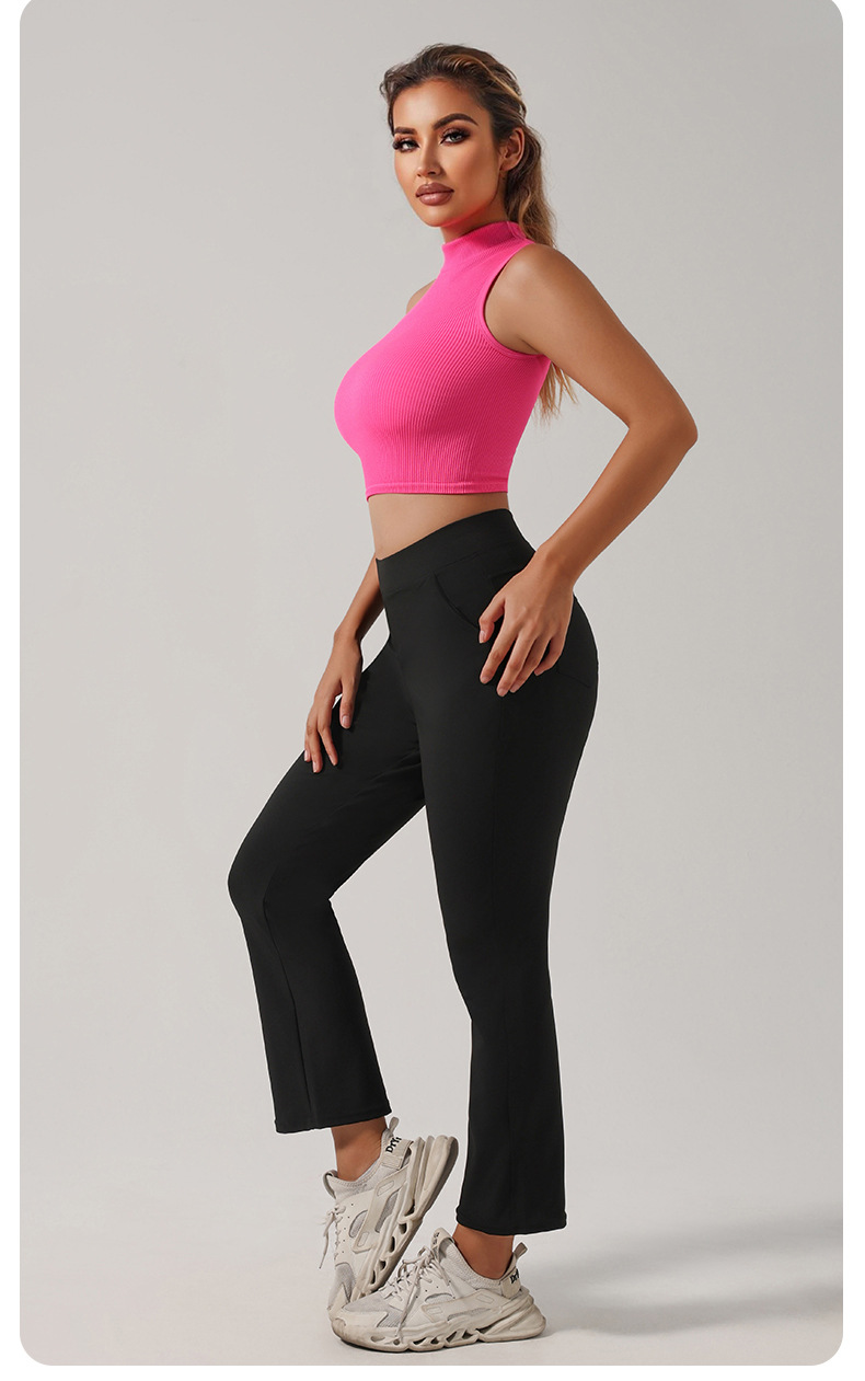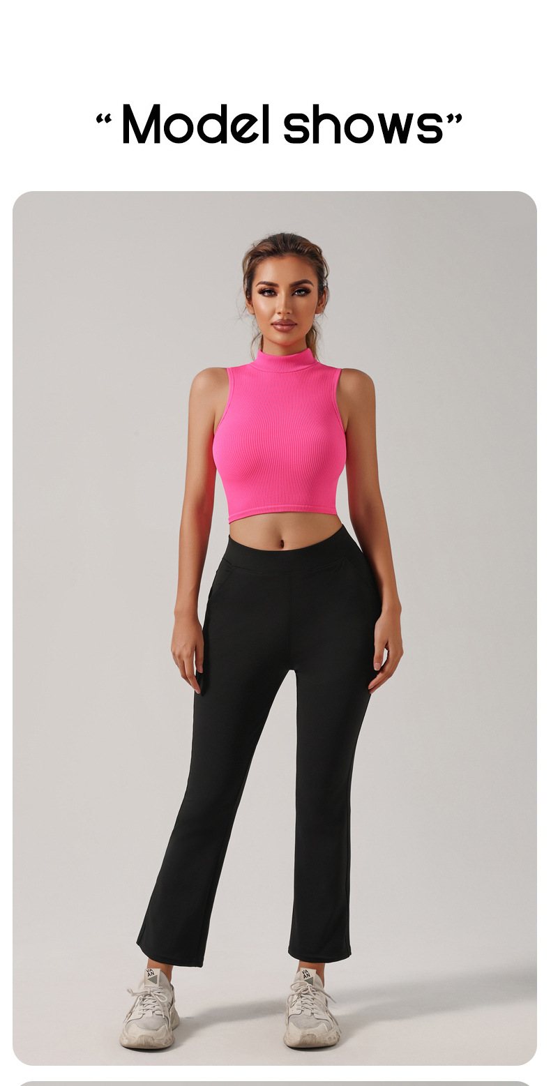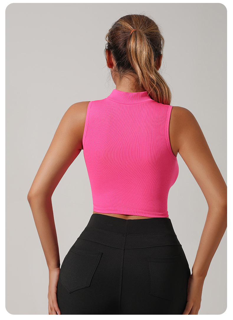 Европейский и американский трансграничный бесшовный речатый спортивный жилет с высоким вырезом