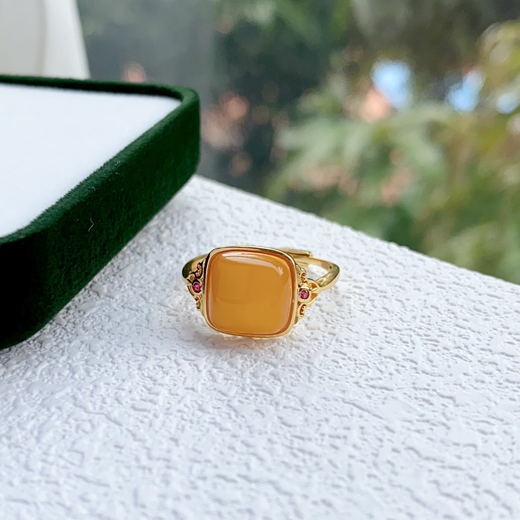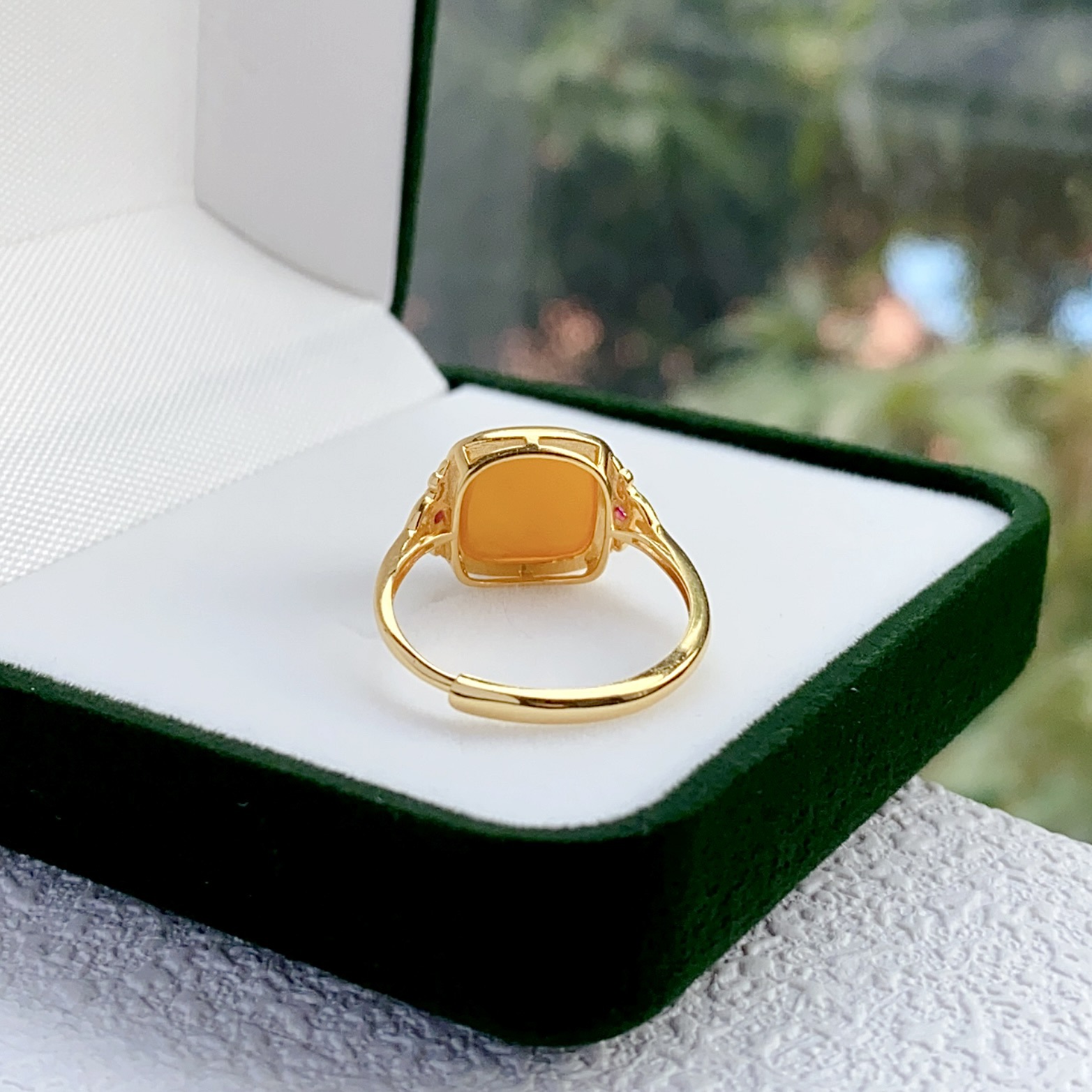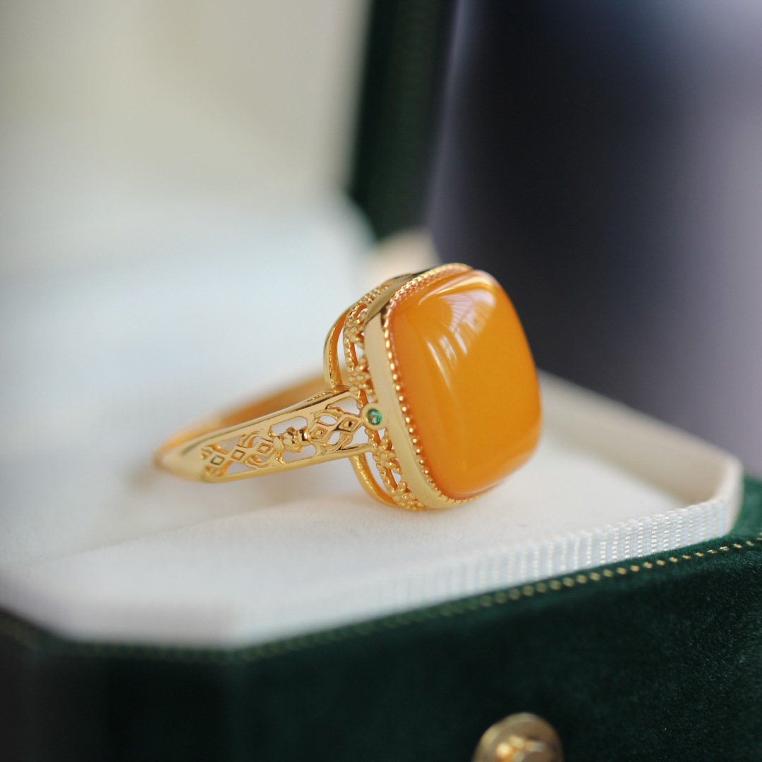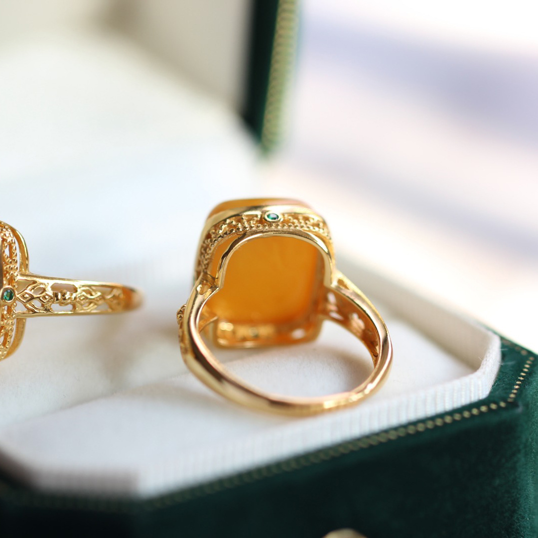 [Серебро S925] Кольцо с кубиком сахара из старого янтаря — около 12×14 мм; 【Серебро S925】Кольцо с янтарным кубиком сахара в стиле состаренности – приблизительно 10*10 мм