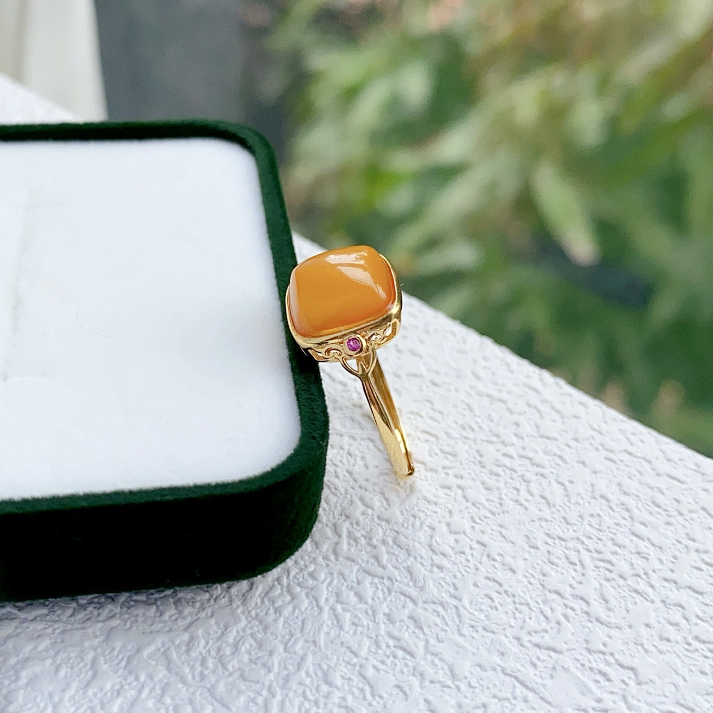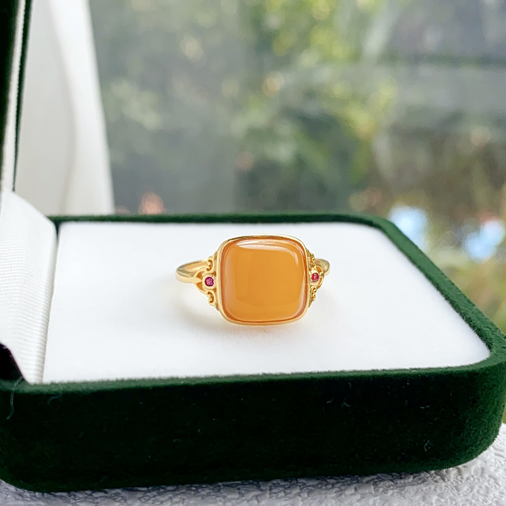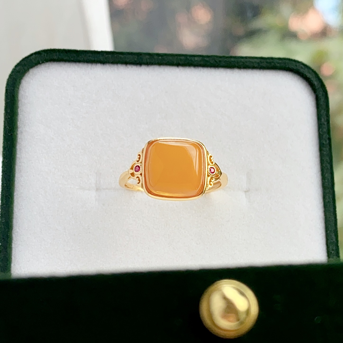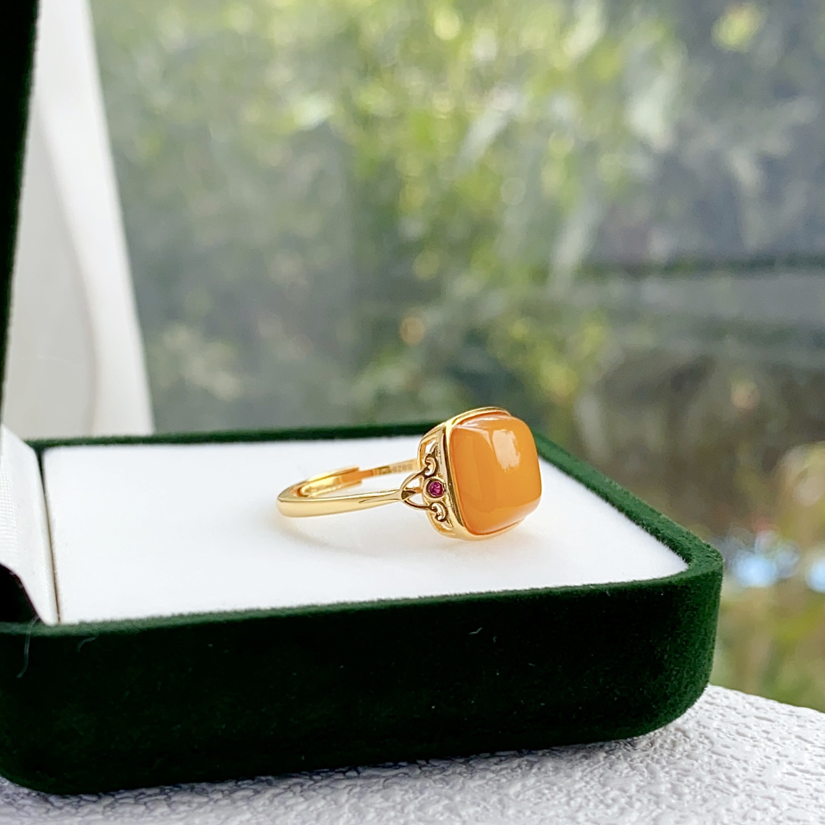 [Серебро S925] Кольцо с кубиком сахара из старого янтаря — около 12×14 мм; 【Серебро S925】Кольцо с янтарным кубиком сахара в стиле состаренности – приблизительно 10*10 мм