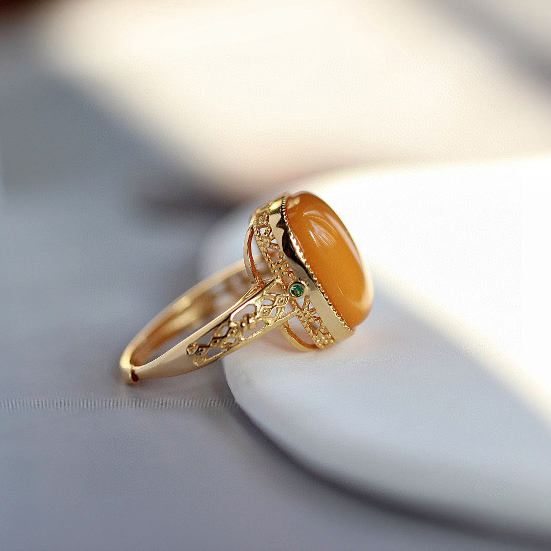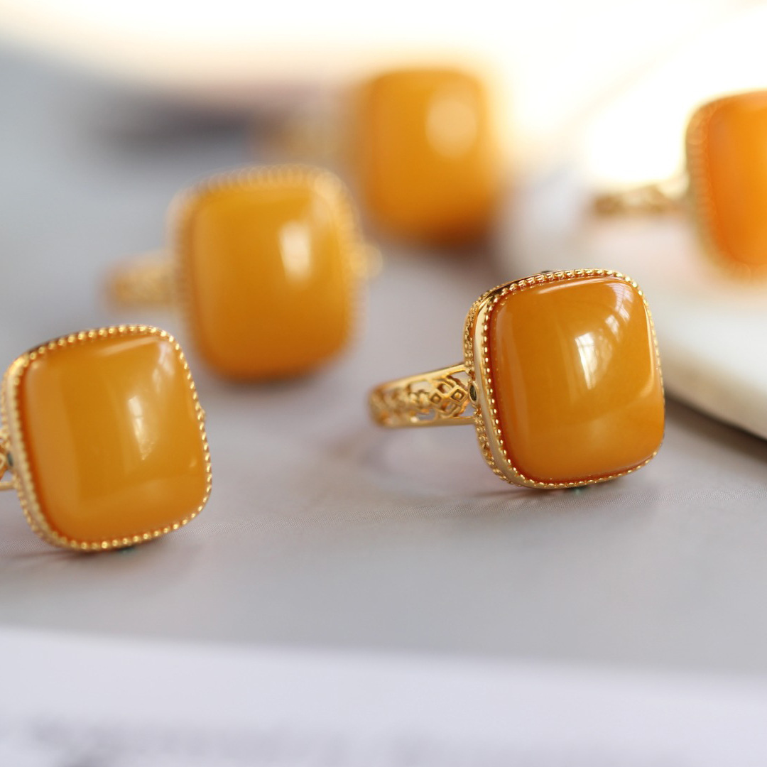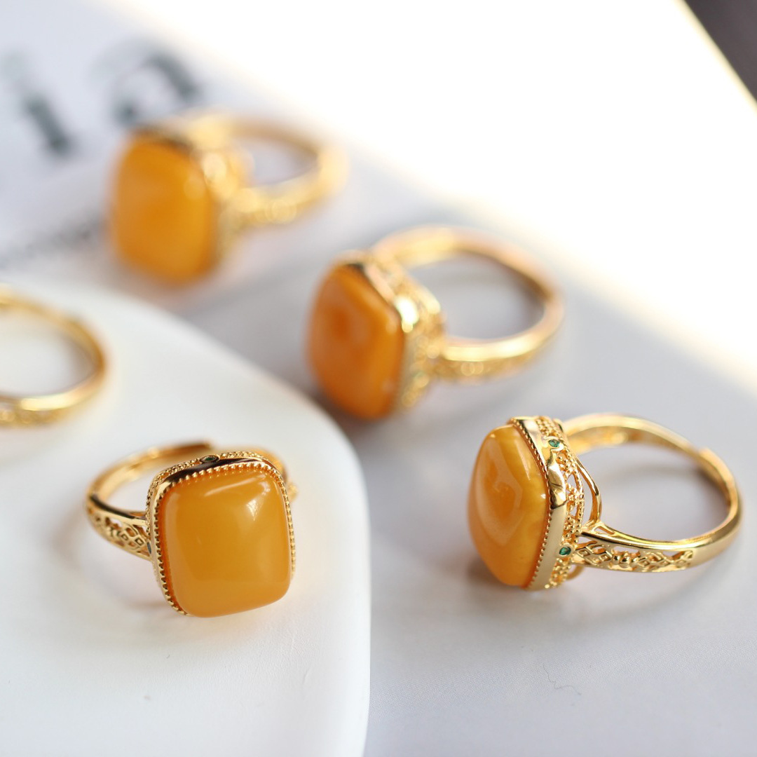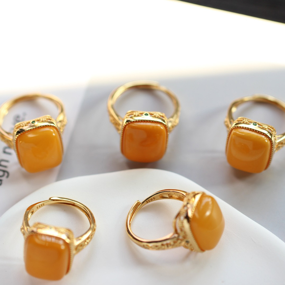 Кольцо из натурального пчелиного воска для женщин, кольцо из натурального пчелиного воска, кольцо в форме желтого сахарного кубика из куриного жира, винтажное кольцо из серебра 925 пробы с янтарем