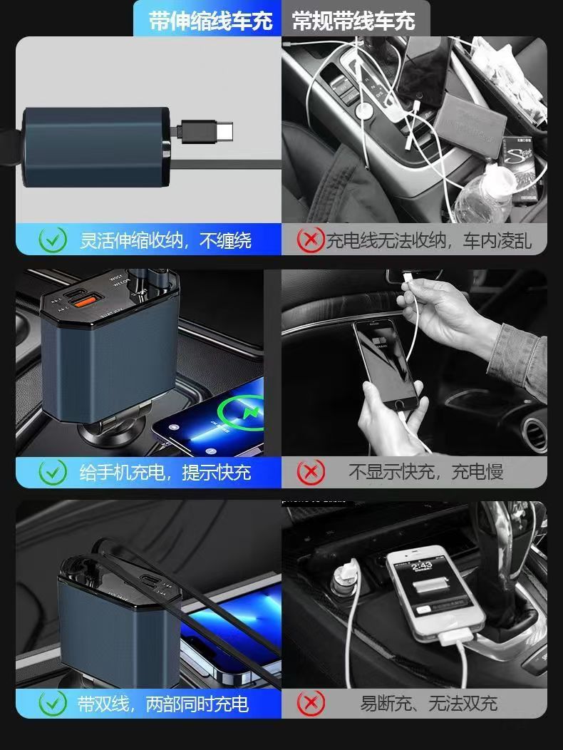 Умное новое автомобильное зарядное устройство 120 Вт, сверхбыстрая зарядка, универсальный автомобильный адаптер для прикуривателя, понижающий кабель