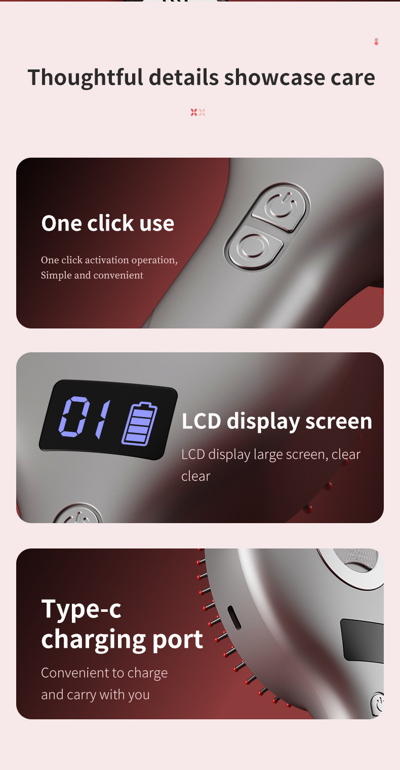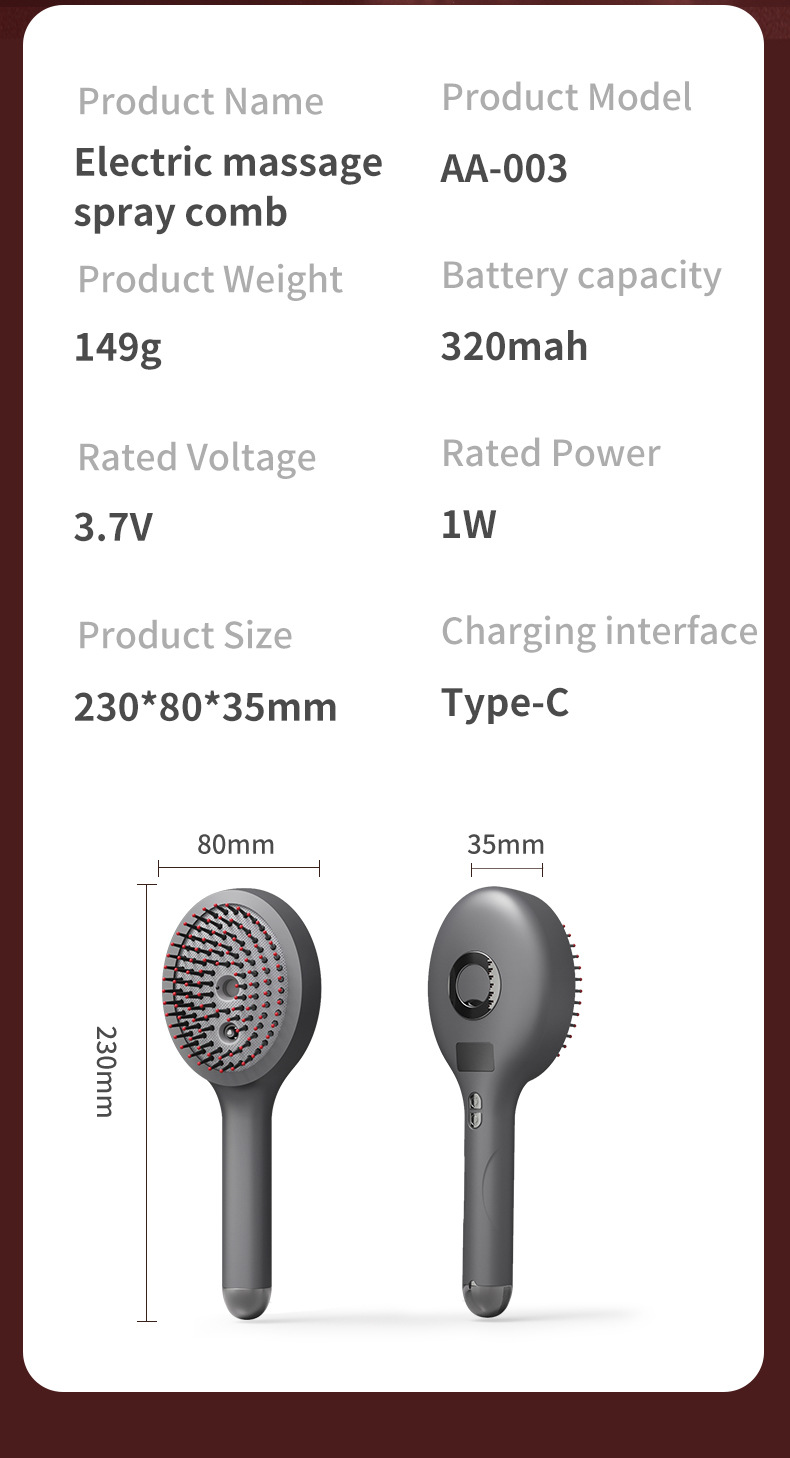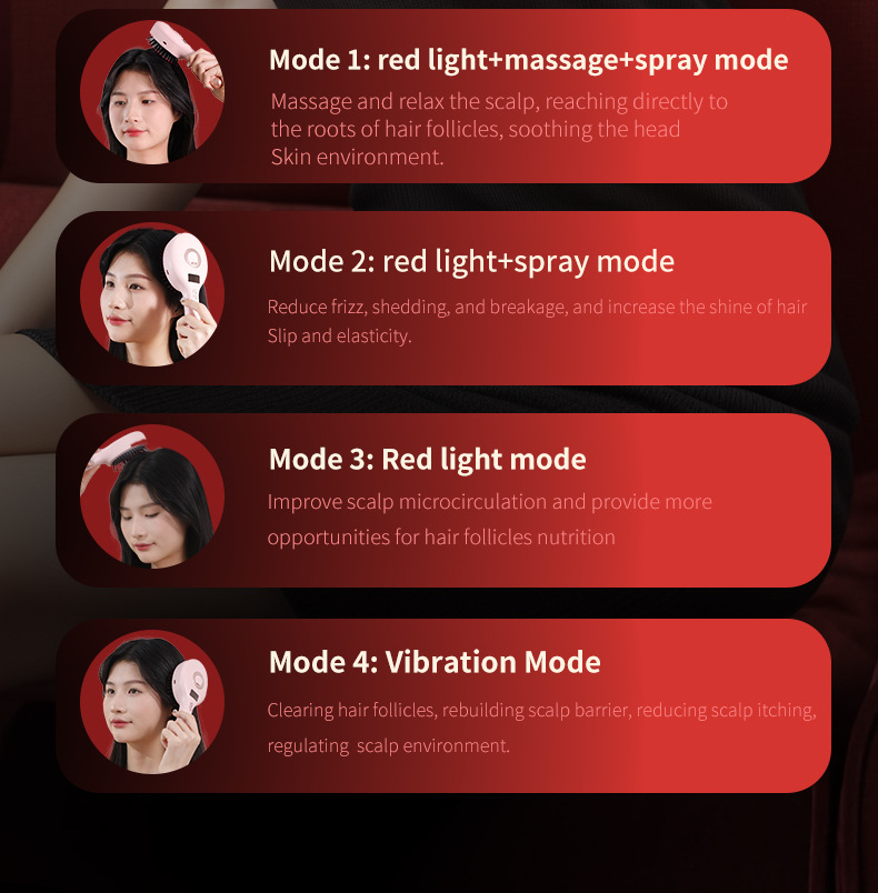 Вибрационный массажный спрей для ухода за волосами с красным светом