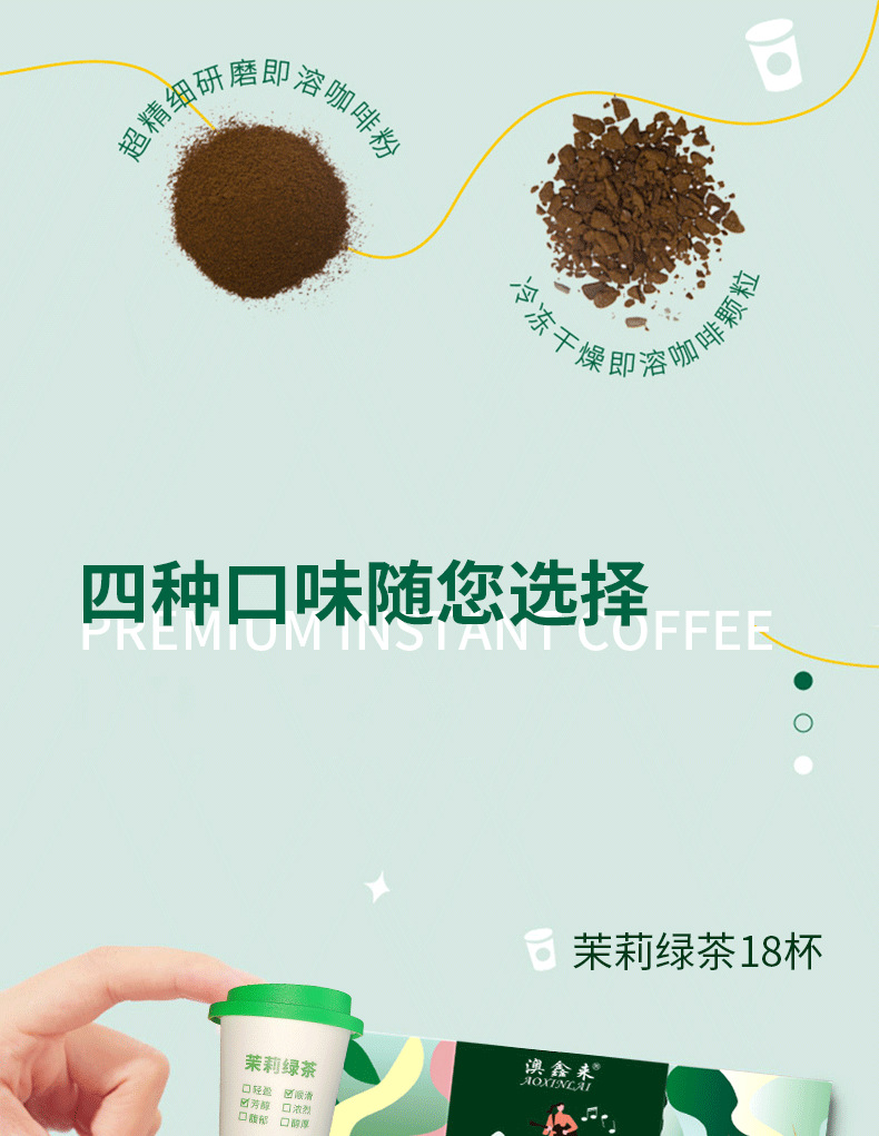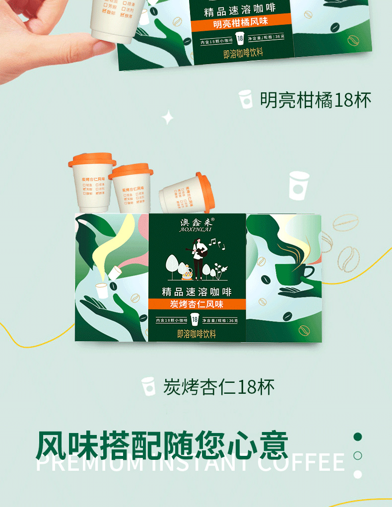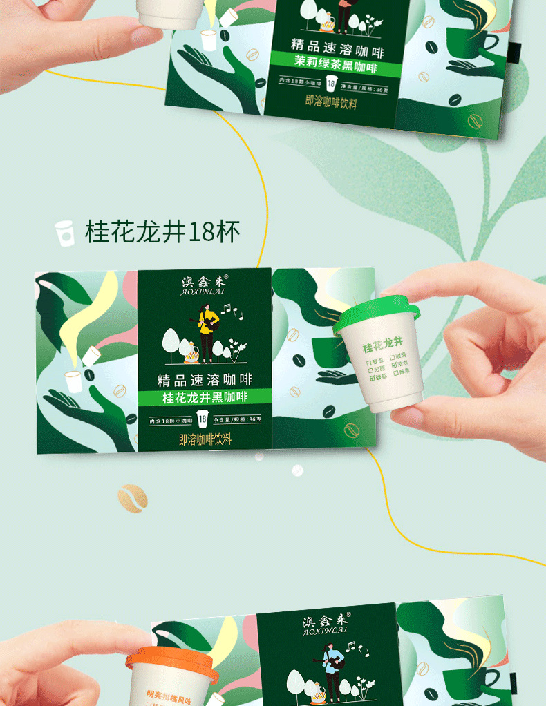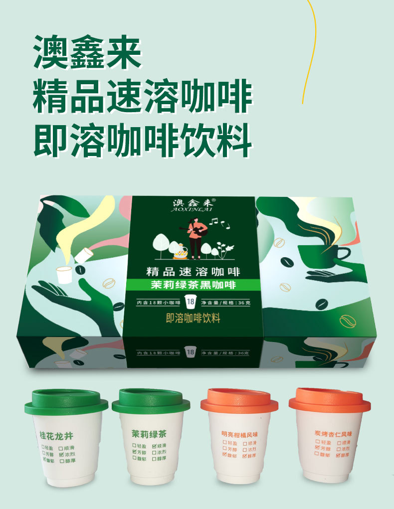 Завод источника Aoxinlai яркий цитрусовый кофе 18 чашек маленьких банок капсул жасмин зеленый чай черный кофе оптом