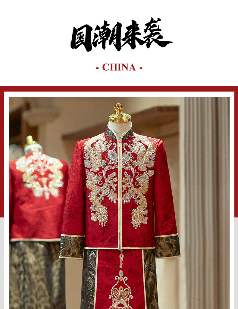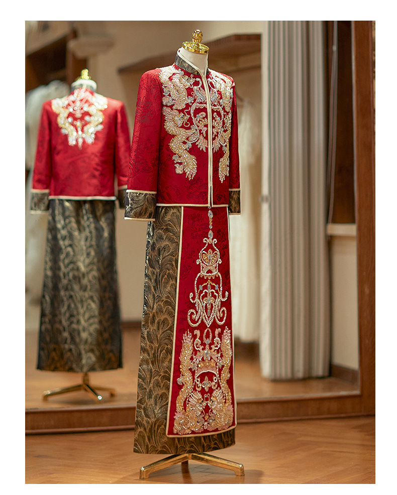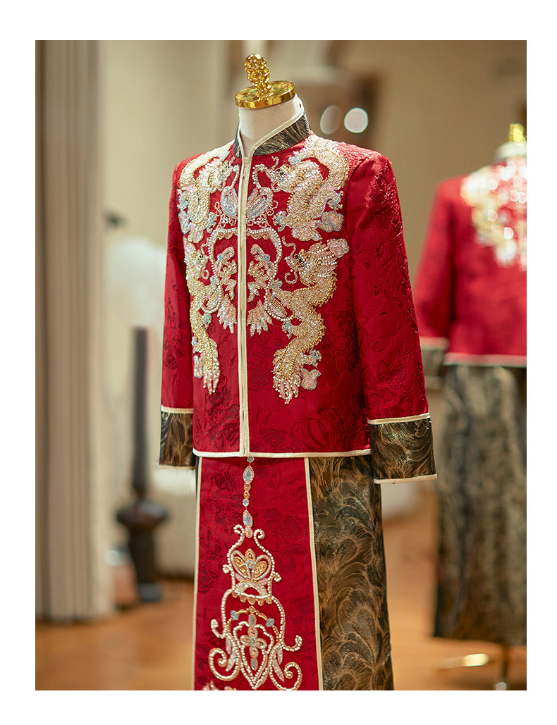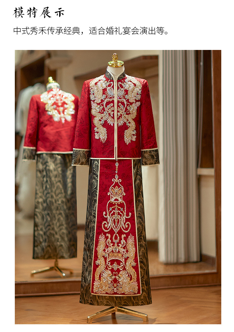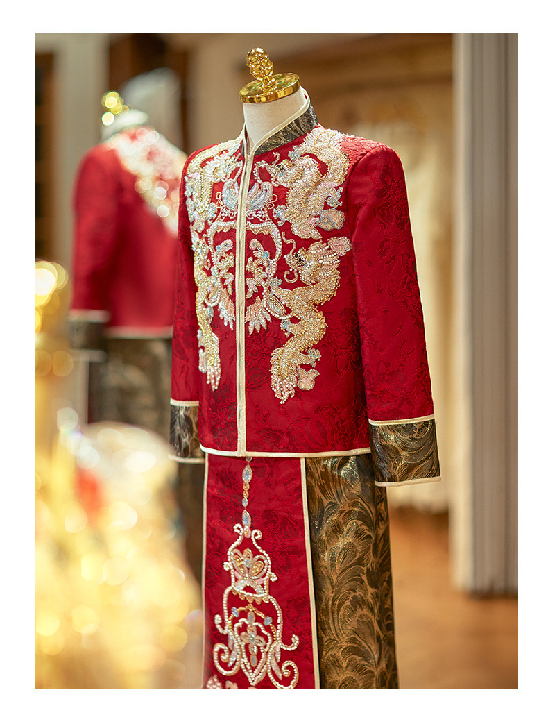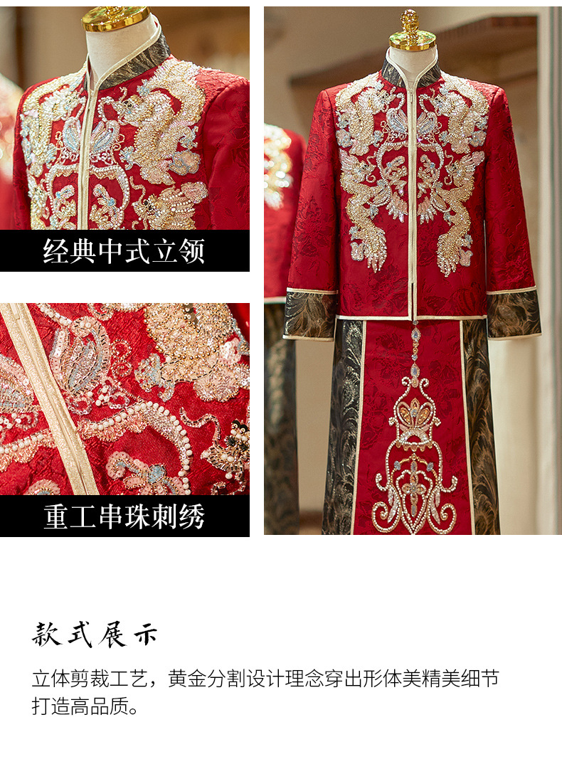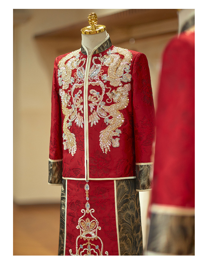 Мужское шоу-костюм 2025 новый китайский стиль свадебное платье ретро тяжелый рабочий костюм зимний жених свадебный костюм дракон феникс