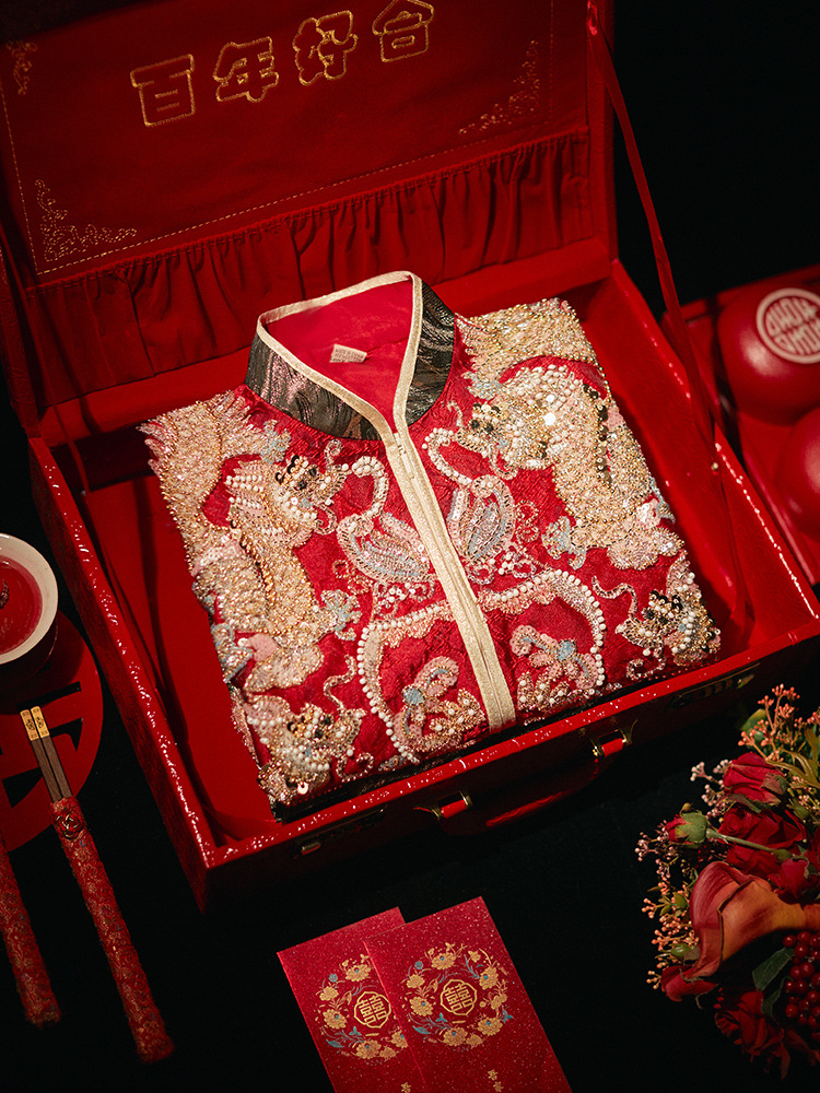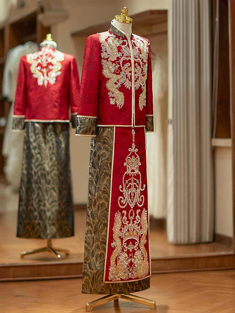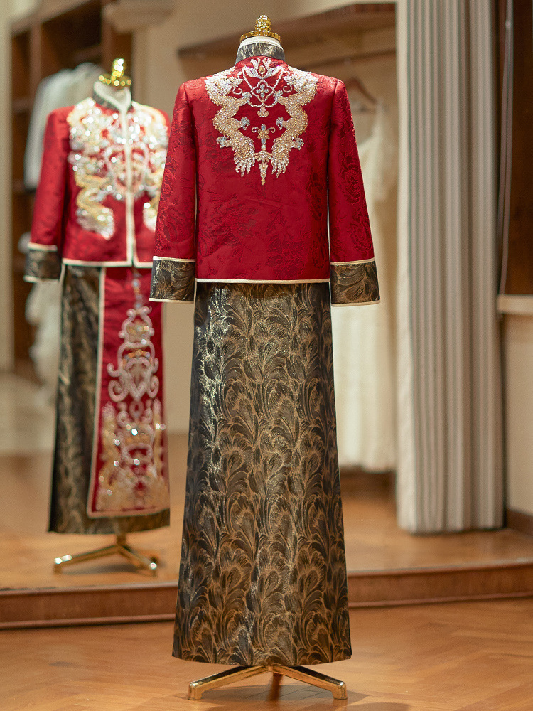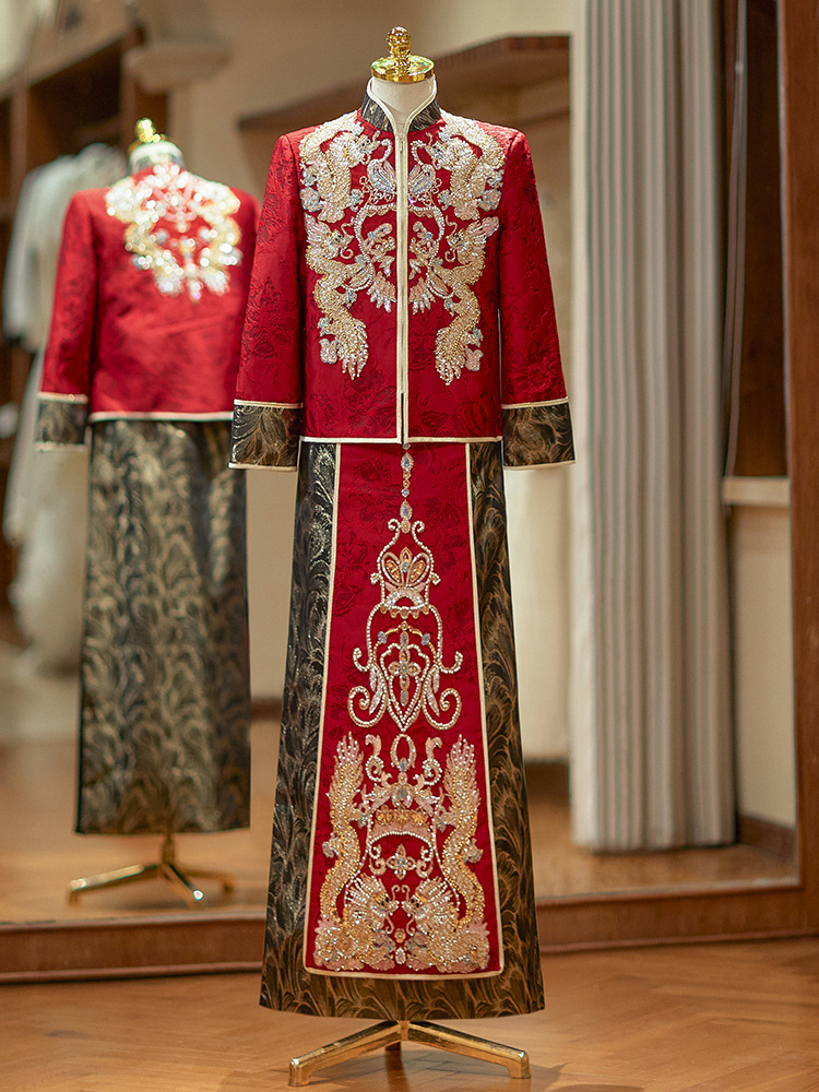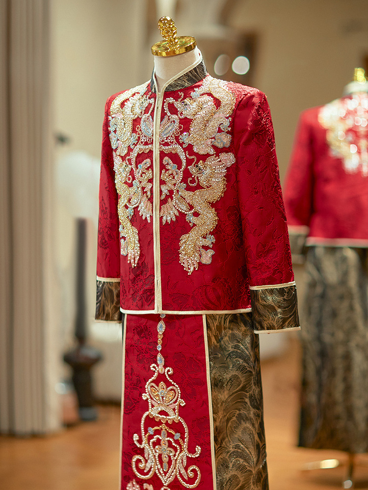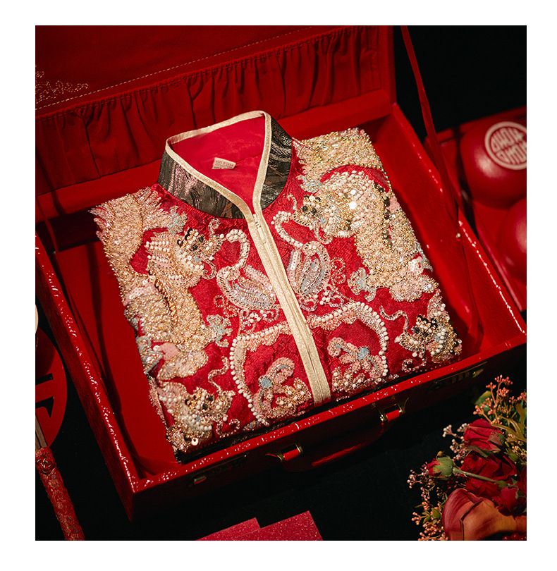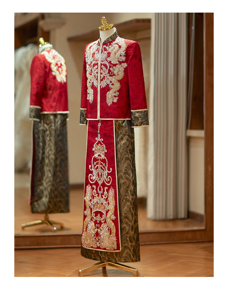 Мужское шоу-костюм 2025 новый китайский стиль свадебное платье ретро тяжелый рабочий костюм зимний жених свадебный костюм дракон феникс