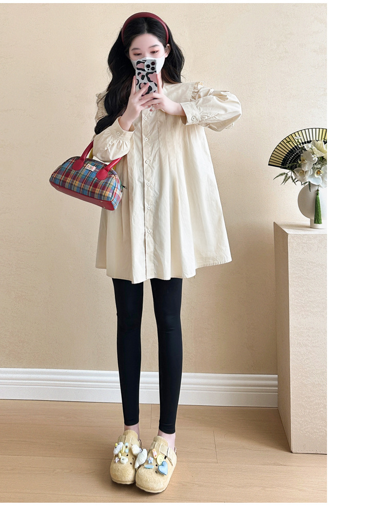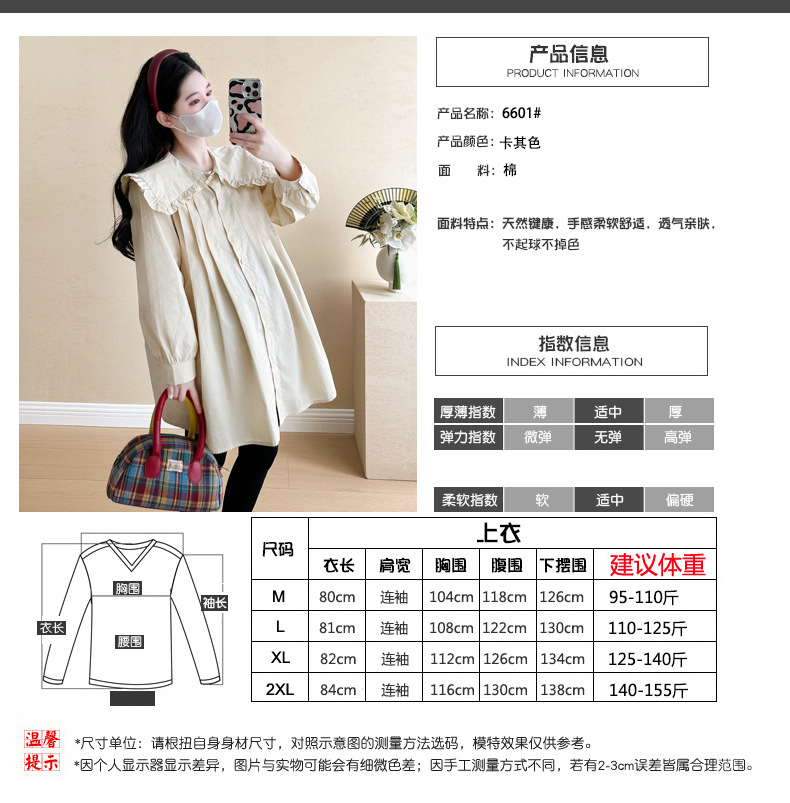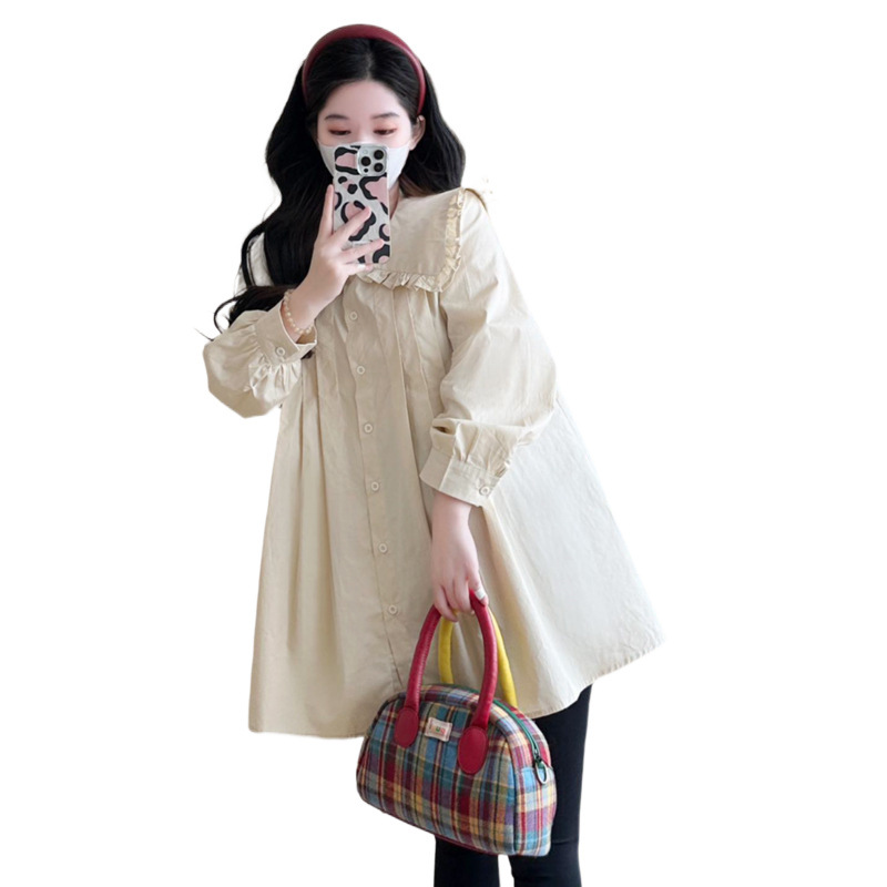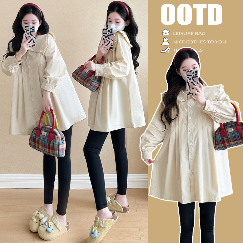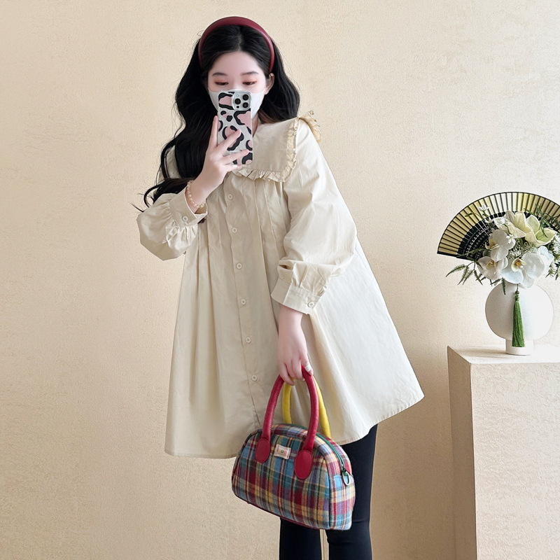 Одежда для беременных 2025 весна и осень новая длинная рубашка с длинными рукавами