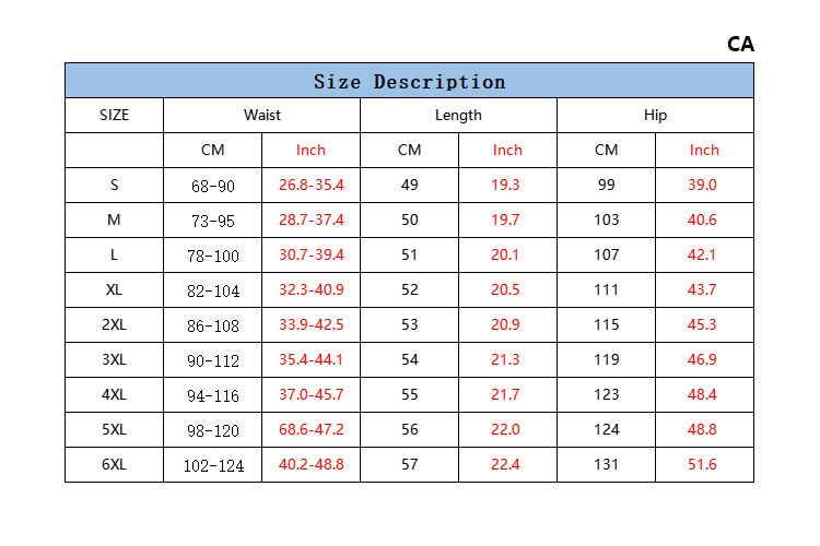 S; M; L; XL; 2XL; 3XL; 4XL; 5XL; 6XL