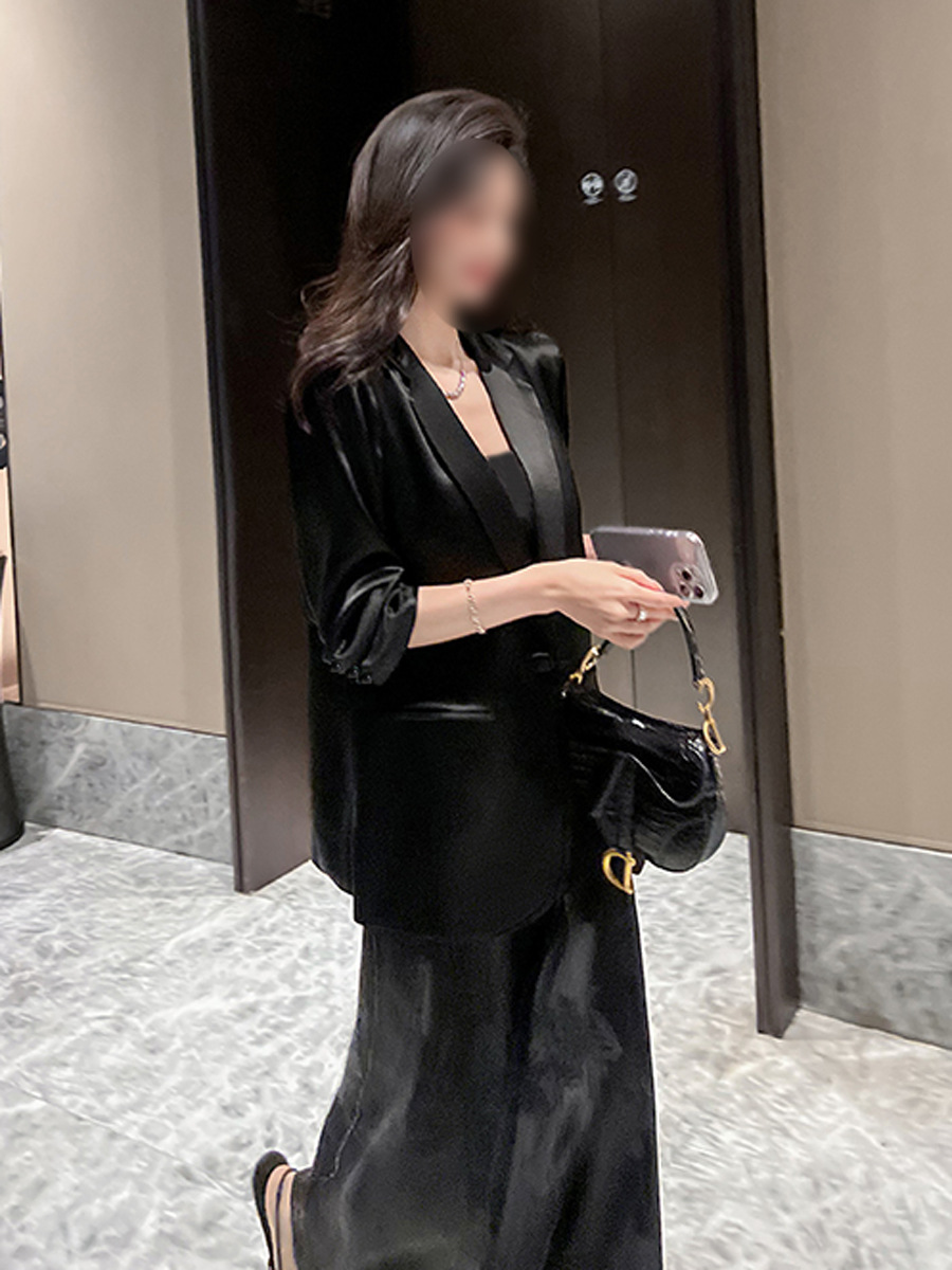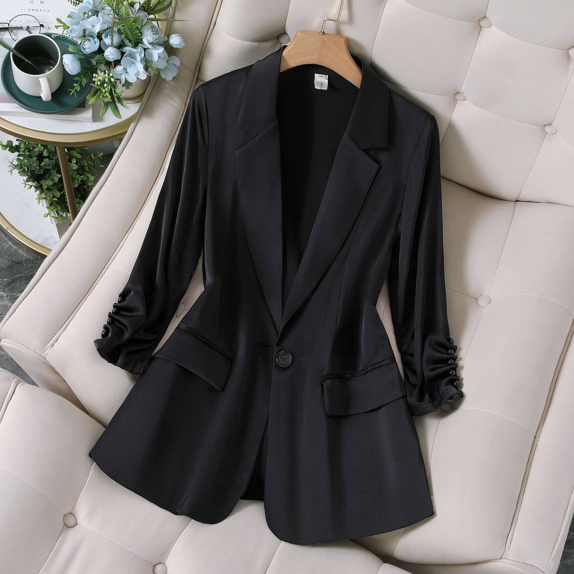 XZ110B женский тонкий костюм больших размеров, атласный костюм для полных MM, эластичный костюм с рукавами три четверти, солнцезащитная рубашка, куртка