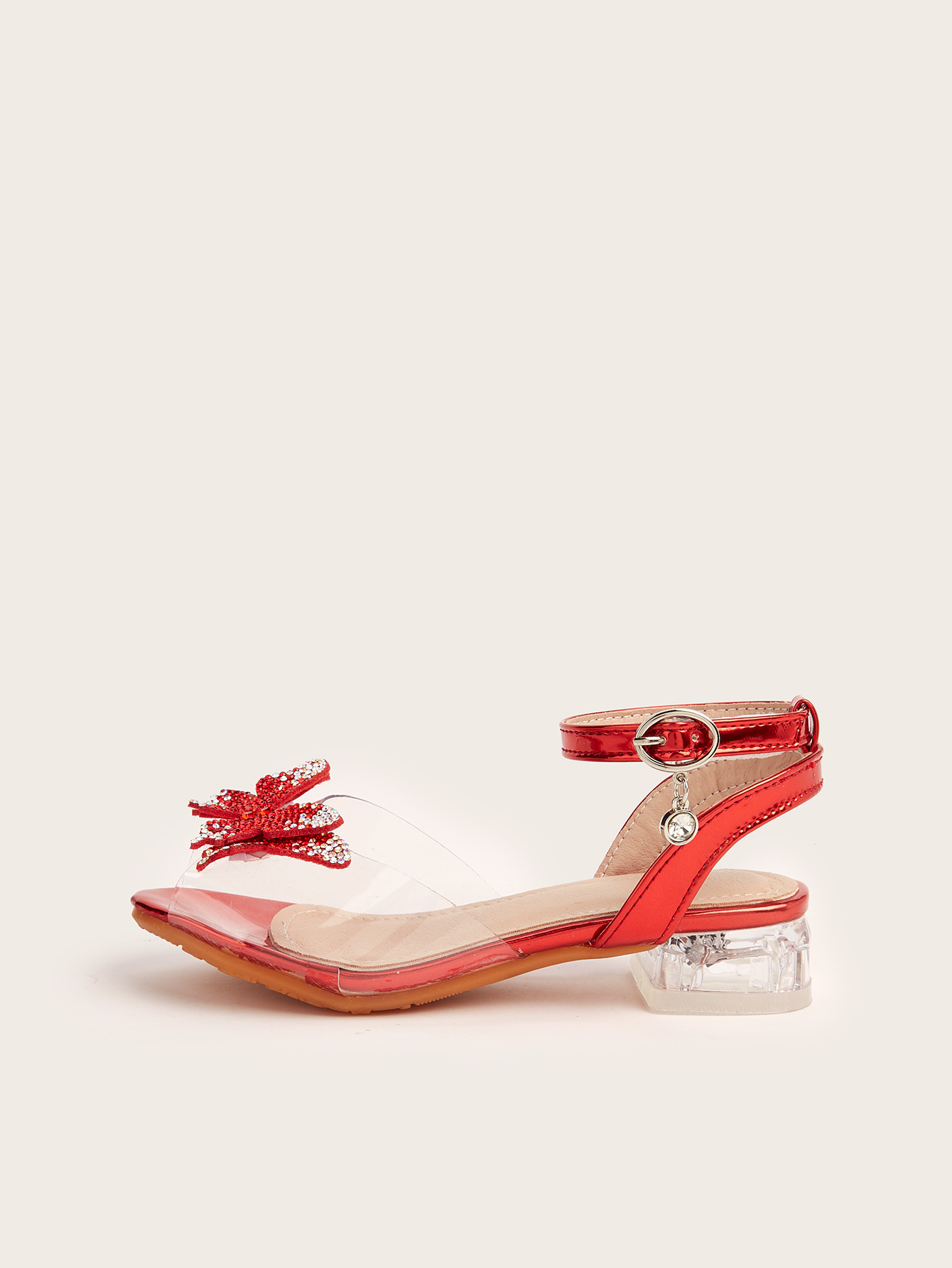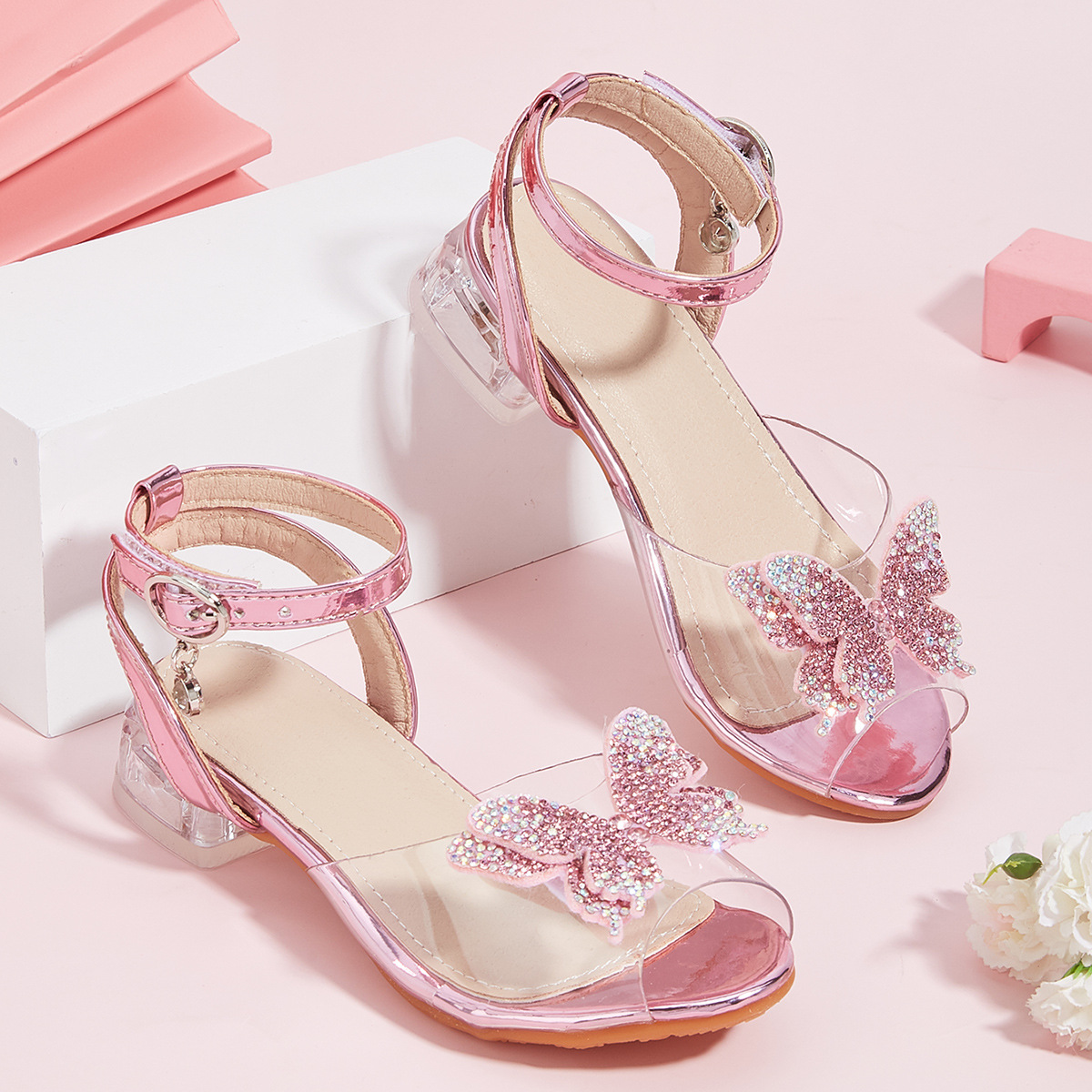 2025 летний новый бант туфли на толстом каблуке женские прозрачные слова с высокими каблуками