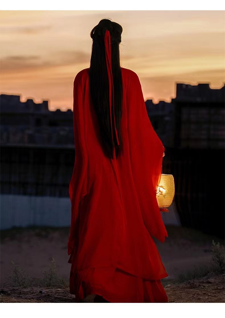 [Fenghua несравненные] Вэй Цзинь Фэн Хань костюм женский элегантный супер сказочный красный костюм с большими рукавами