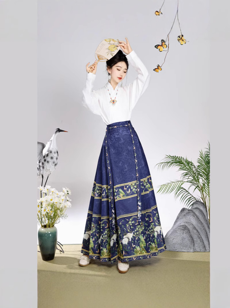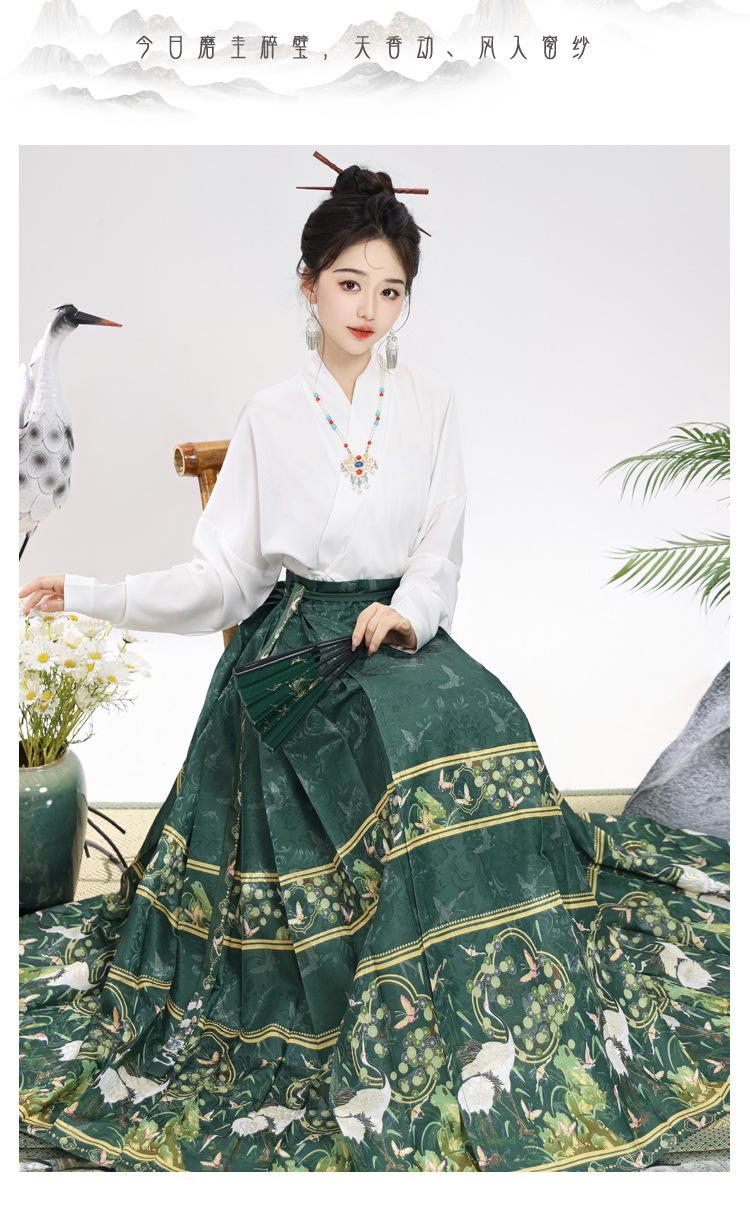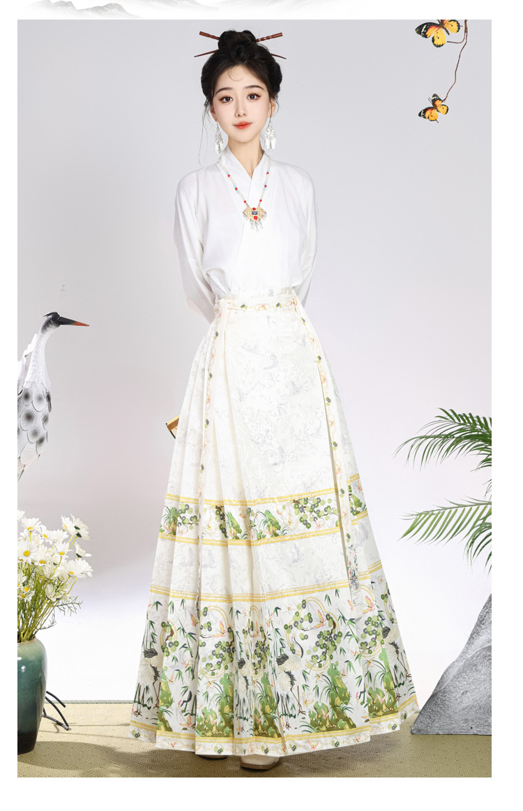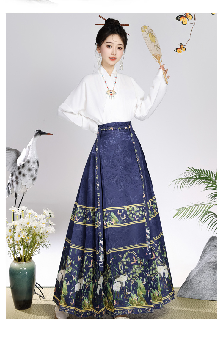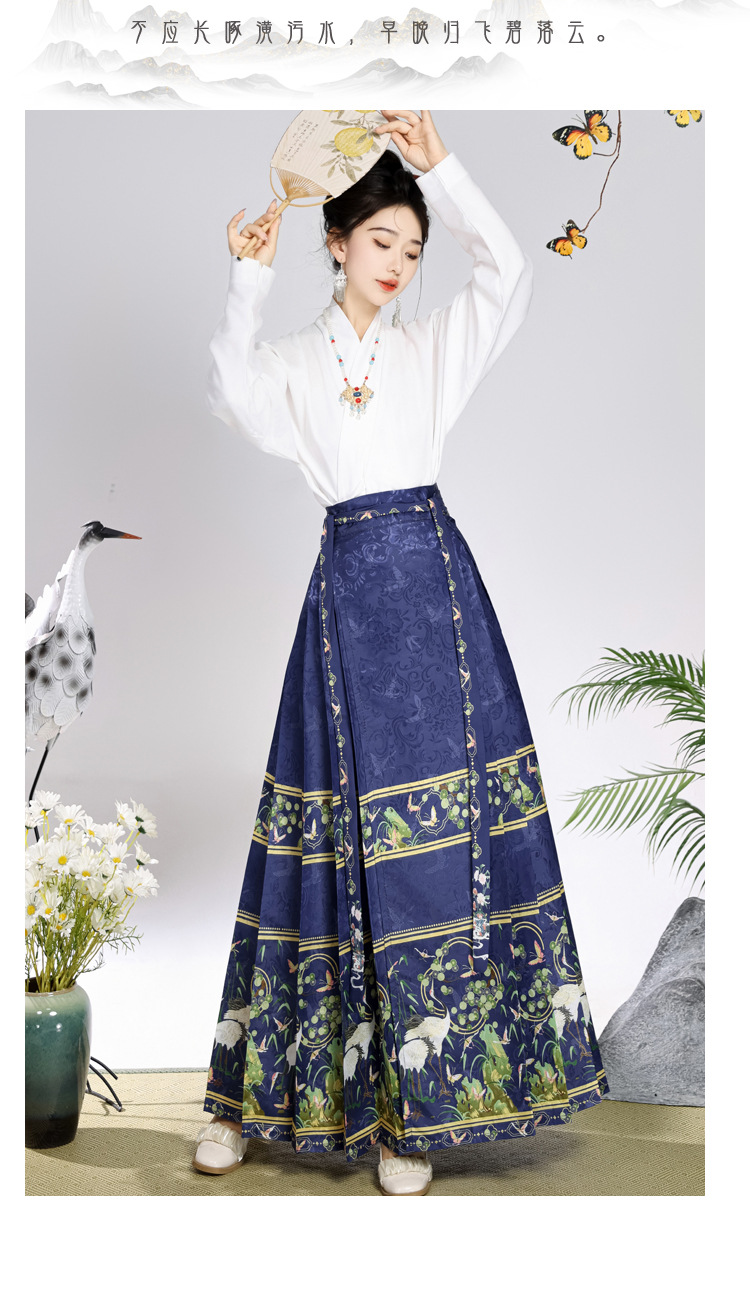 Юбка с черной лошадью Мин + белый топ; Юбка с зеленой лицом лошади Мин + белый топ; Синяя юбка с лицом лошади Мин + белый топ; Юбка He Ming белая лошади + белый топ; Юбка He Ming с одним черным конским лицом; Юбка He Ming с одним зеленым конским лицом; Юбка с одинарным синим конским лицом He Ming; Юбка He Ming с одним белым конским лицом