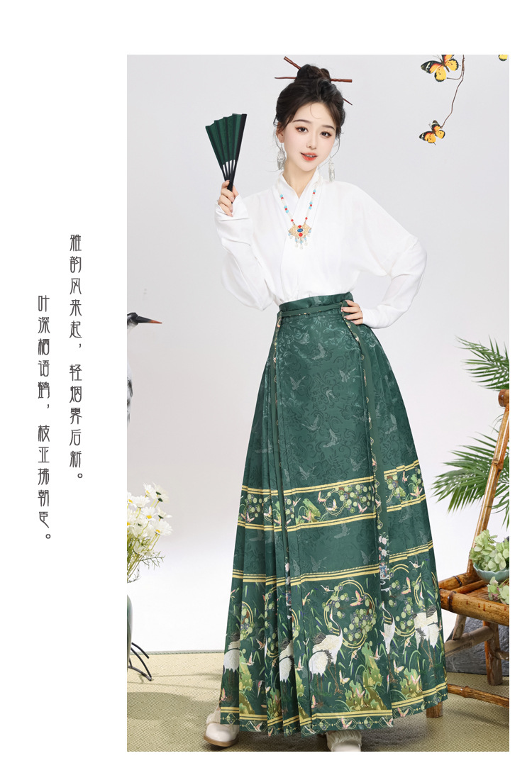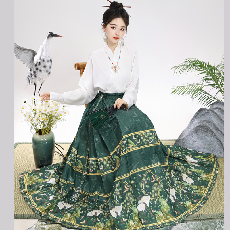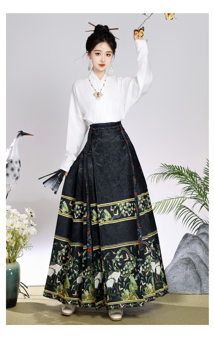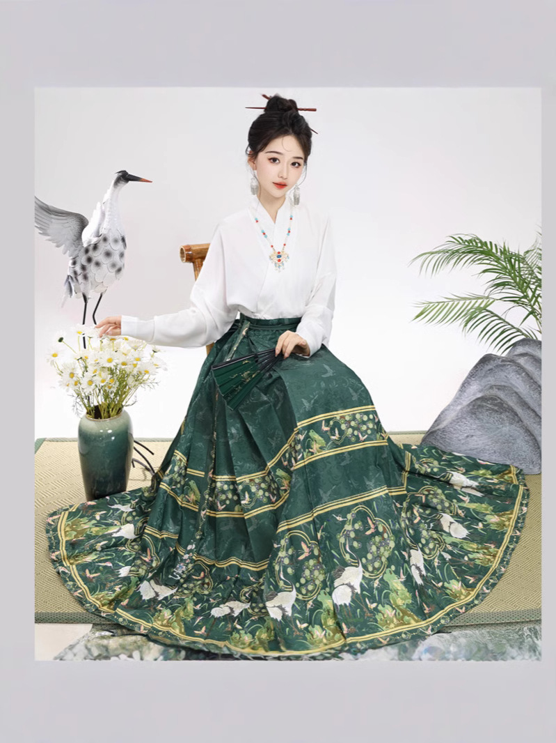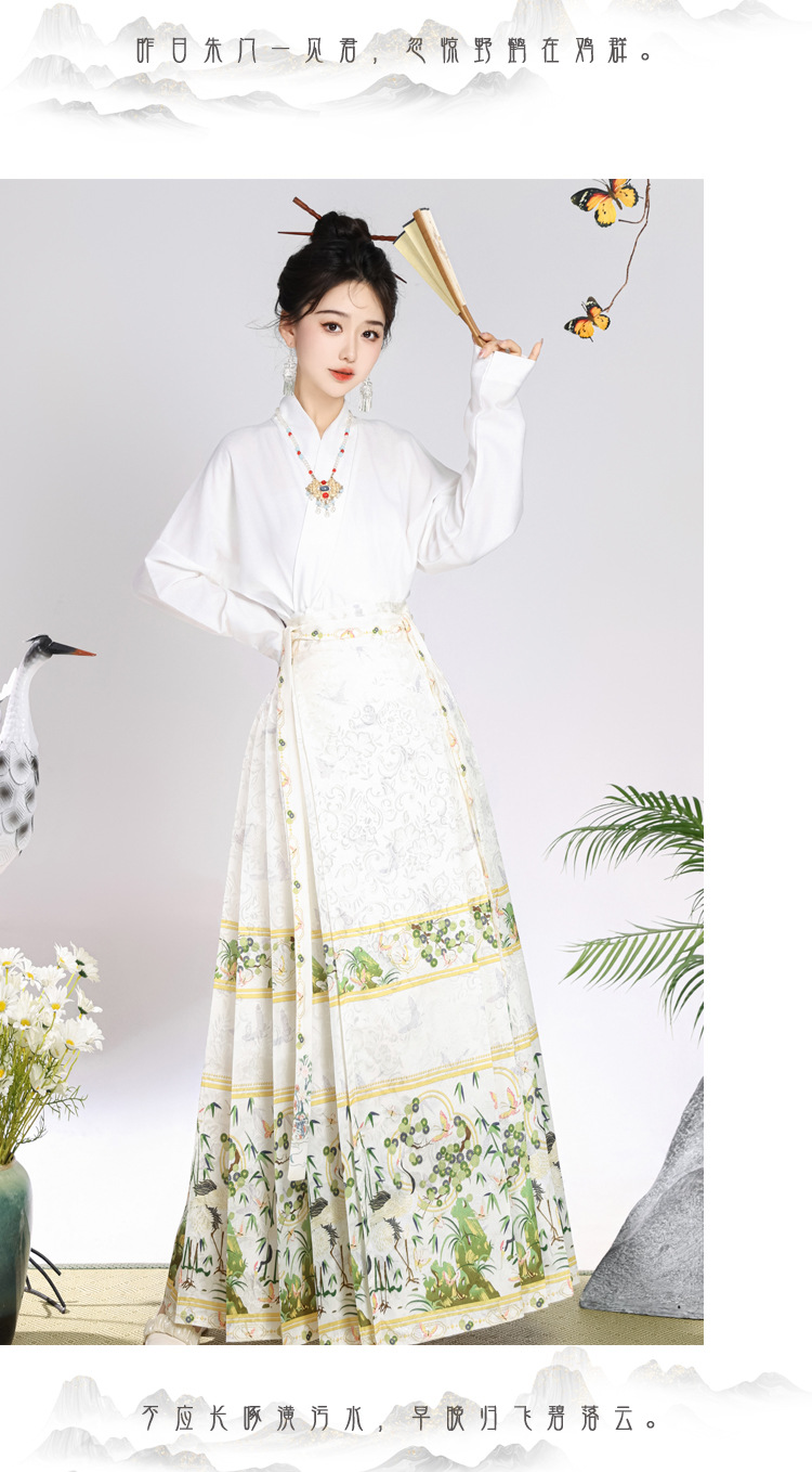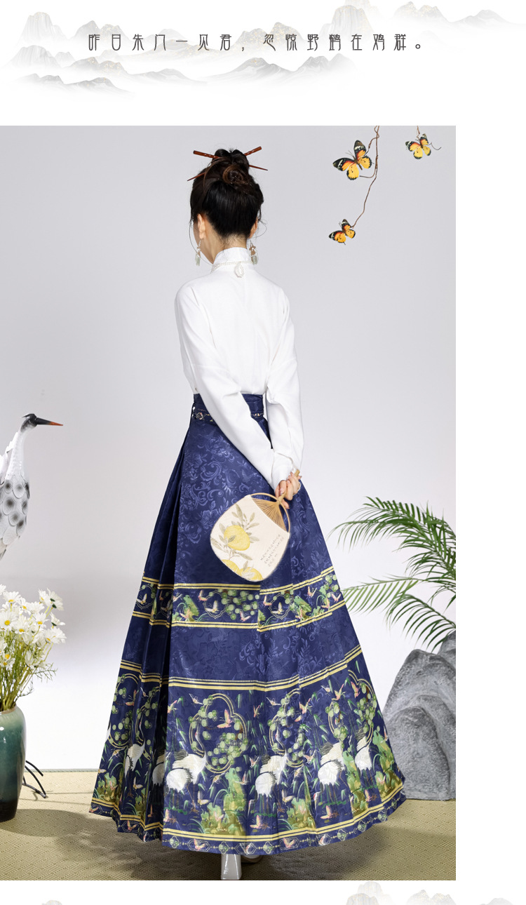 Юбка с черной лошадью Мин + белый топ; Юбка с зеленой лицом лошади Мин + белый топ; Синяя юбка с лицом лошади Мин + белый топ; Юбка He Ming белая лошади + белый топ; Юбка He Ming с одним черным конским лицом; Юбка He Ming с одним зеленым конским лицом; Юбка с одинарным синим конским лицом He Ming; Юбка He Ming с одним белым конским лицом