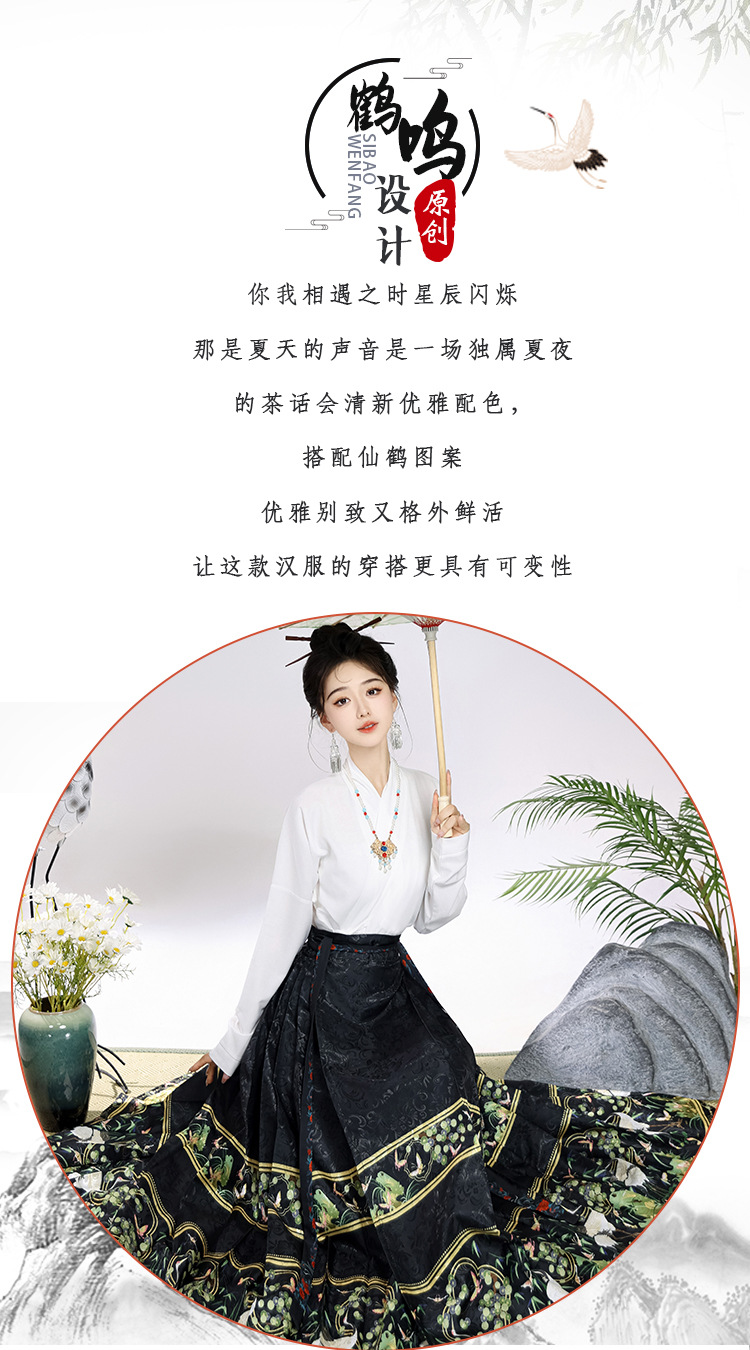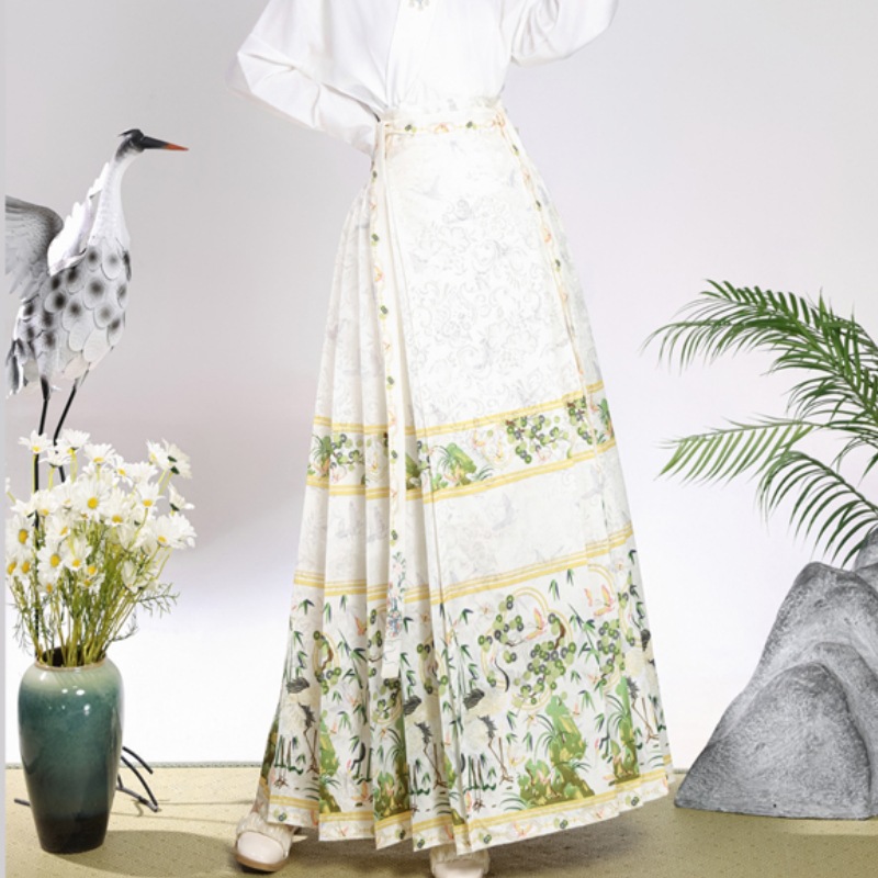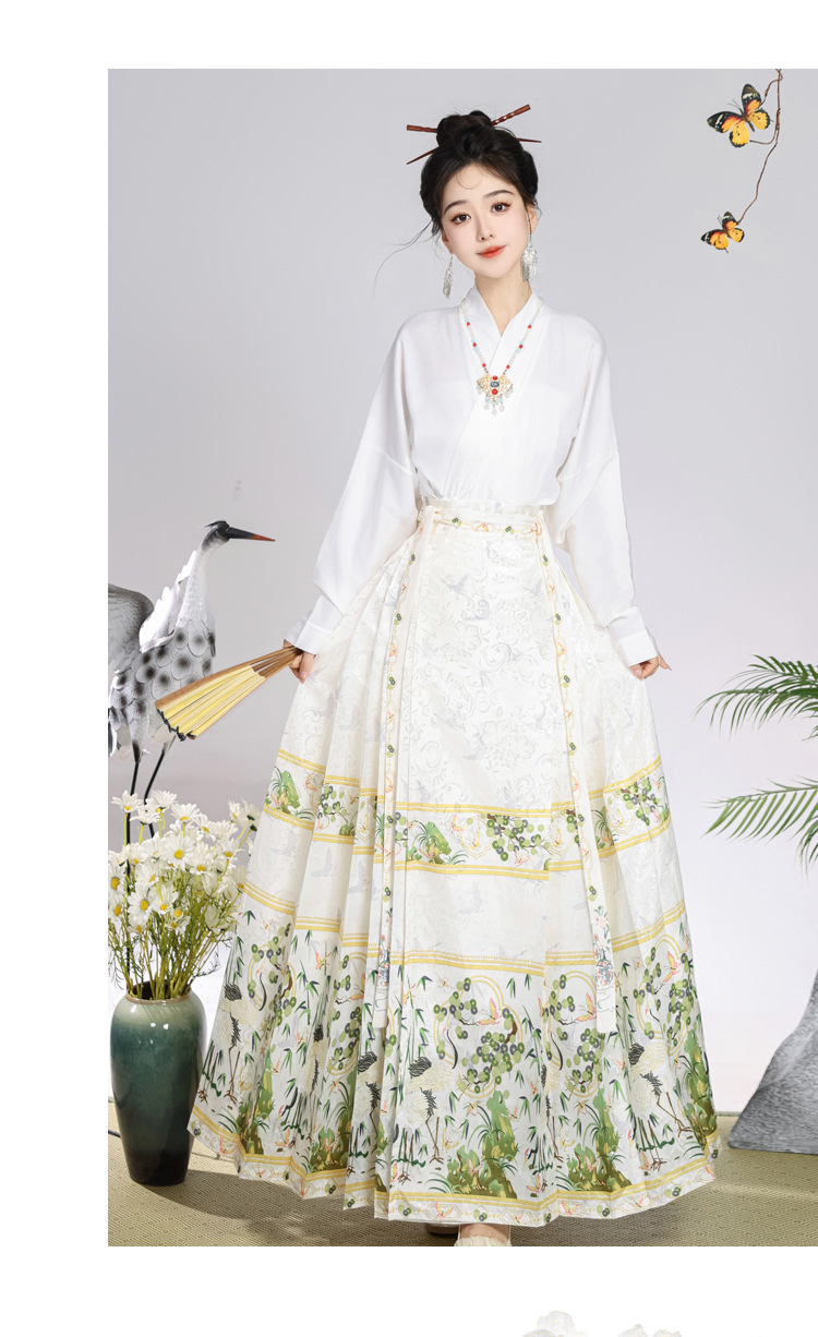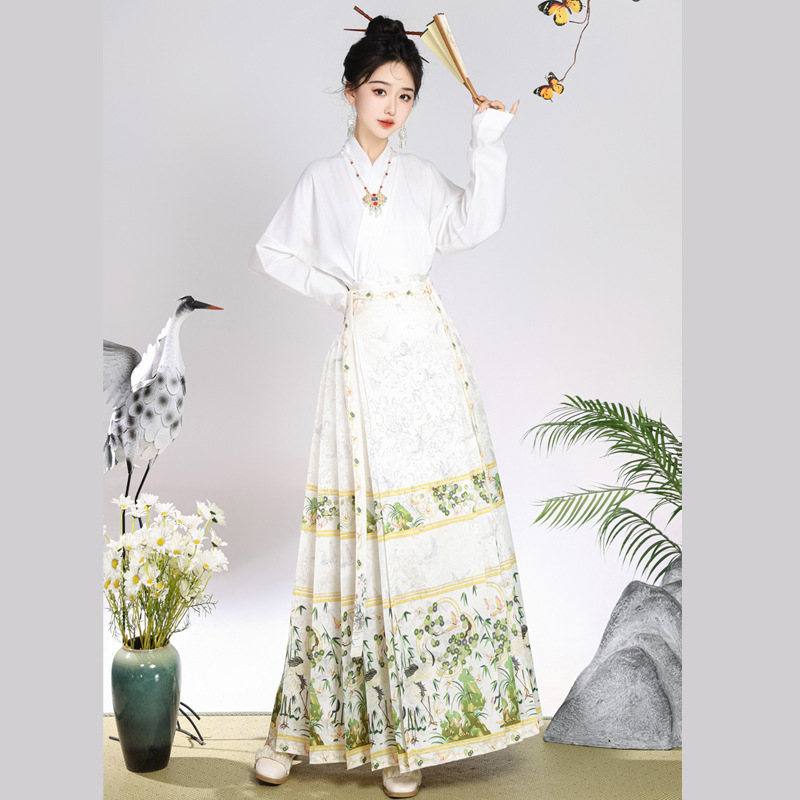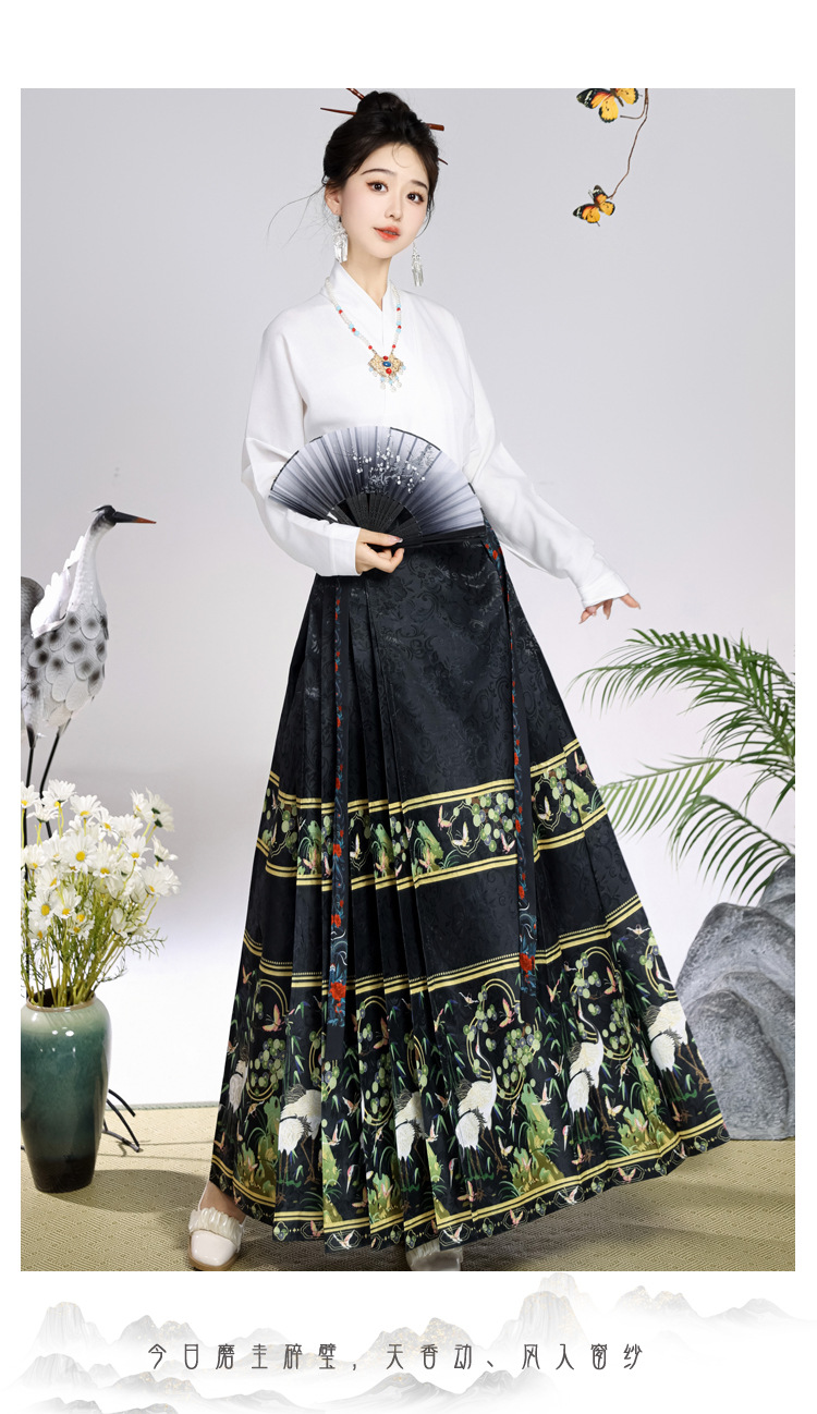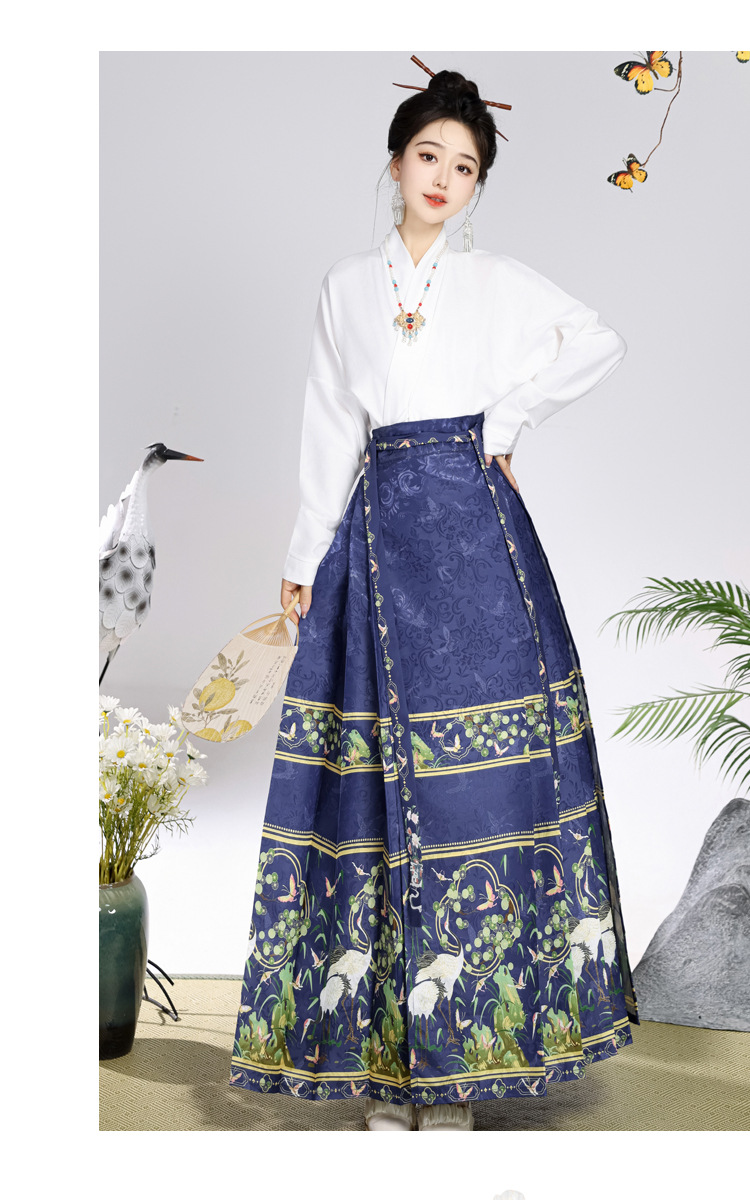 Юбка с черной лошадью Мин + белый топ; Юбка с зеленой лицом лошади Мин + белый топ; Синяя юбка с лицом лошади Мин + белый топ; Юбка He Ming белая лошади + белый топ; Юбка He Ming с одним черным конским лицом; Юбка He Ming с одним зеленым конским лицом; Юбка с одинарным синим конским лицом He Ming; Юбка He Ming с одним белым конским лицом