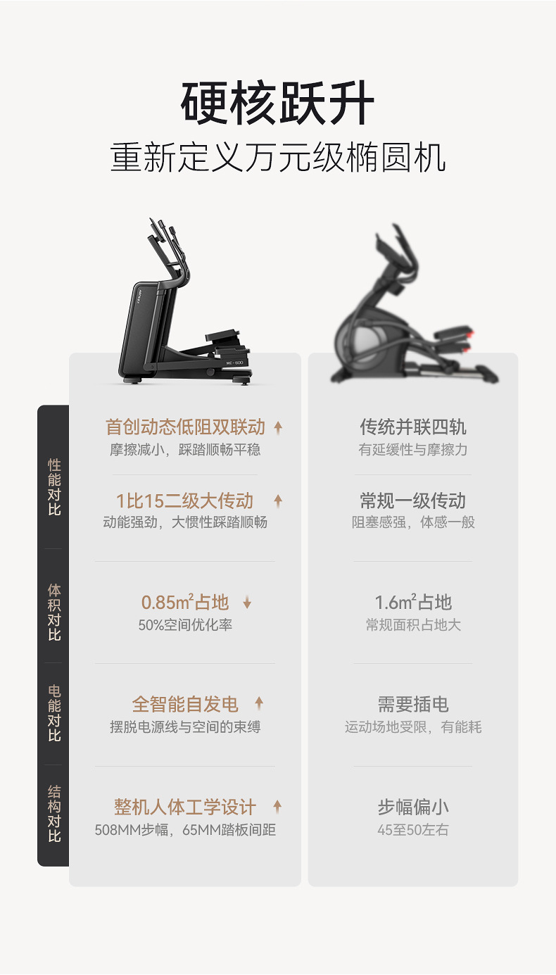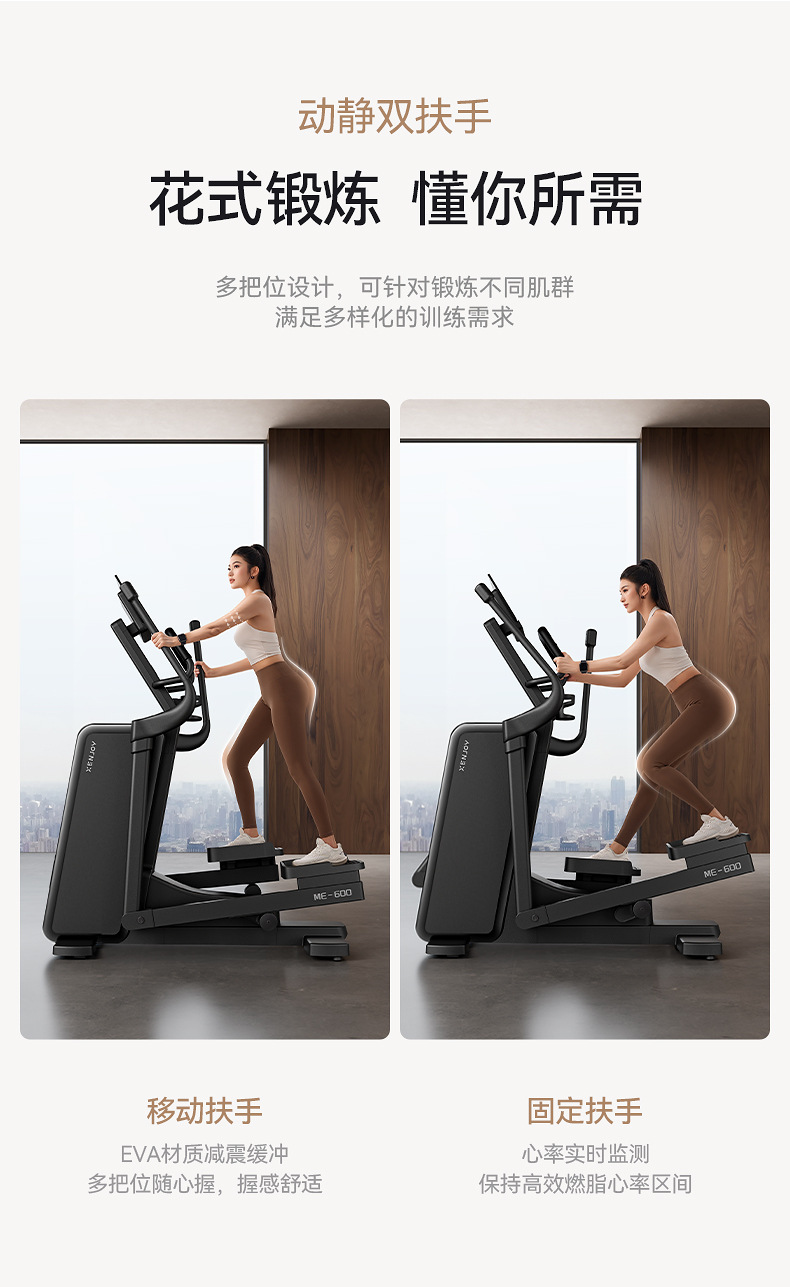 Эллиптический тренажер XENJOY ME600: высококлассный коммерческий, умный, самогенерирующий, минималистичный, L-образный, с низким сопротивлением, двойным сопротивлением.