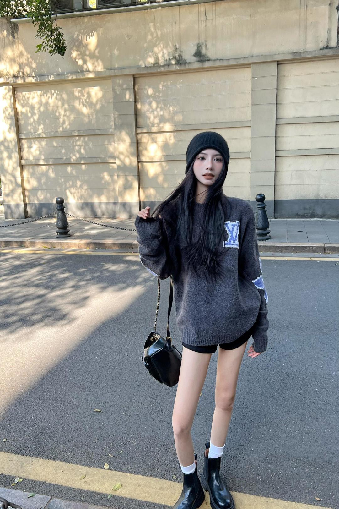 Свитер с логотипом четырехлистного клевера Nanyou, смесь шерсти, унисекс, стиль для пар, свободный крой, универсальный, повседневный, новая весенняя модель.