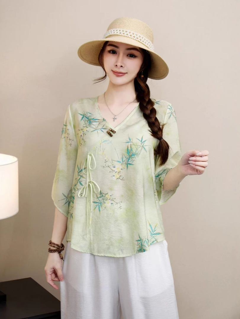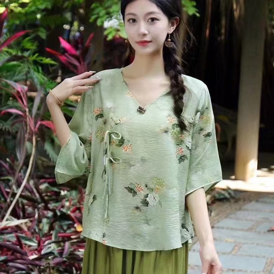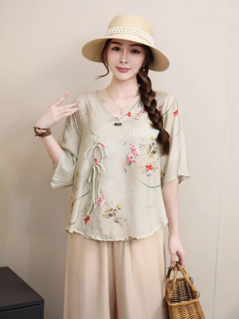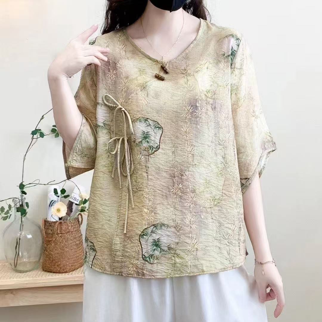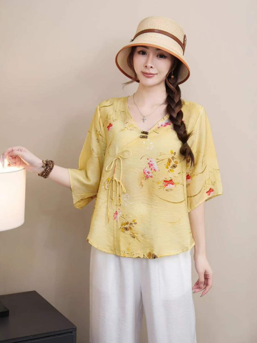 2025 новый китайский стиль женская рубашка с короткими рукавами улучшенная китайская одежда